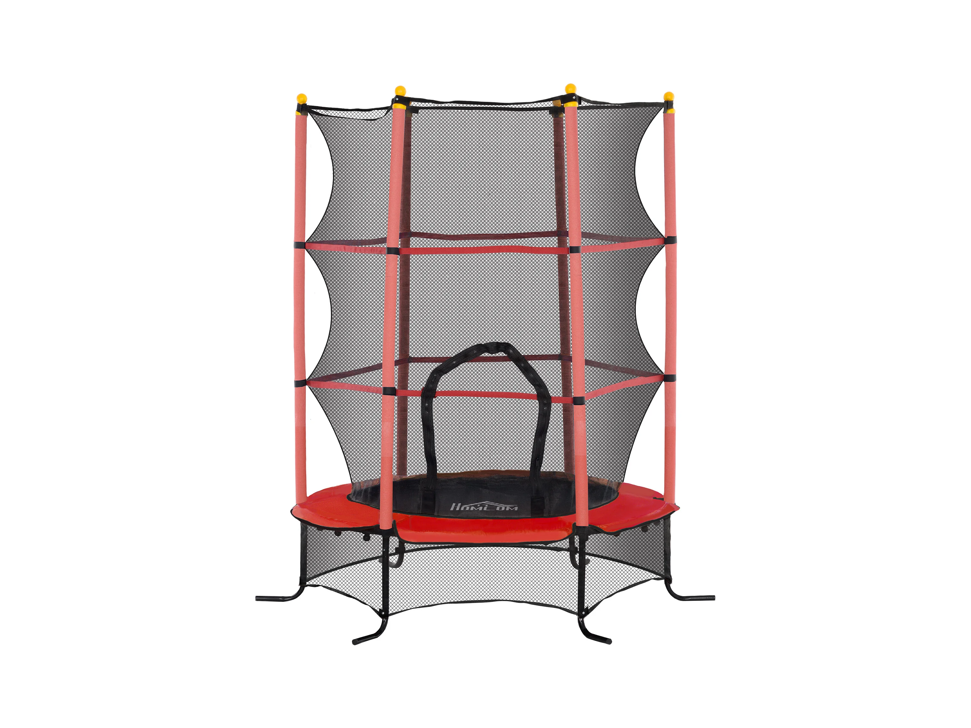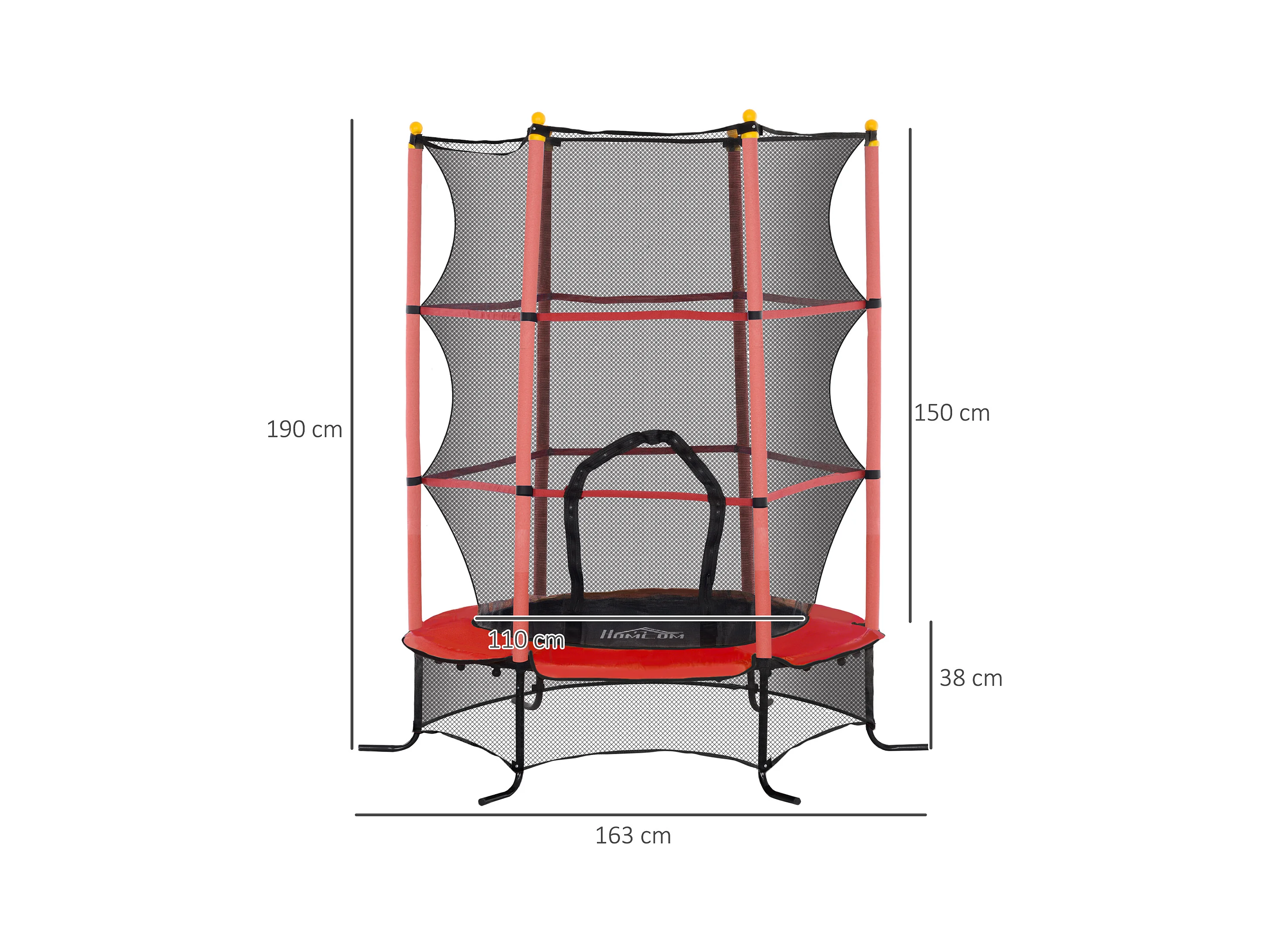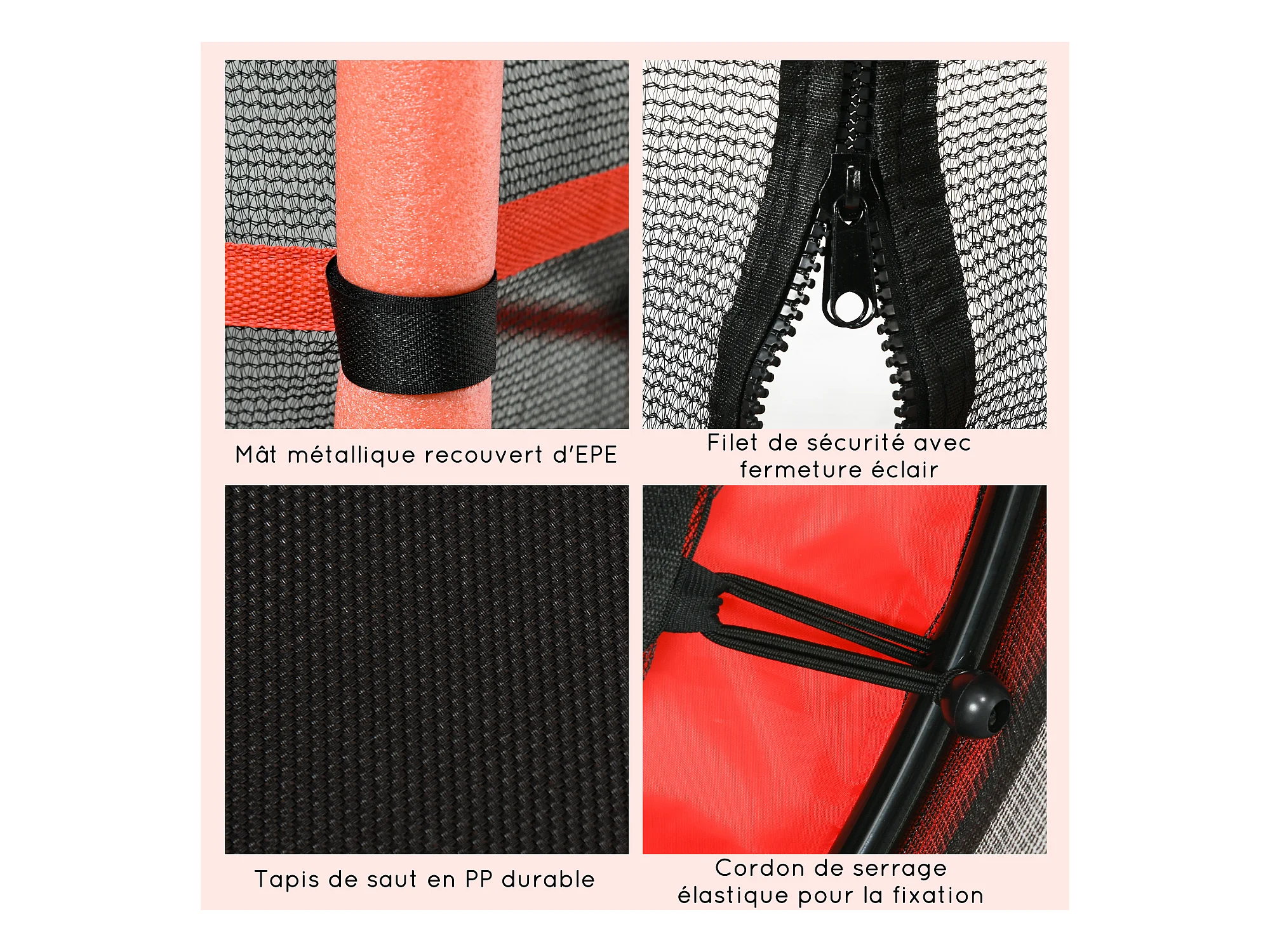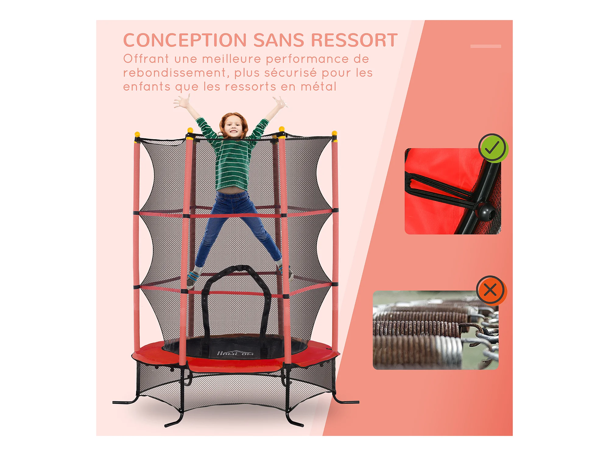 Trampoline de jardin enfants Ø 1,63 x 1,90H m filet de sécurité porte zipée couvre-ressorts + 6 poteaux rembourrés inclus rouge