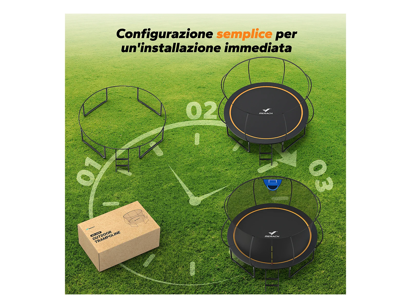 Trampoline de jardin MERACH, Ø 427cm, Filet de sécurité inclus, idéal pour jeu extérieur, rebond puissant et stable, Jusqu'à 150kg