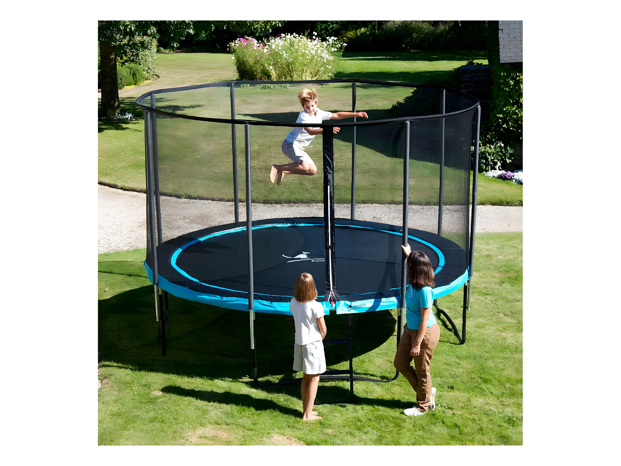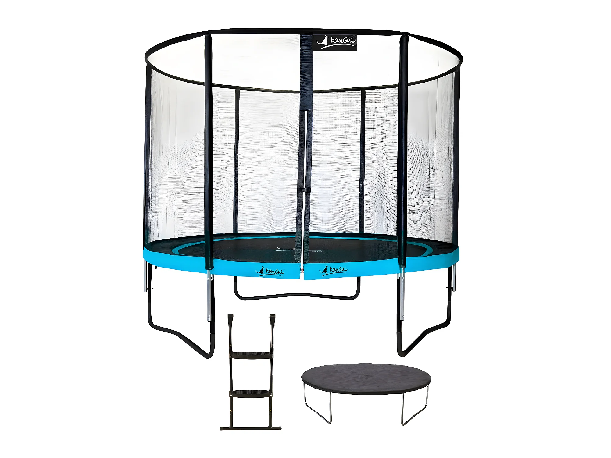 Kangui - Trampoline de jardin rond 305 cm + filet de sécurité + échelle + bâche de protection | PUNCHI Bleu 300