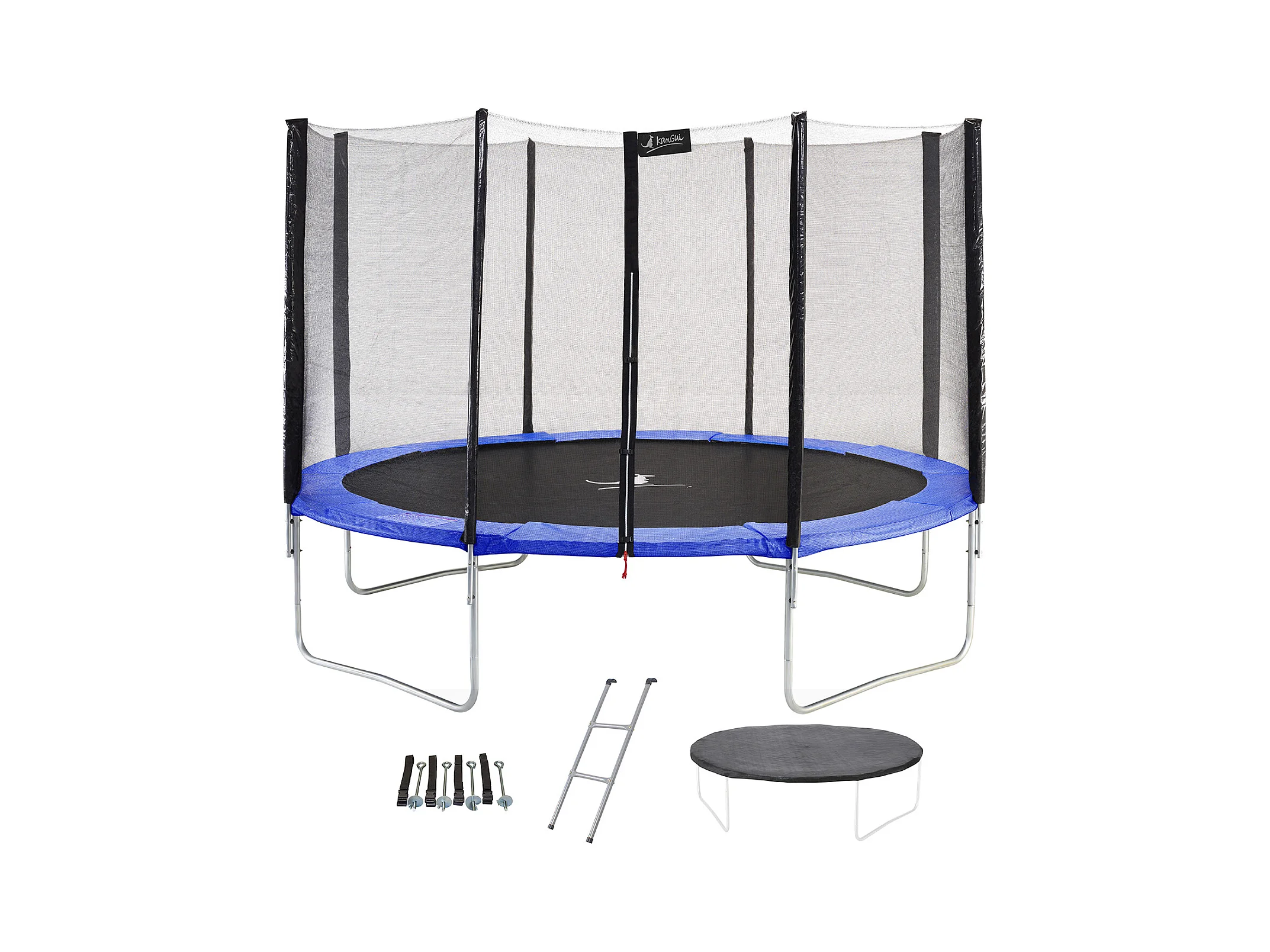 Trampoline rond Bleu Ø360cm avec filet, échelle, bâche et kit ancrage