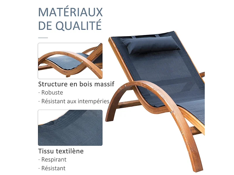 Transat bois massif MELANIE brun et noir