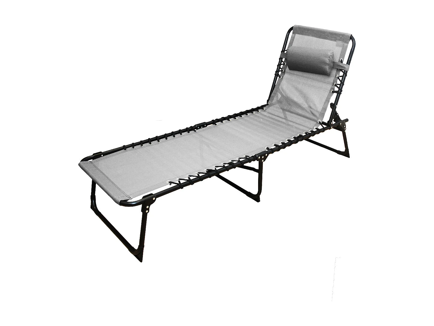 Transat Chaise longue pliante Bain de soleil coloris Gris clair avec coussin - Longueur 188 x Profondeur 55 x Hauteur 30 cm