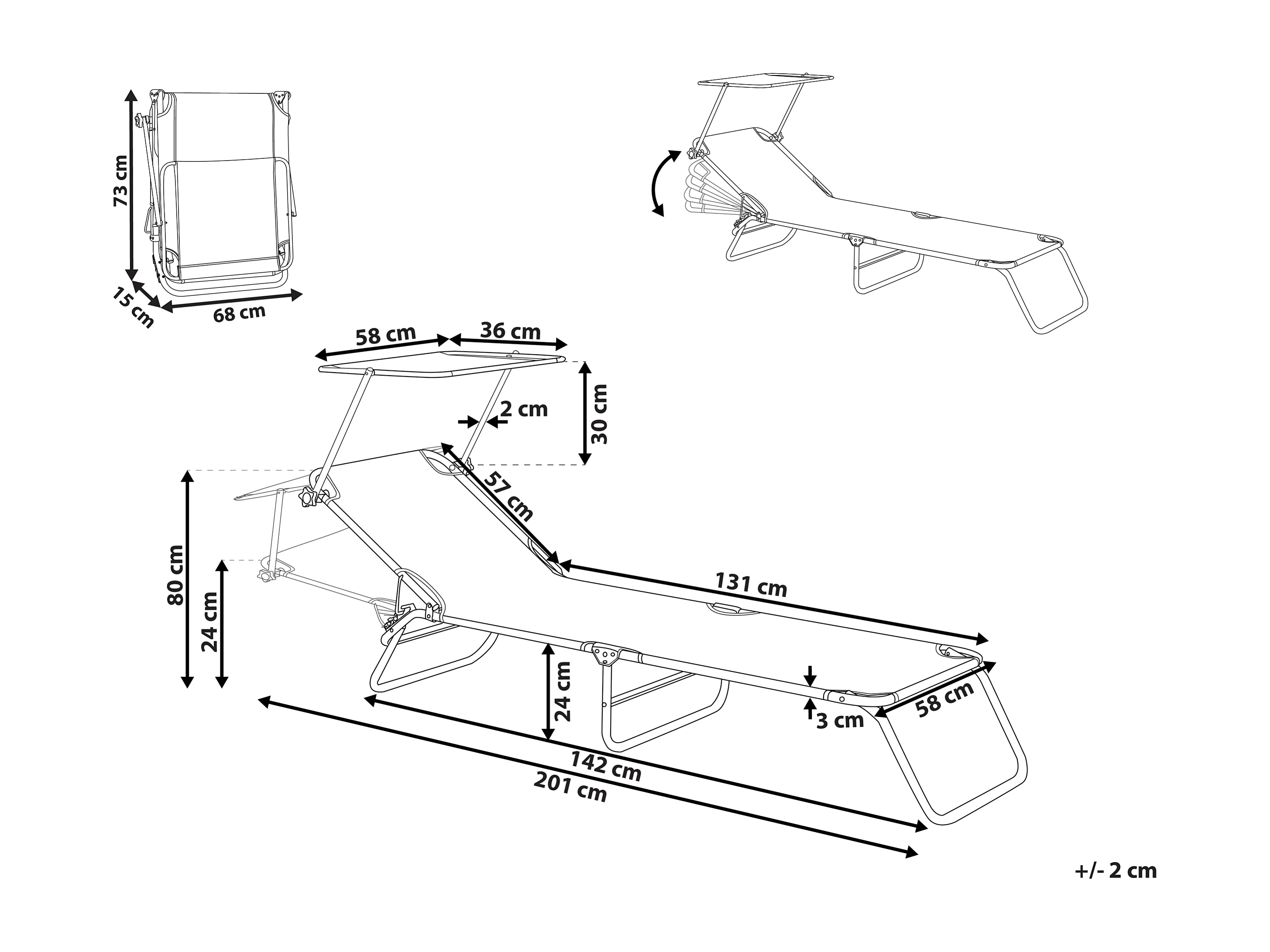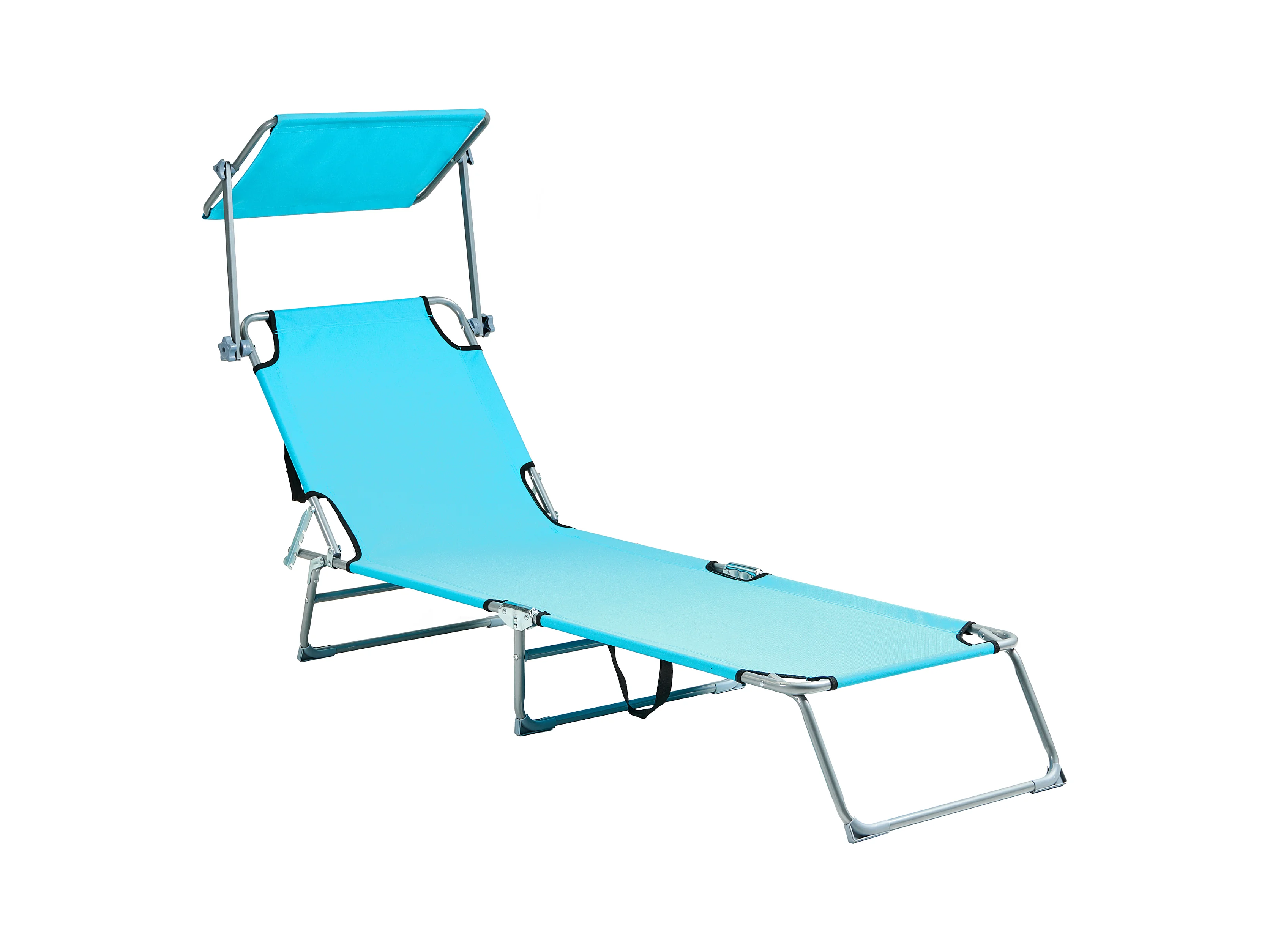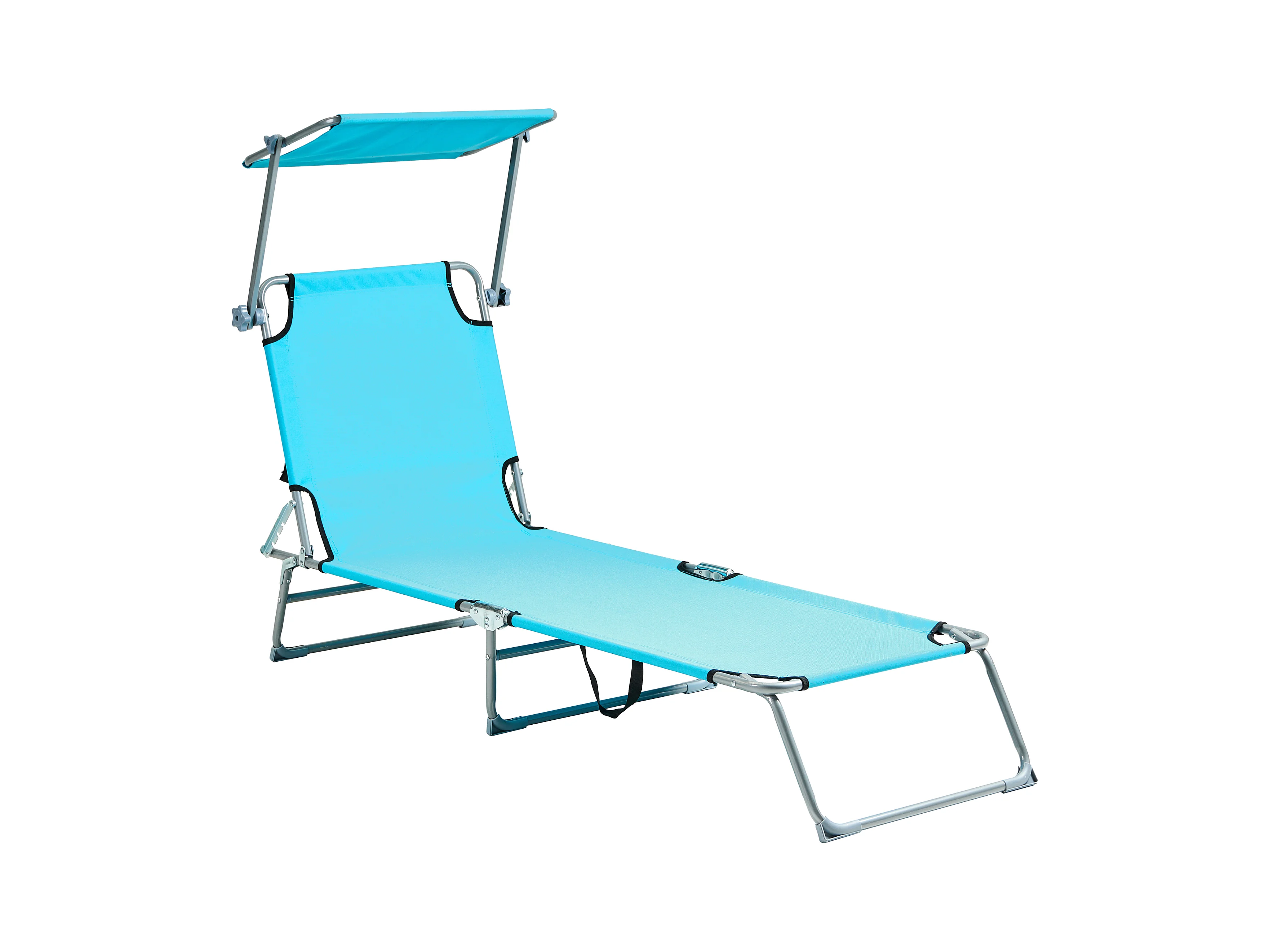 Chaise longue pliable avec auvent et roues Acier Bleu