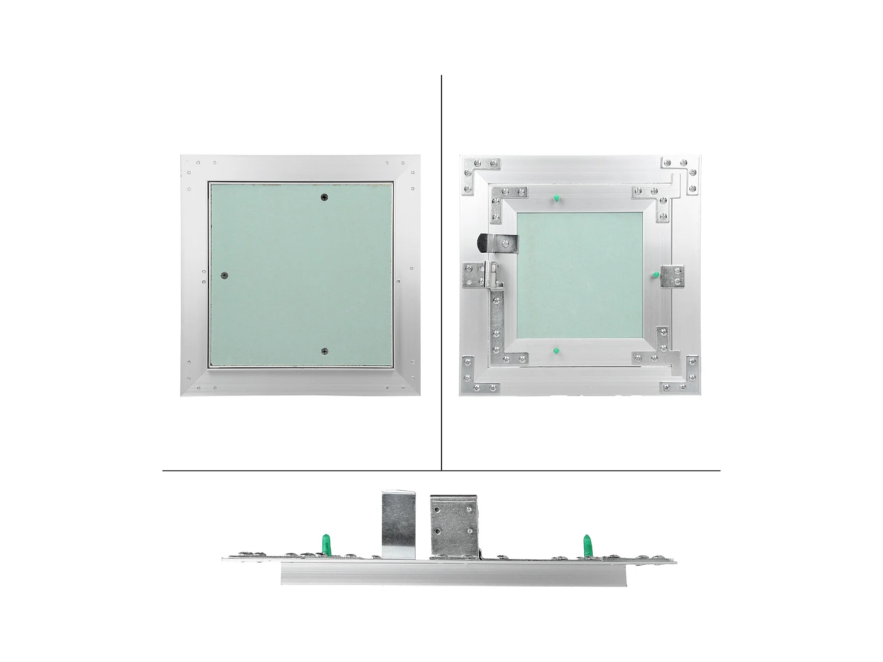 Trappe de visite 500x500 mm aluminium/vert plaque de plâtre imprégnée charnière de porte à droite/à gauche ouverture et fermeture par bouton-poussoir