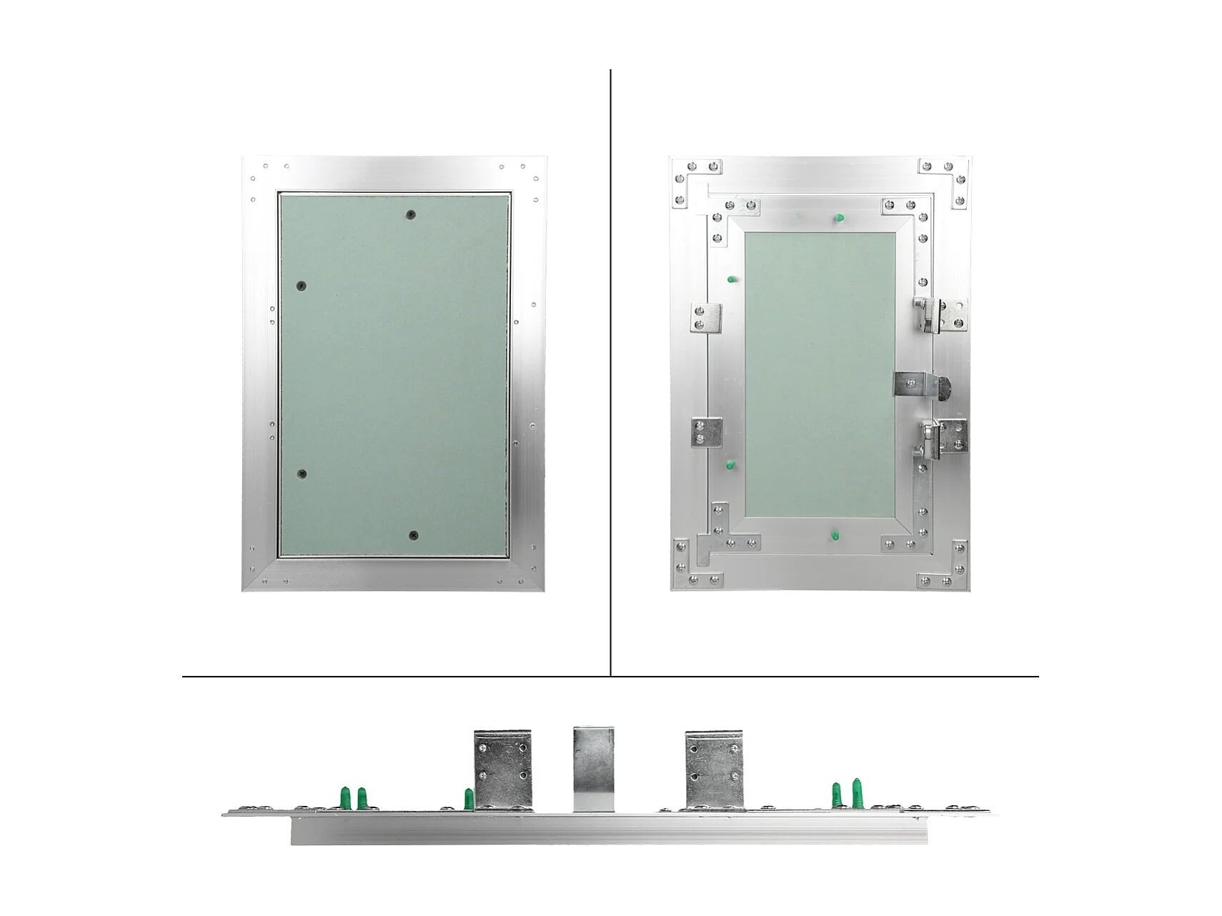 Trappe de visite 500x500 mm aluminium/vert plaque de plâtre imprégnée charnière de porte à droite/à gauche ouverture et fermeture par bouton-poussoir