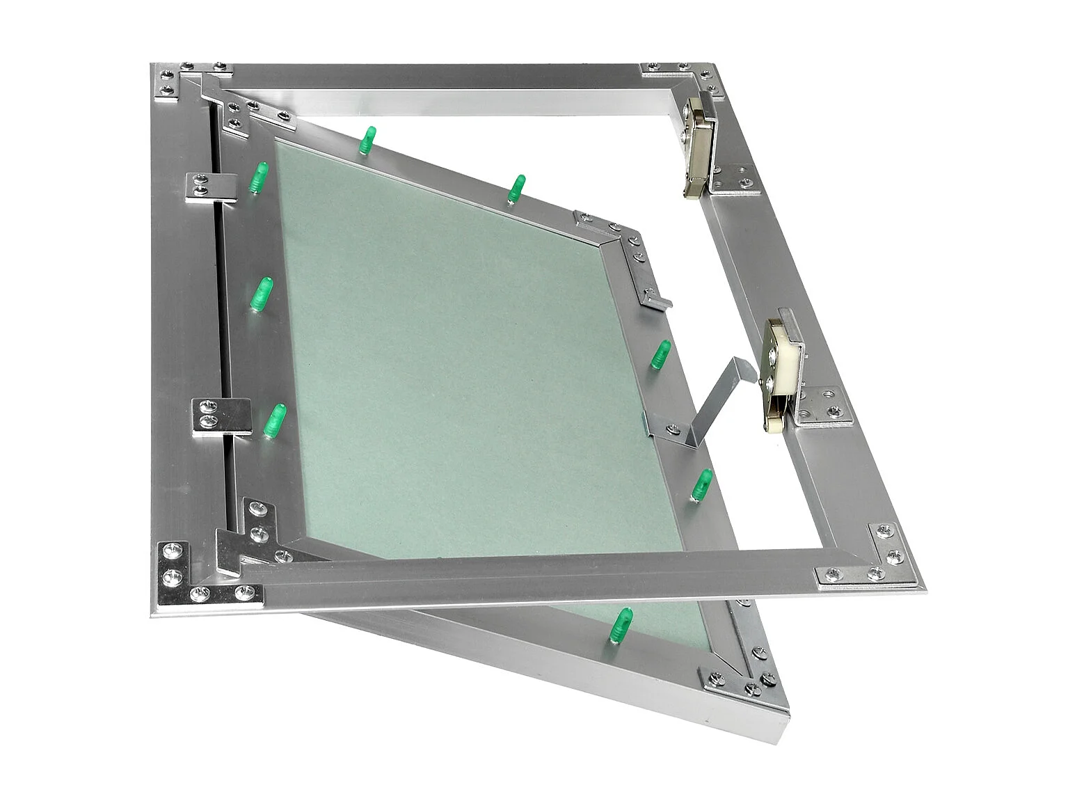 Trappe de visite 600x600 mm aluminium/vert plaque de plâtre imprégnée charnière de porte à droite/à gauche ouverture et fermeture par bouton-poussoir