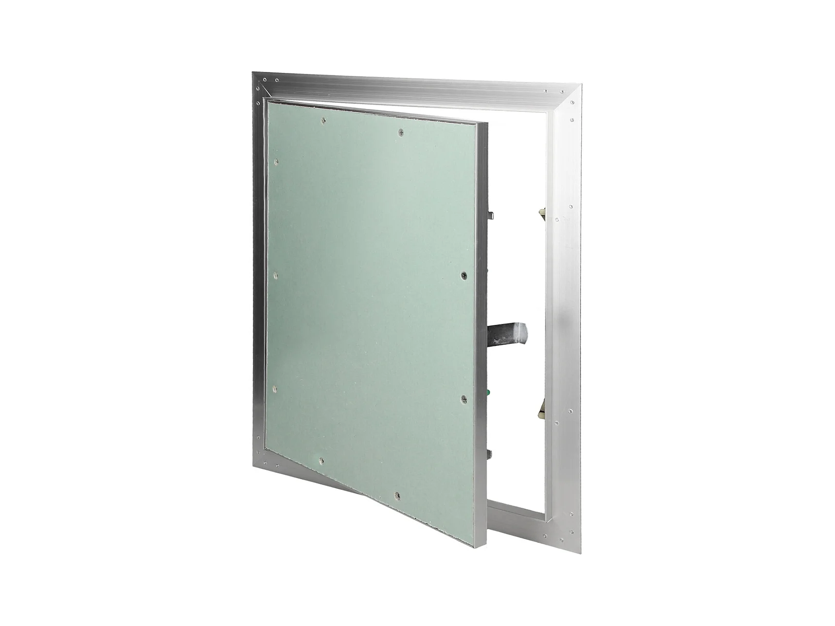 Trappe de visite 500x500 mm aluminium/vert plaque de plâtre imprégnée charnière de porte à droite/à gauche ouverture et fermeture par bouton-poussoir