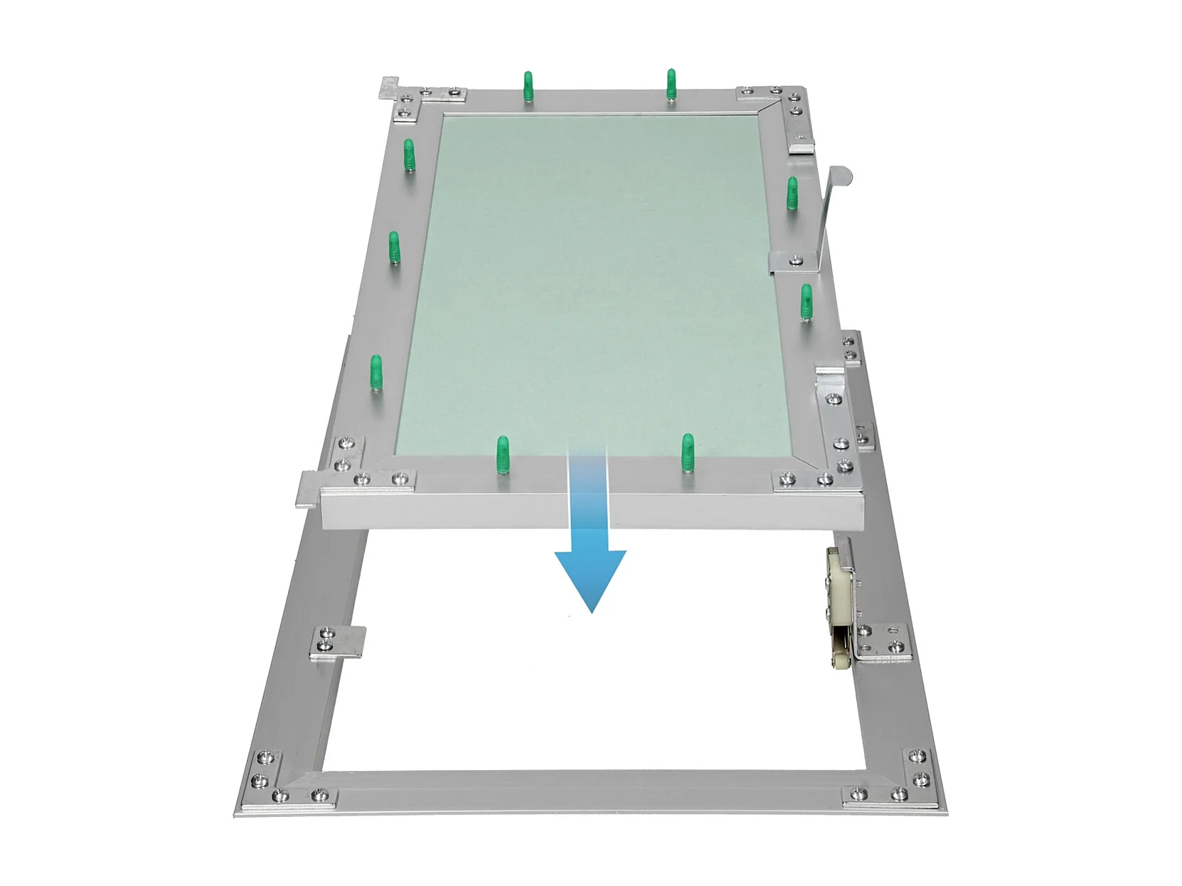 Trappe de visite 600x600 mm aluminium/vert plaque de plâtre imprégnée charnière de porte à droite/à gauche ouverture et fermeture par bouton-poussoir
