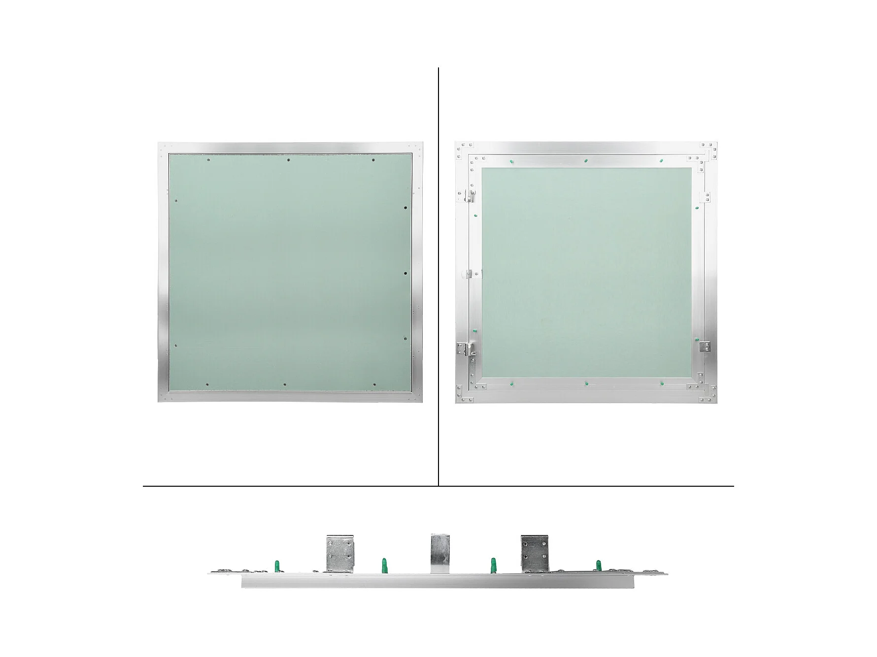 Trappe de visite 600x600 mm aluminium/vert plaque de plâtre imprégnée charnière de porte à droite/à gauche ouverture et fermeture par bouton-poussoir