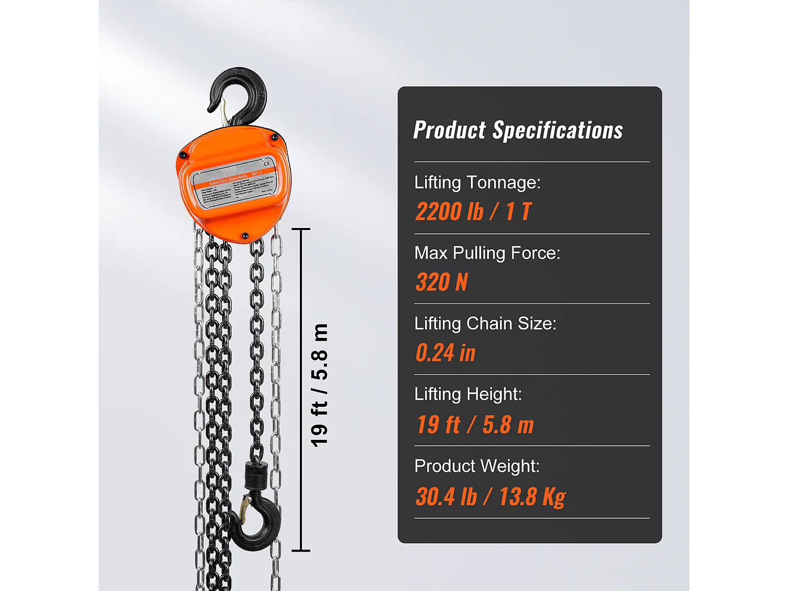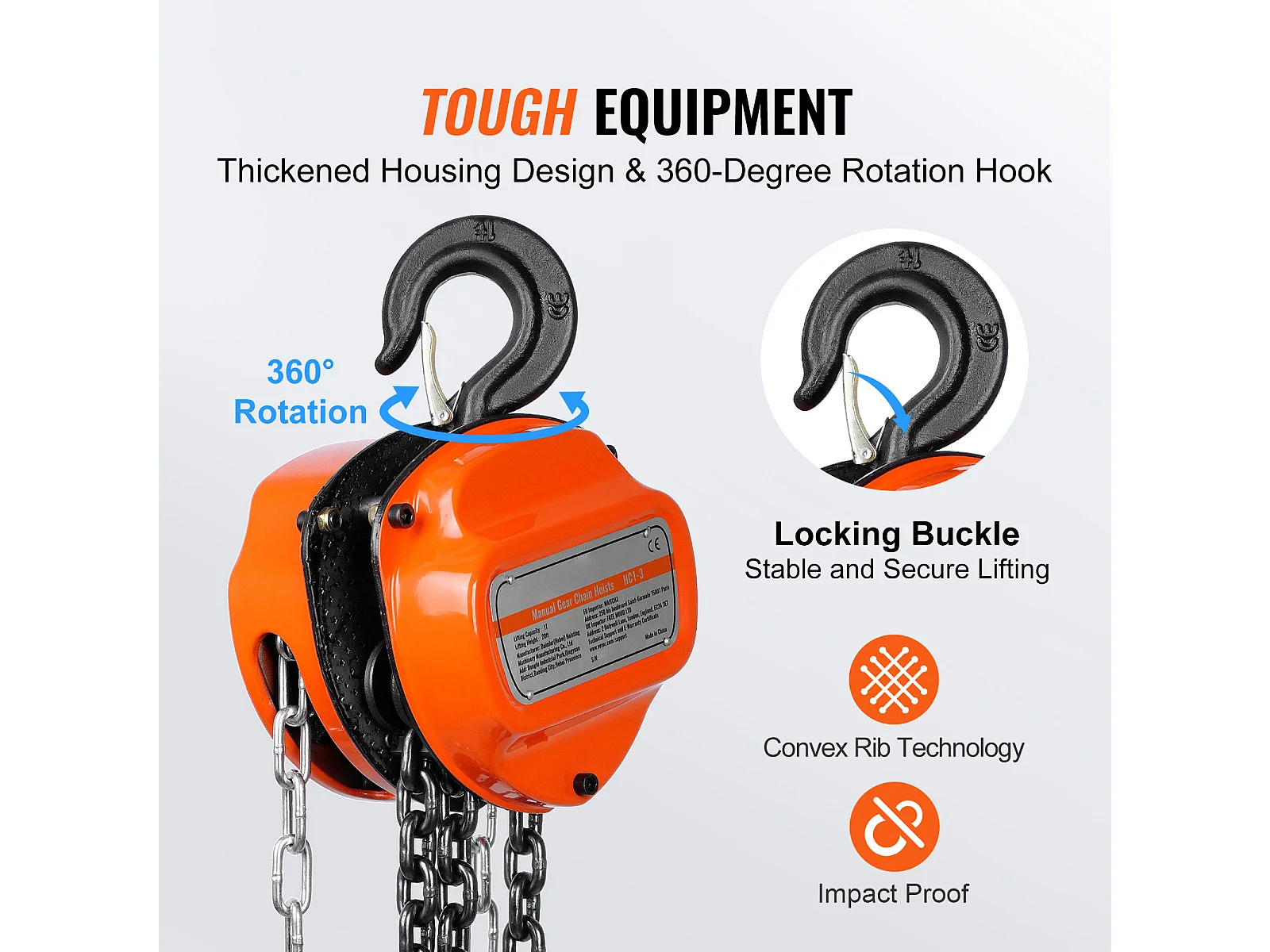 Treuil, SucceBuy Palan à Chaîne, G80, Capacité de 2 200 lb, 609.6 CM, Élévateur à Cliquet
