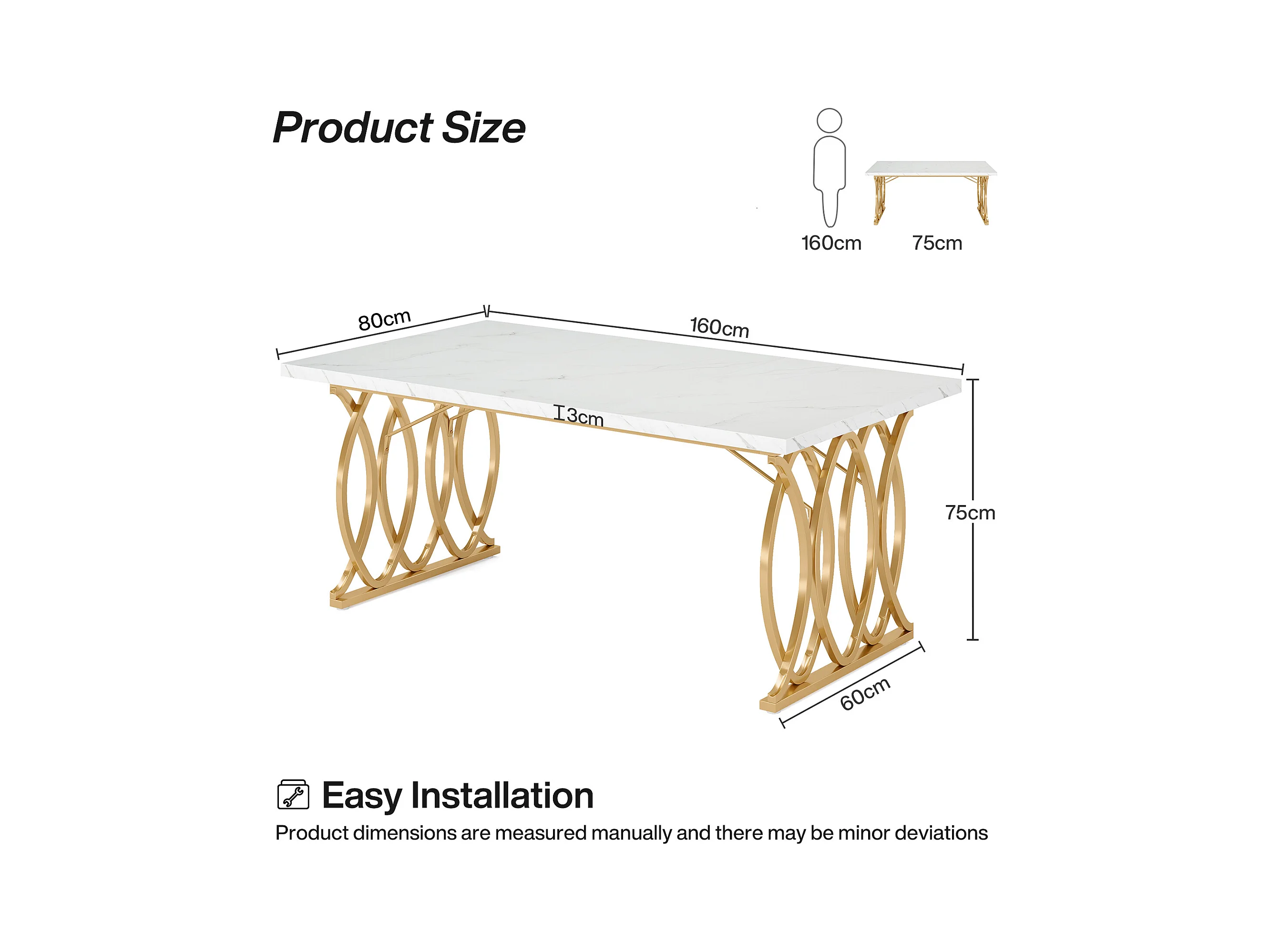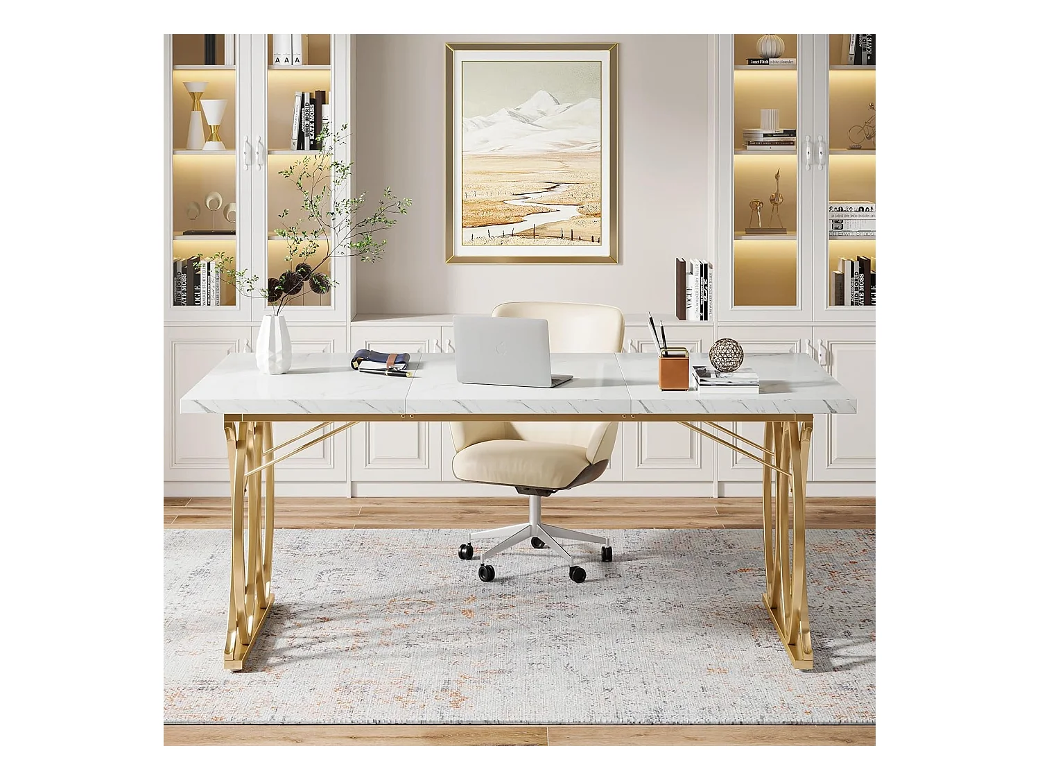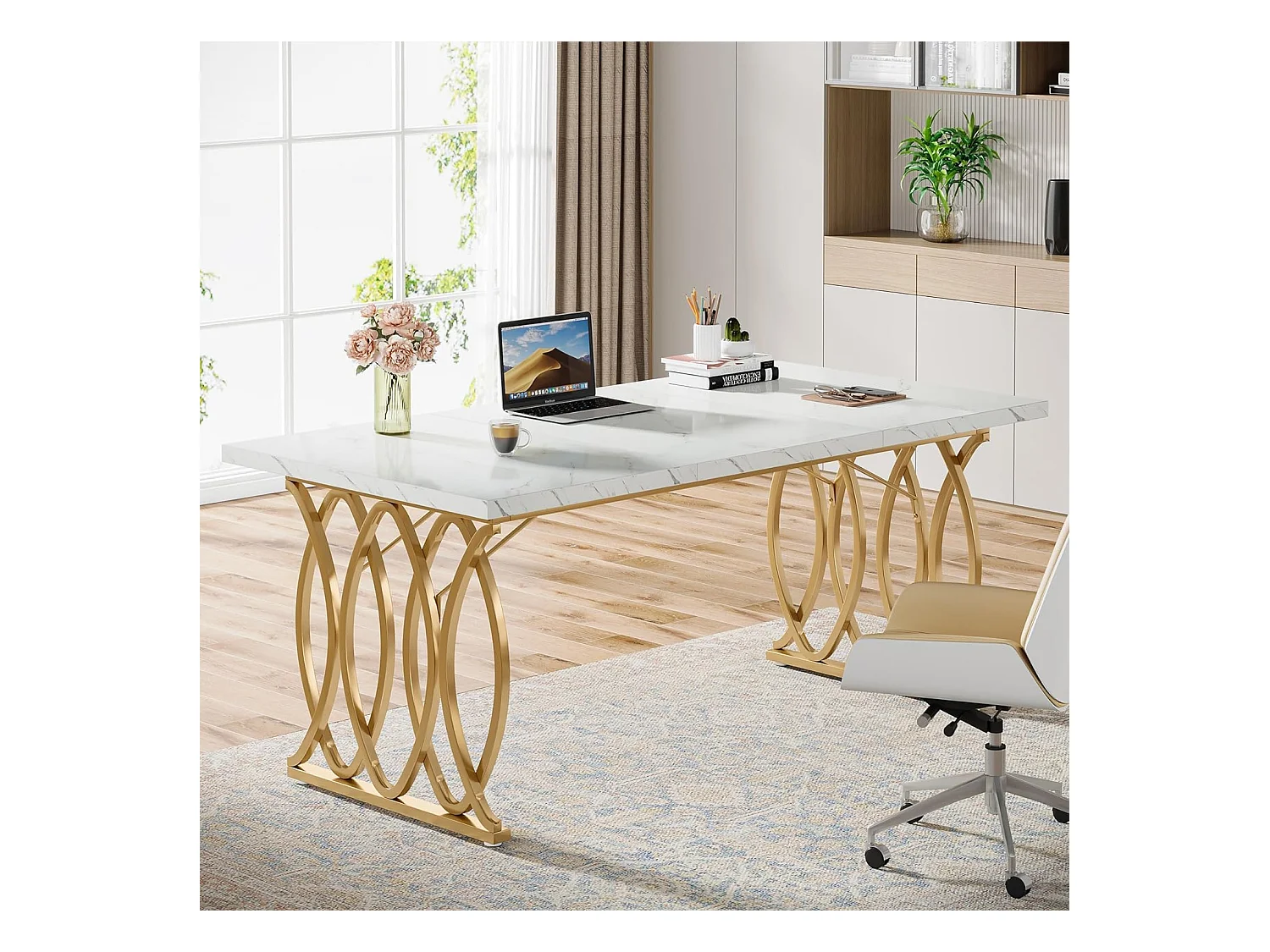 Bureau d'ordinateur, 160 cm Table de Bureau Informatique Table d'Étude Moderne PC Table de Travail Table de Salle à Manger avec Jambes d'or