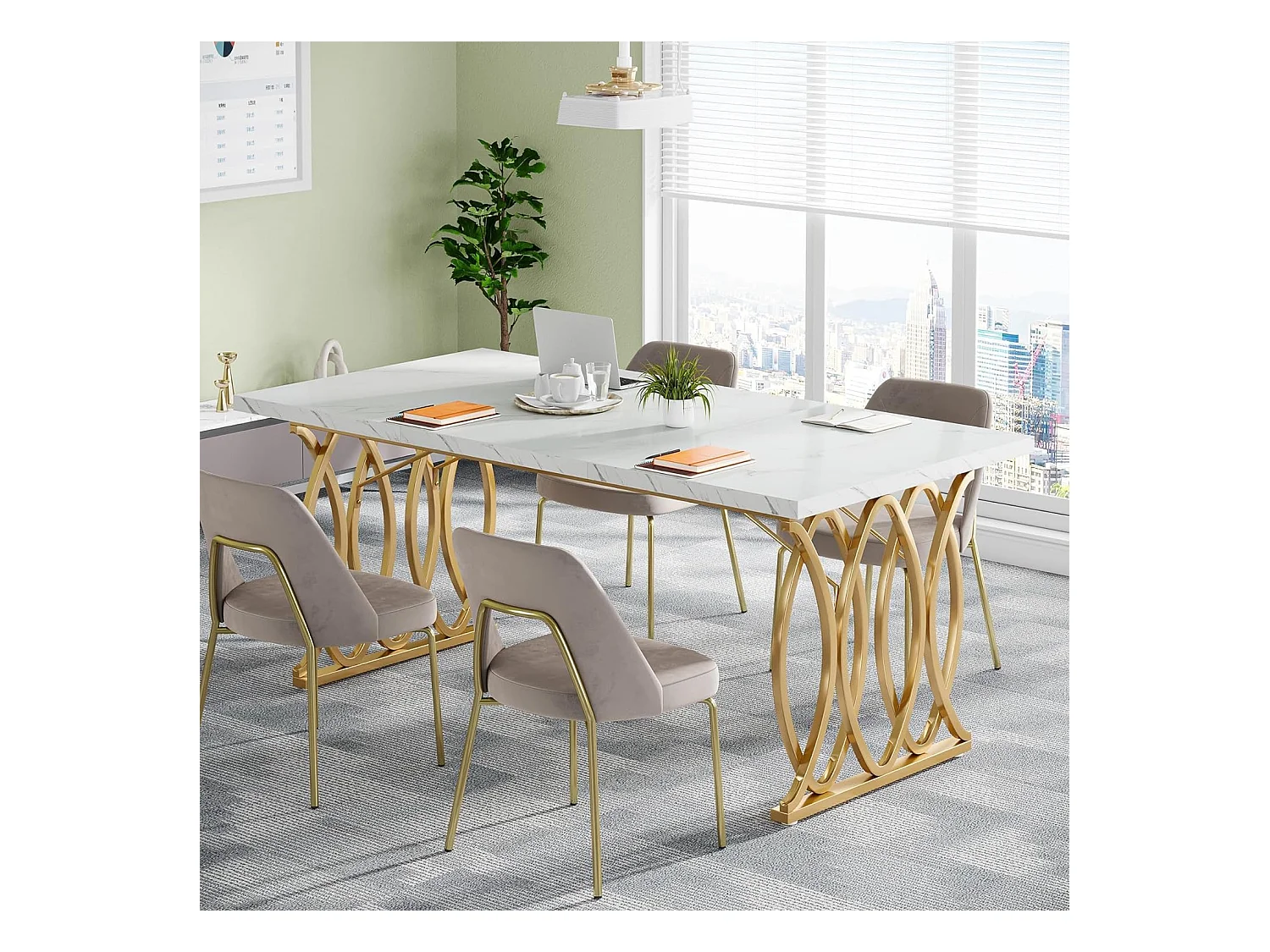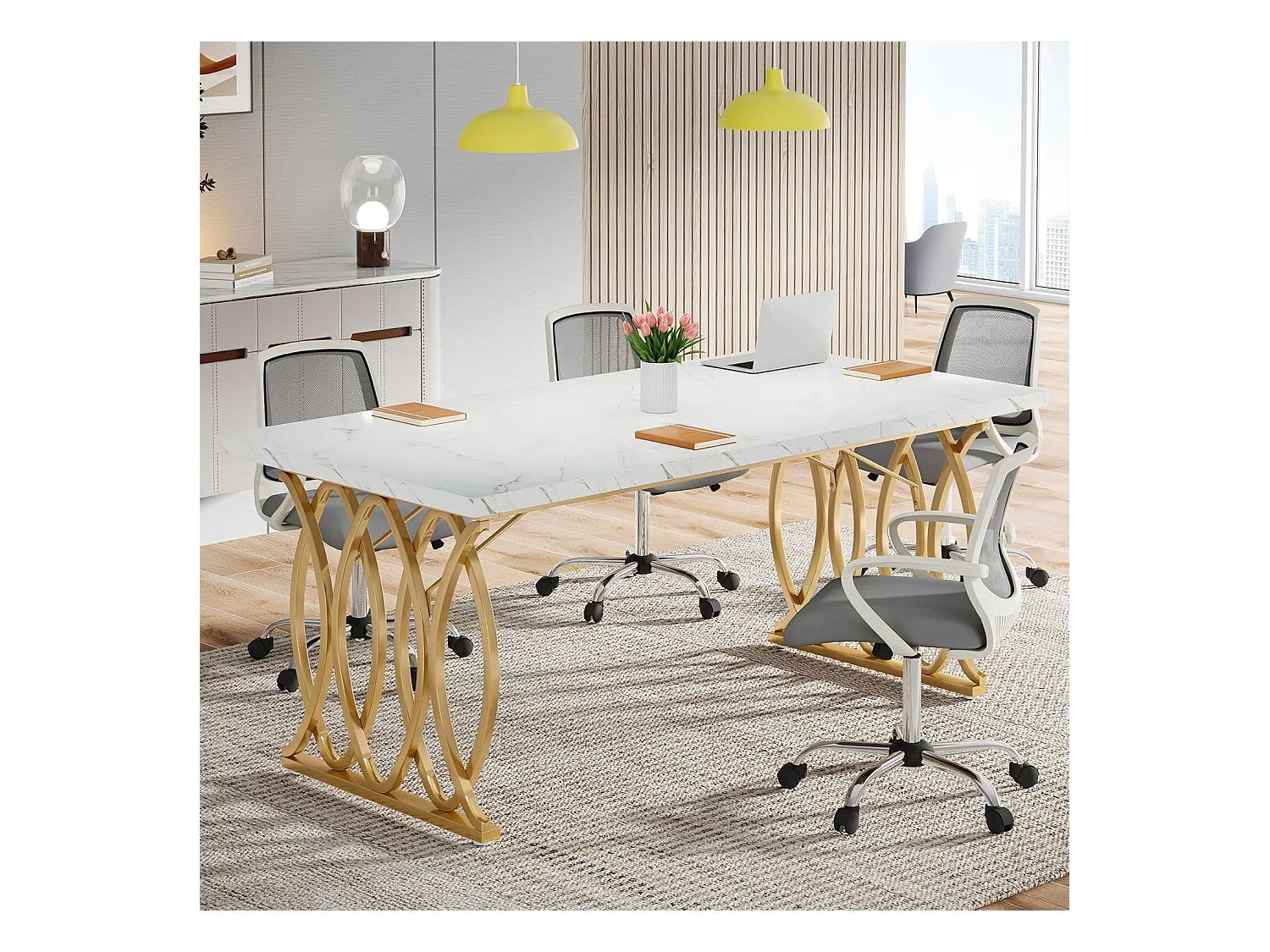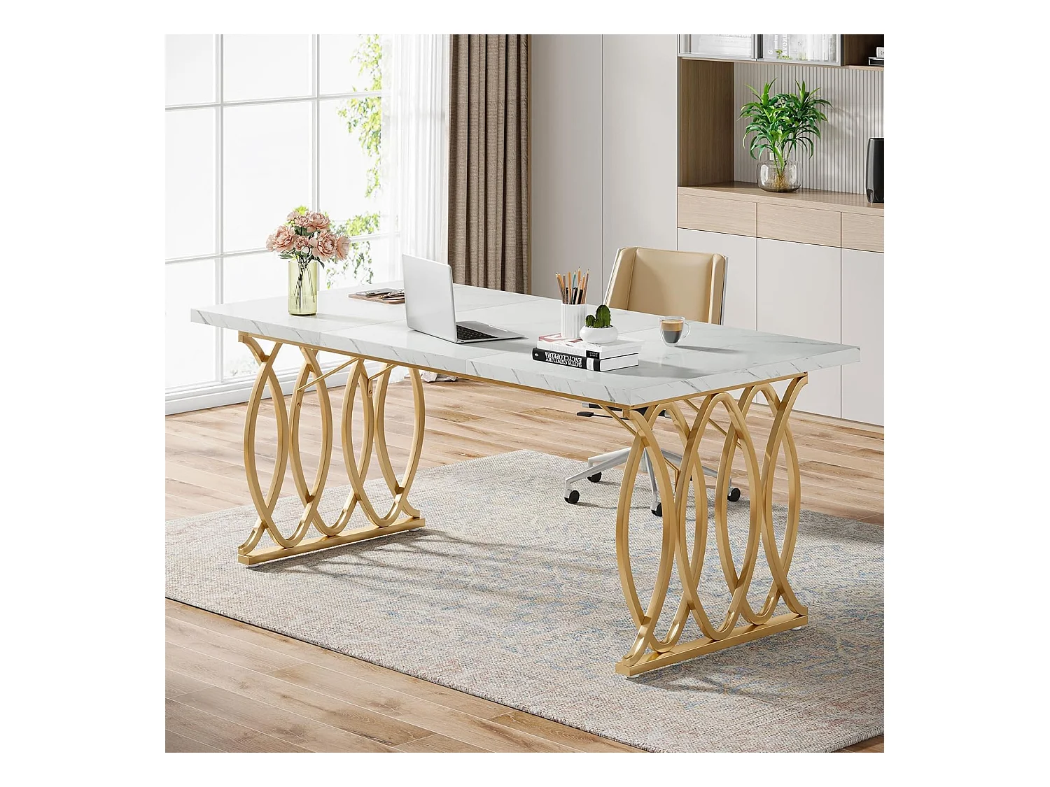 Bureau d'ordinateur, 160 cm Table de Bureau Informatique Table d'Étude Moderne PC Table de Travail Table de Salle à Manger avec Jambes d'or