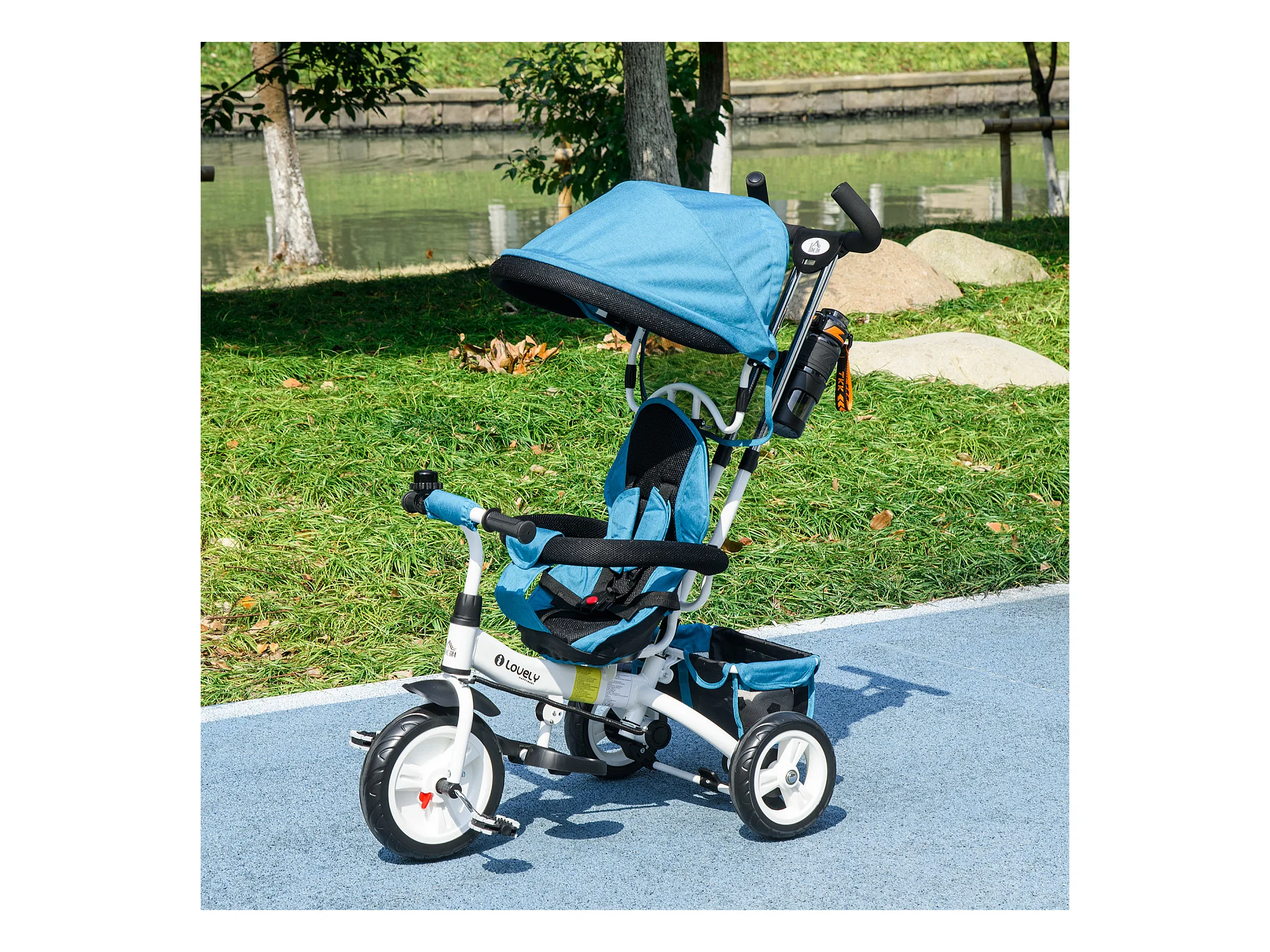 Tricycle enfant évolutif pare-soleil pliable canne télescopique amovible acier bleu