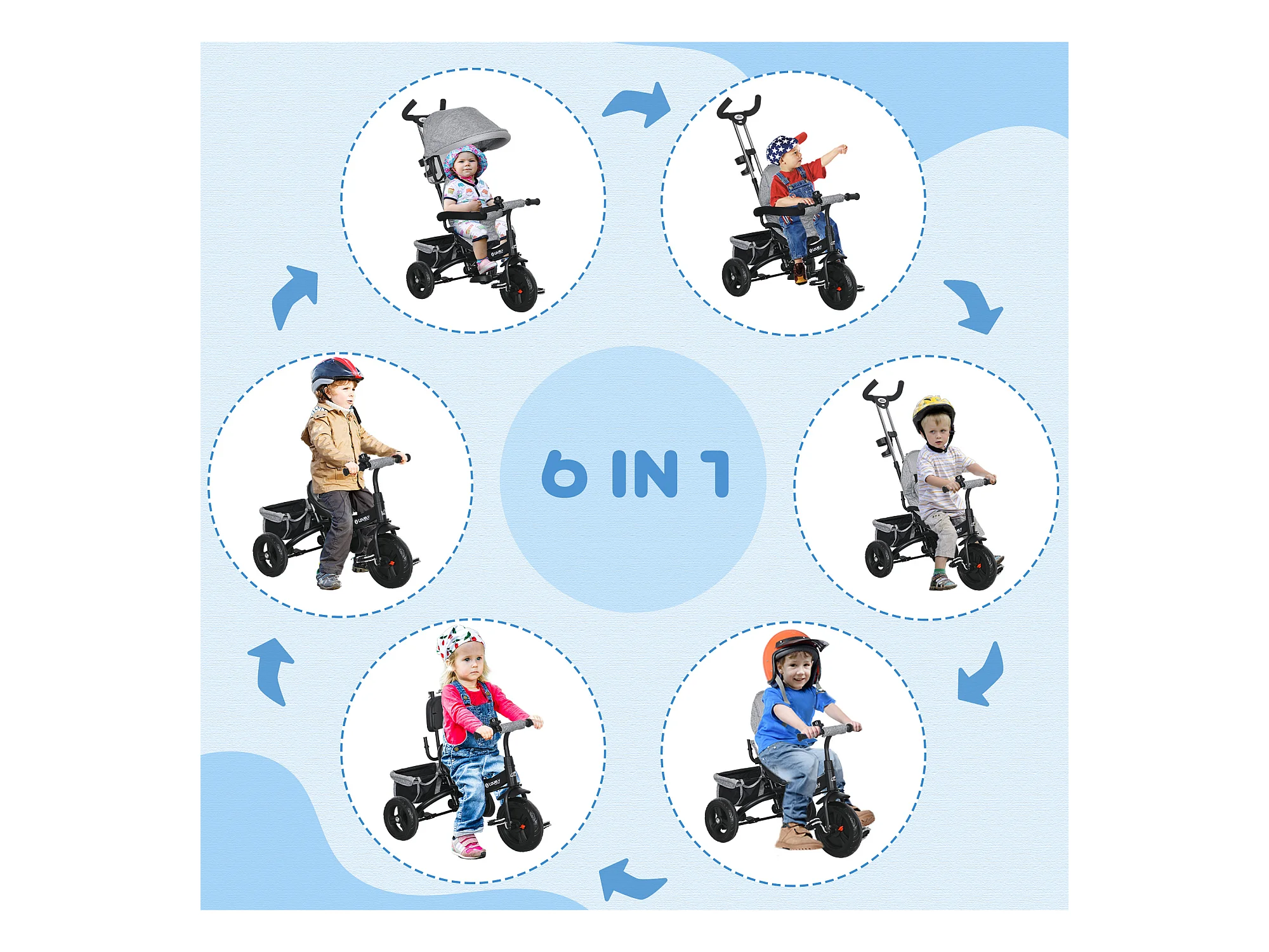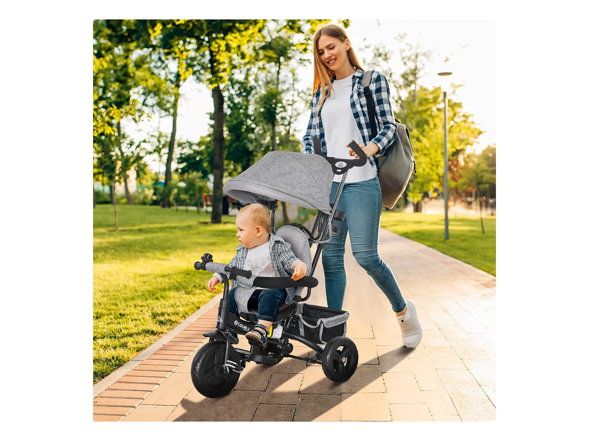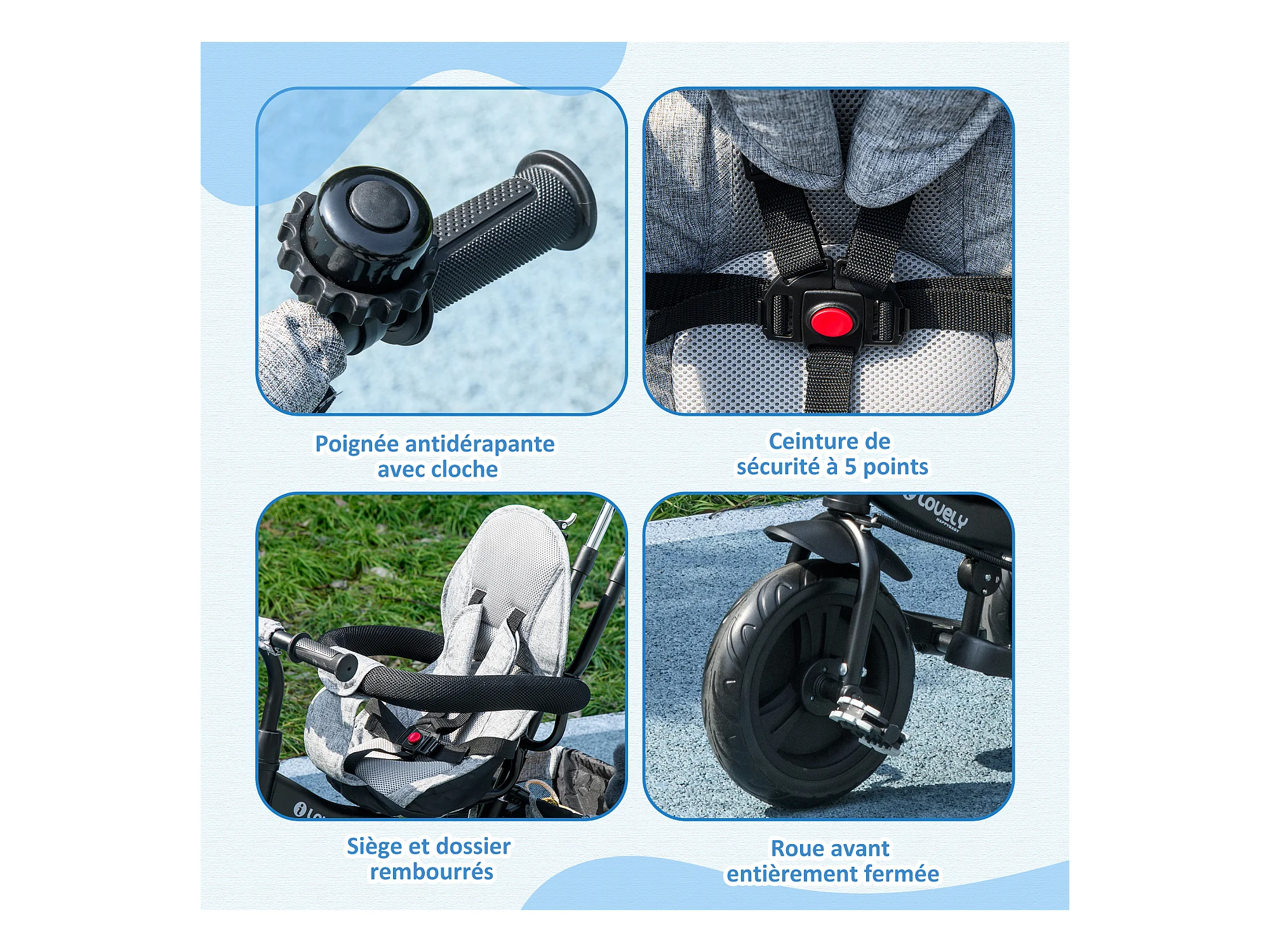 Tricycle enfant évolutif pare-soleil pliable canne télescopique amovible acier gris