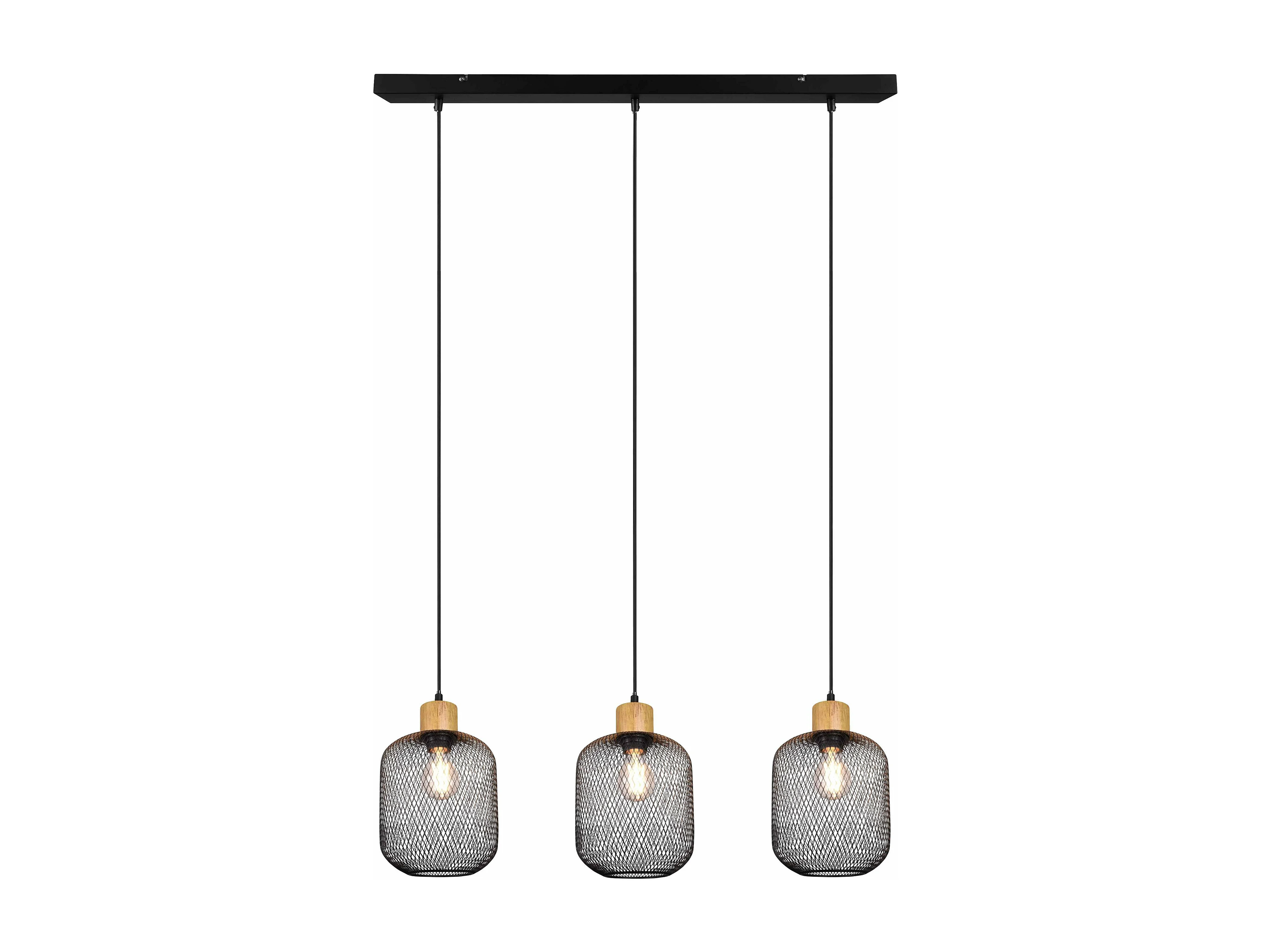 Suspension Hemel en métal bois corde de jute hauteur 60 cm 3 x E27 [lux.pro]
