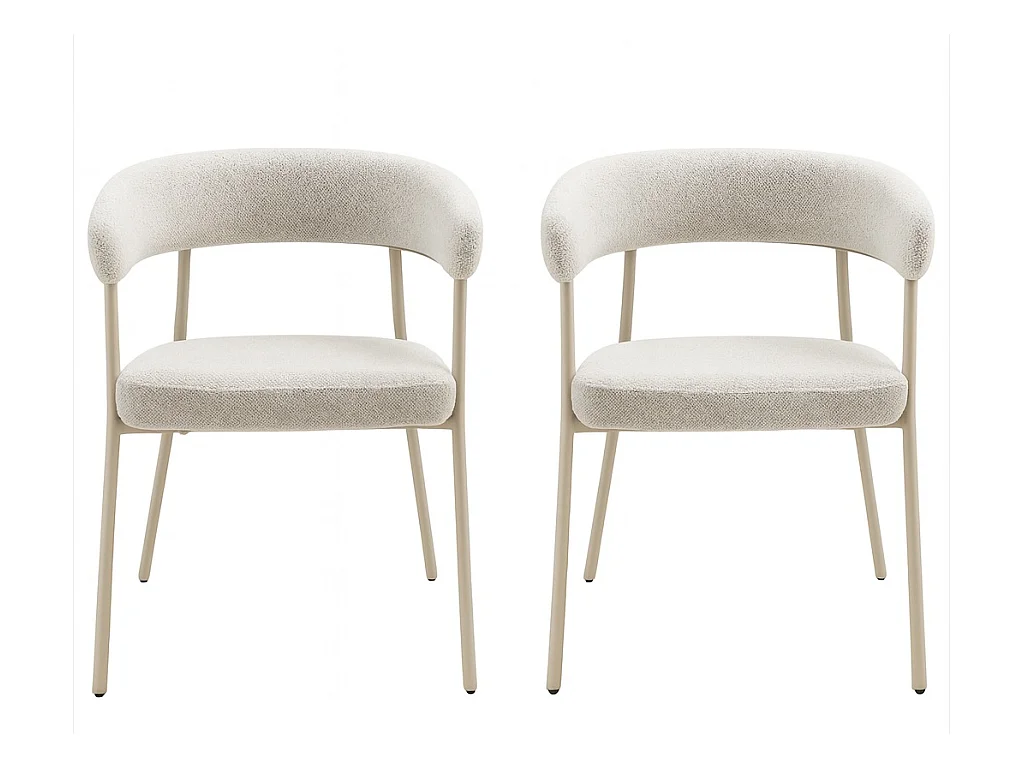 Lot de 2 fauteuils de table TRIVIO en tissu et métal-Beige
