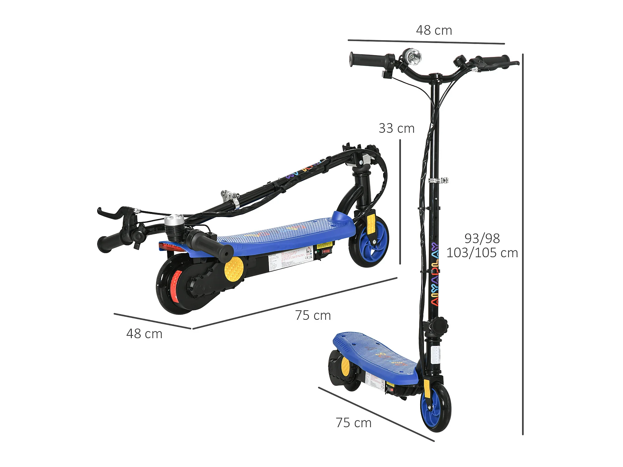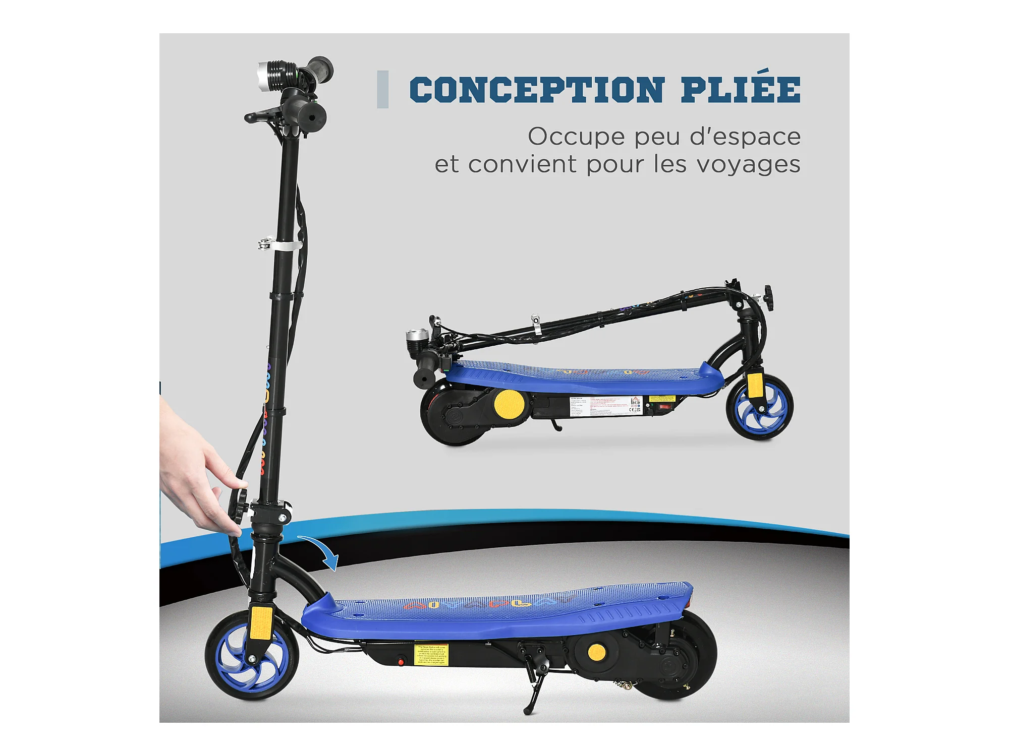 Trottinette électrique 120 W pliable pour enfant de 7 à 12 ans hauteur guidon et selle réglable 10 Km/h max. bleu