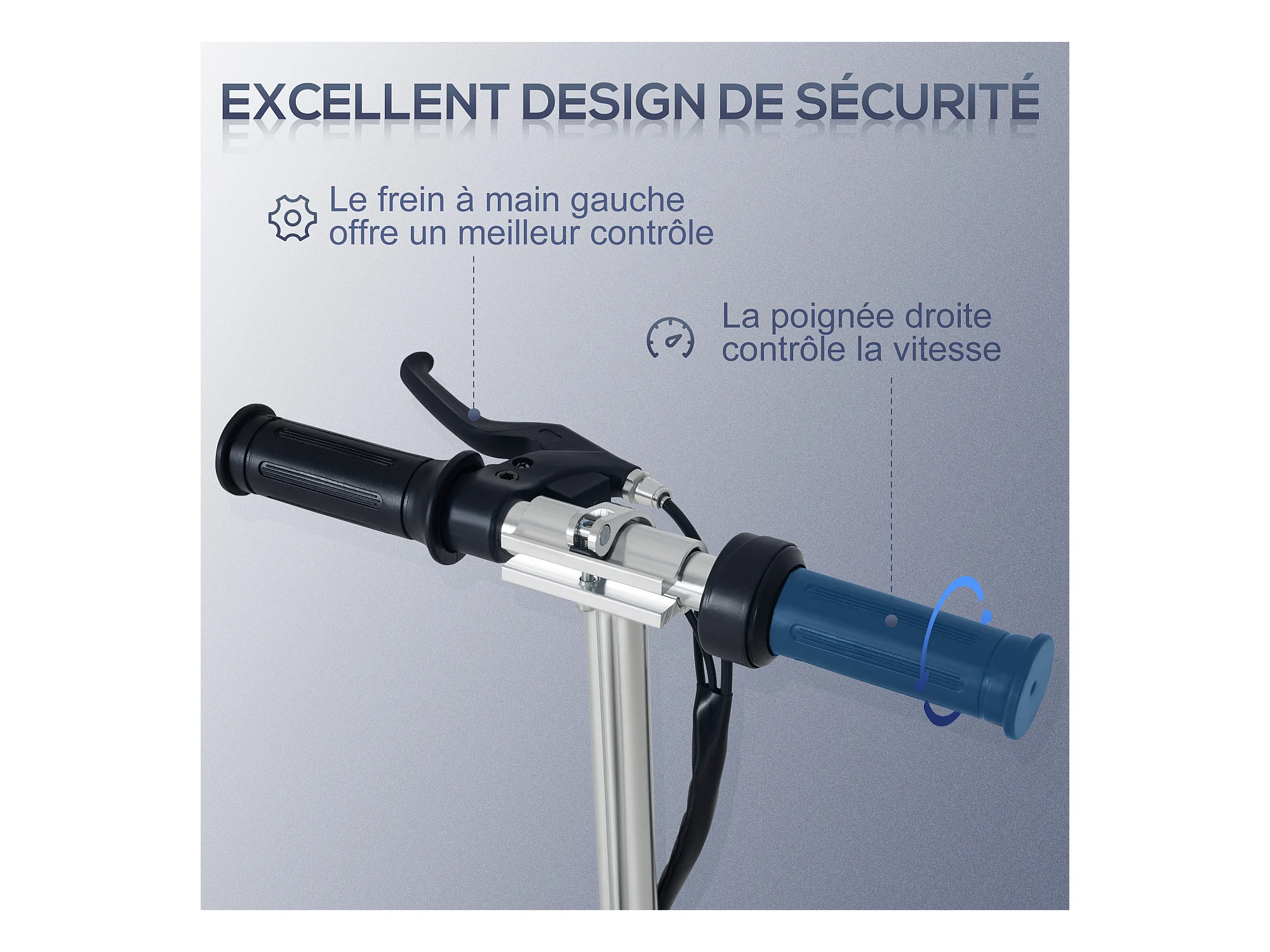 Trottinette électrique 120 W pliable pour enfant de 7 à 12 ans hauteur guidon et selle réglable 10 Km/h max. bleu