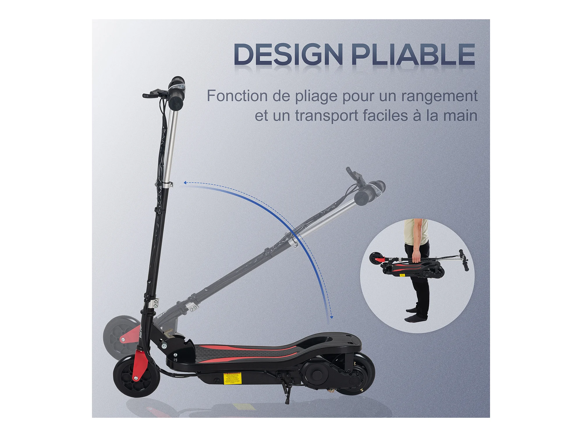 Trottinette électrique pliable enfant 7-14 ans - hauteur réglable - 120W 24V max. 12 Km/h - métal PP rouge noir