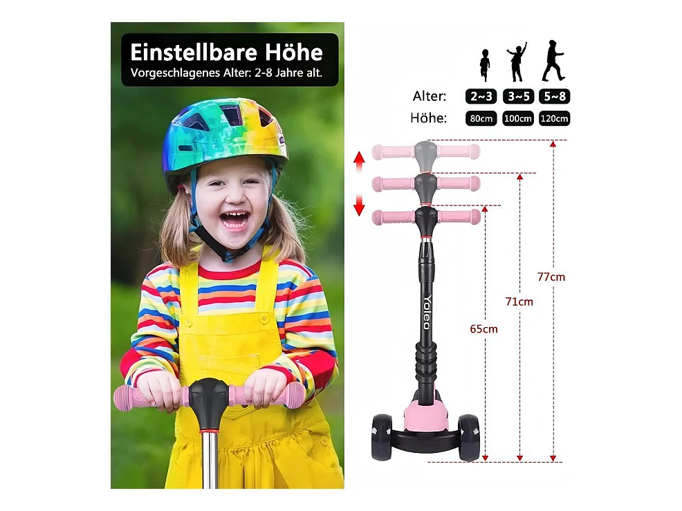 Trottinette Enfant 3 en 1 - Siège Amovible - réglable en hauteur - grandes roues LED - pour Enfants de 2 à 8 Ans jeu extérieur