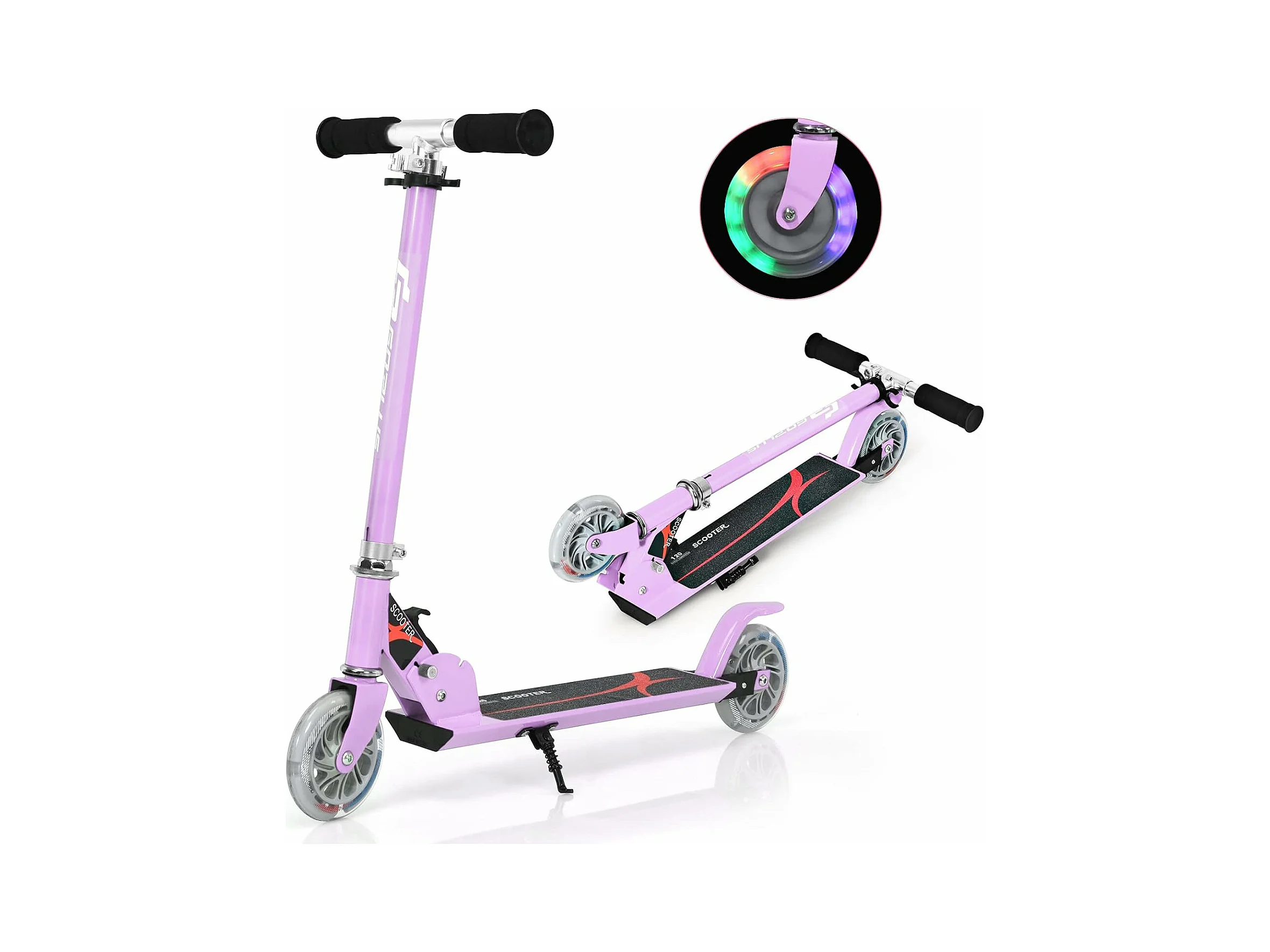 Trottinette Enfant 2 Roues Patinette Enfant Pliable Scooter Enfant Kick avec LED Lumière Hauteur Réglable