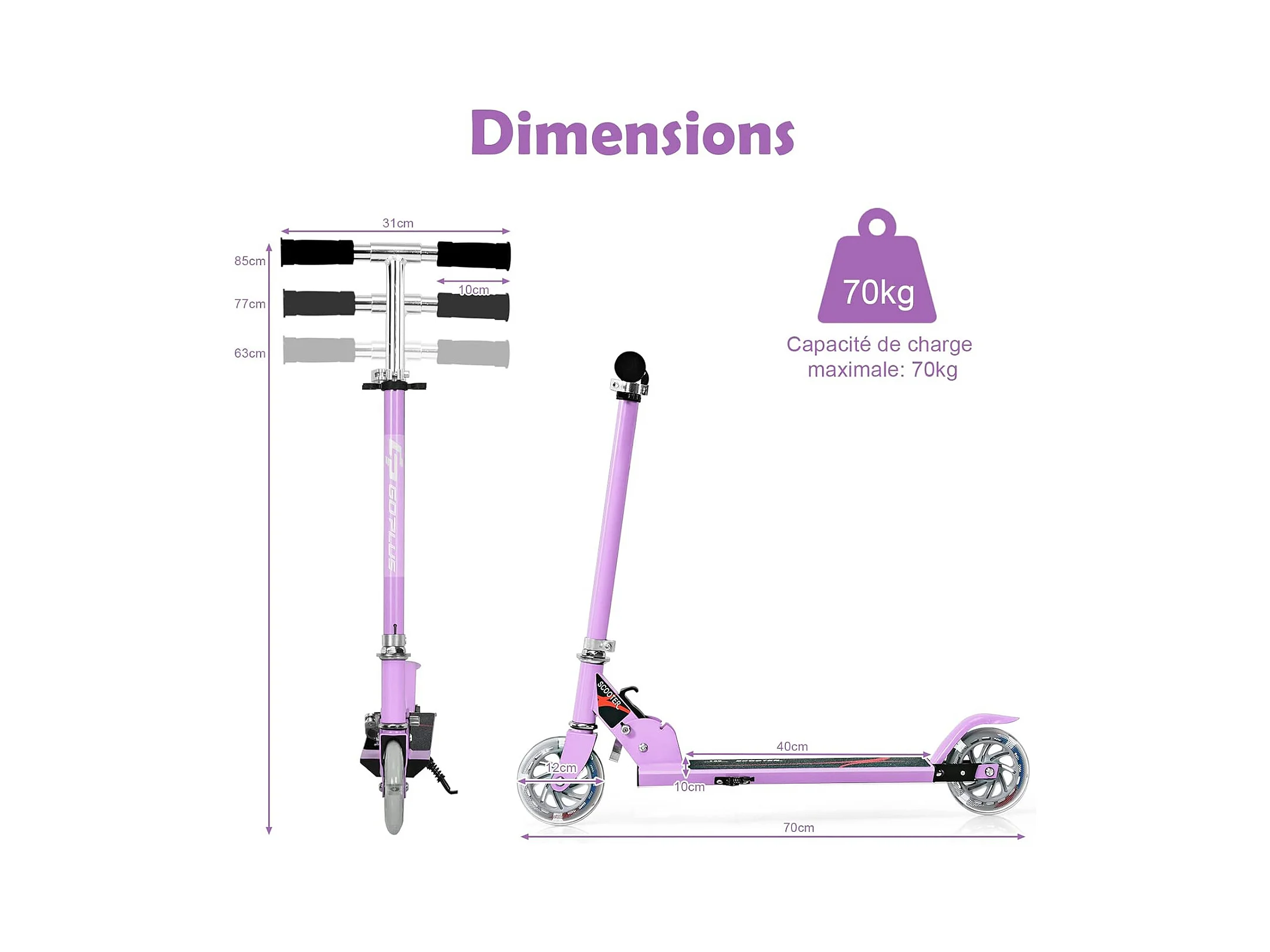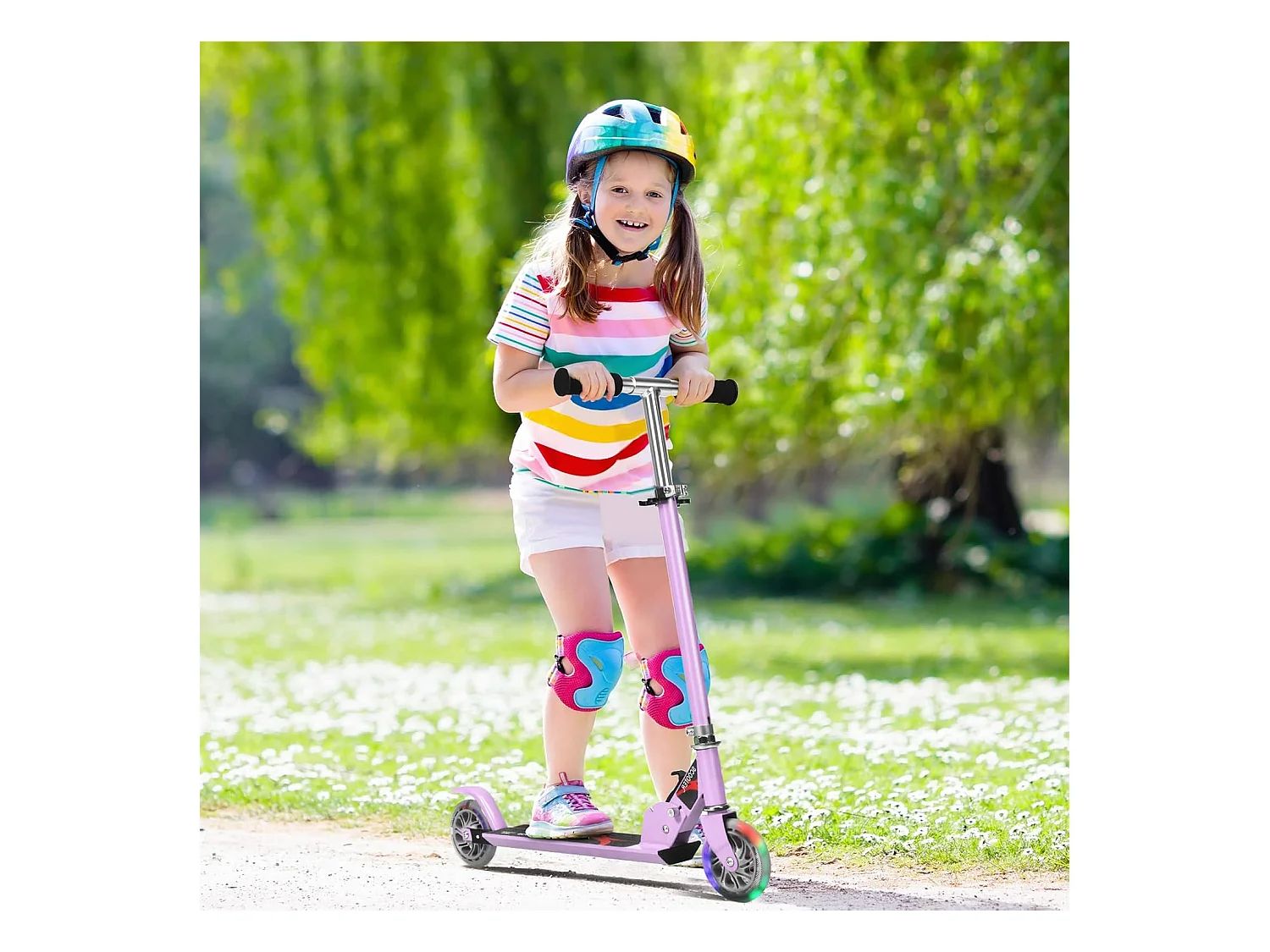 Trottinette pour enfants de 3 à 12 ans, Trottinette pliable avec roue lumineuse LED, 4 hauteurs réglables, frein à friction arrière