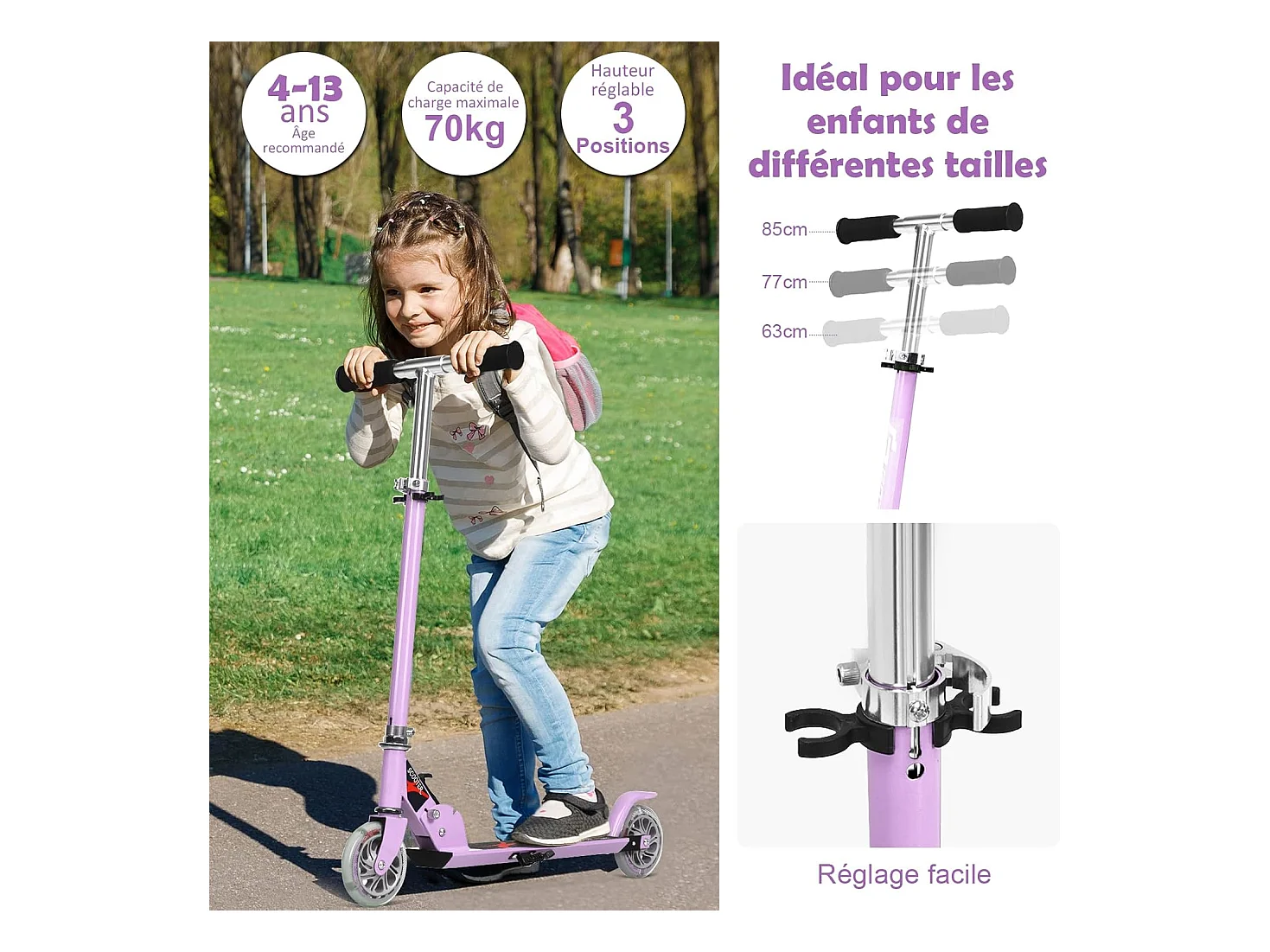 Trottinette enfant 2 roues patinette enfant pliable scooter enfant