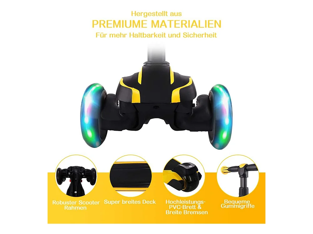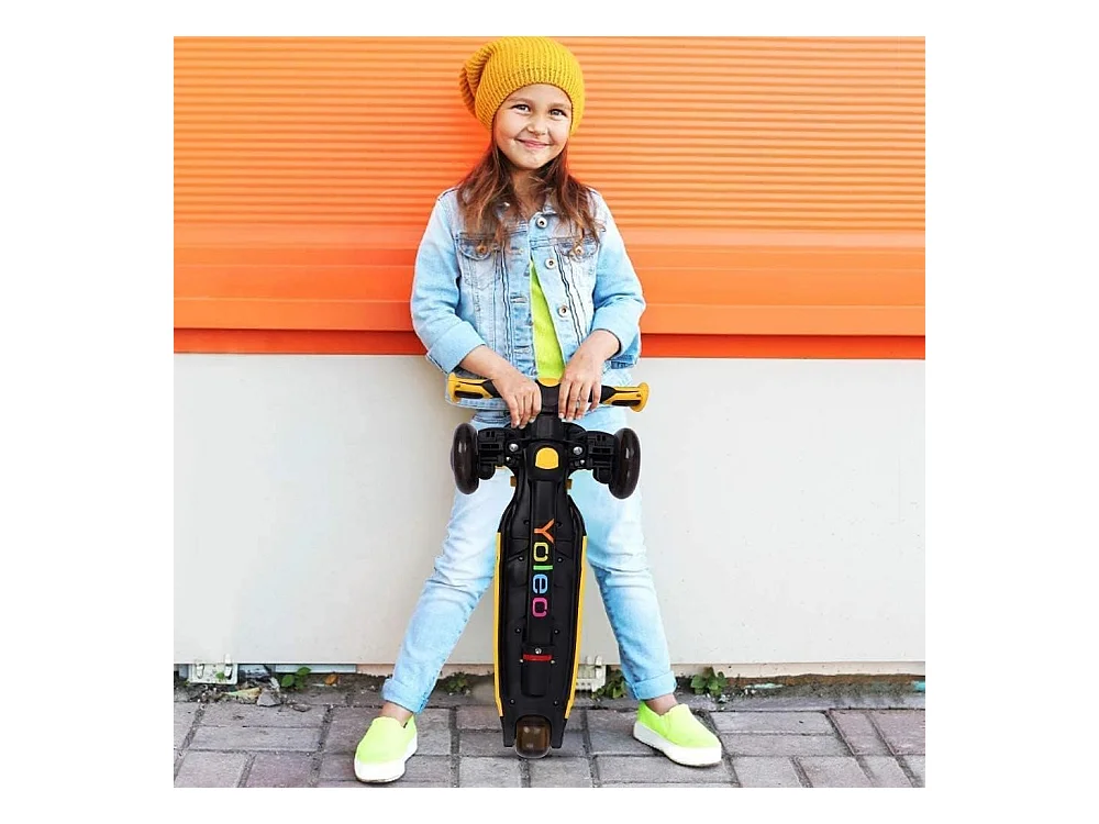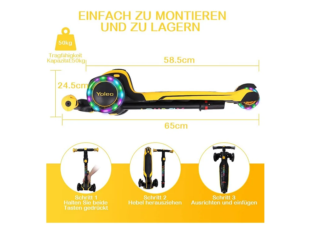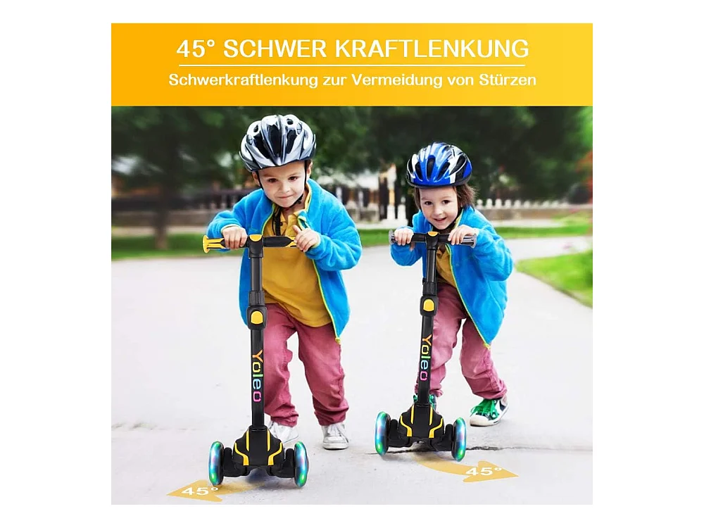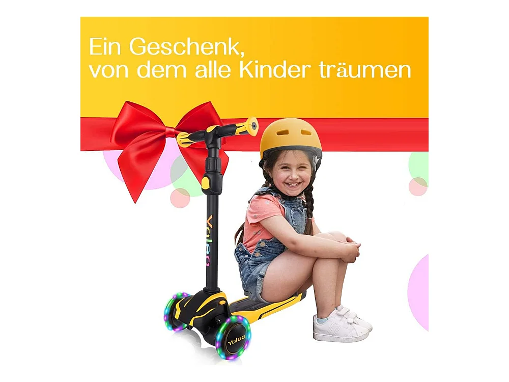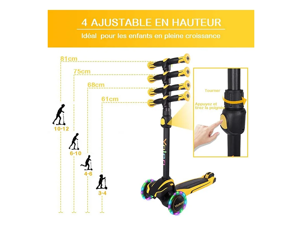 Trottinette Enfant YOLEO avec 4 Hauteurs Réglables, Roues Lumineuses LED, pour 3-12 Ans