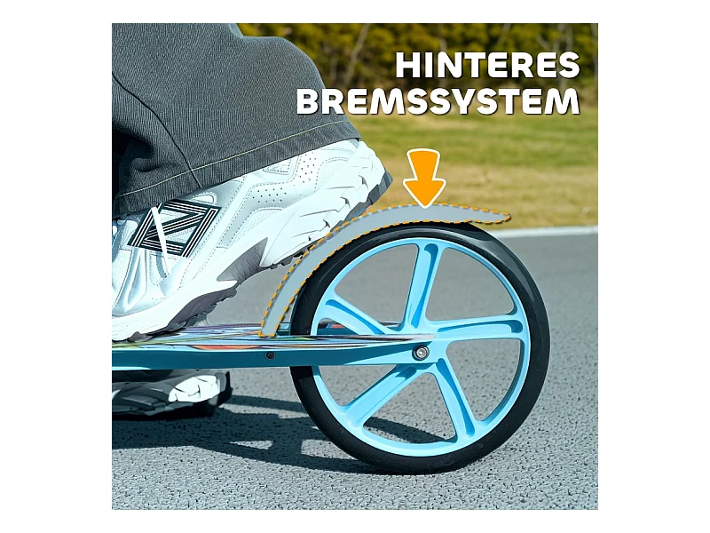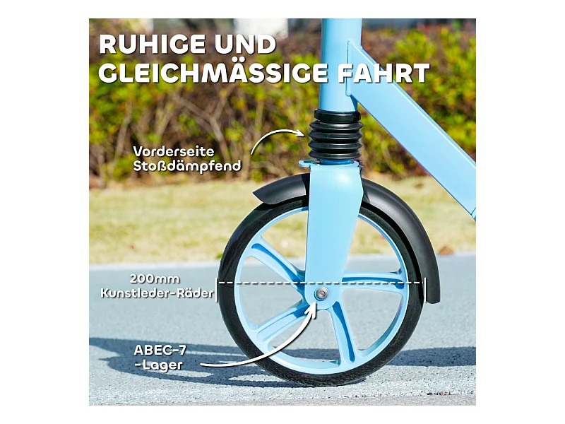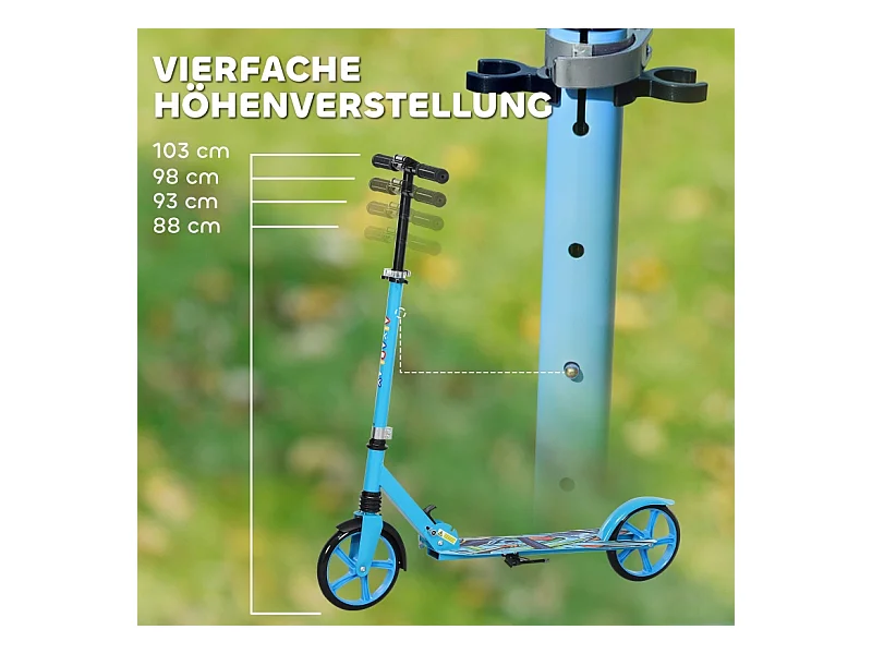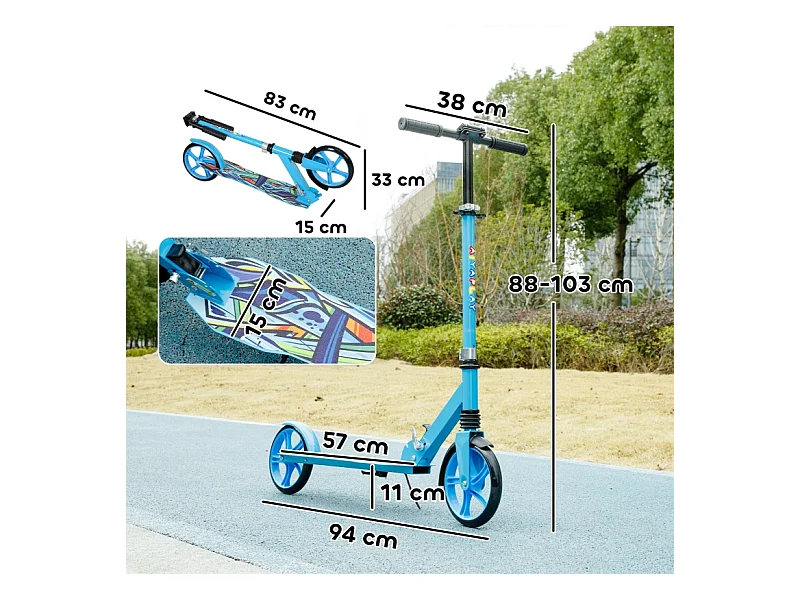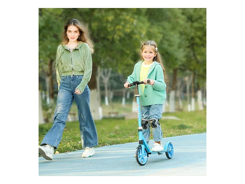 Trottinette pliable pour enfants, réglable en hauteur, 2 grandes roues, frein arrière, plastique, bleu (94x38x103cm)