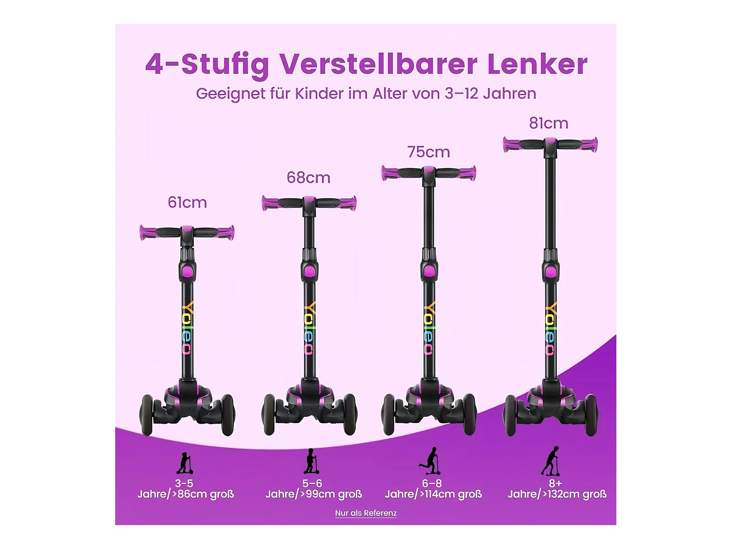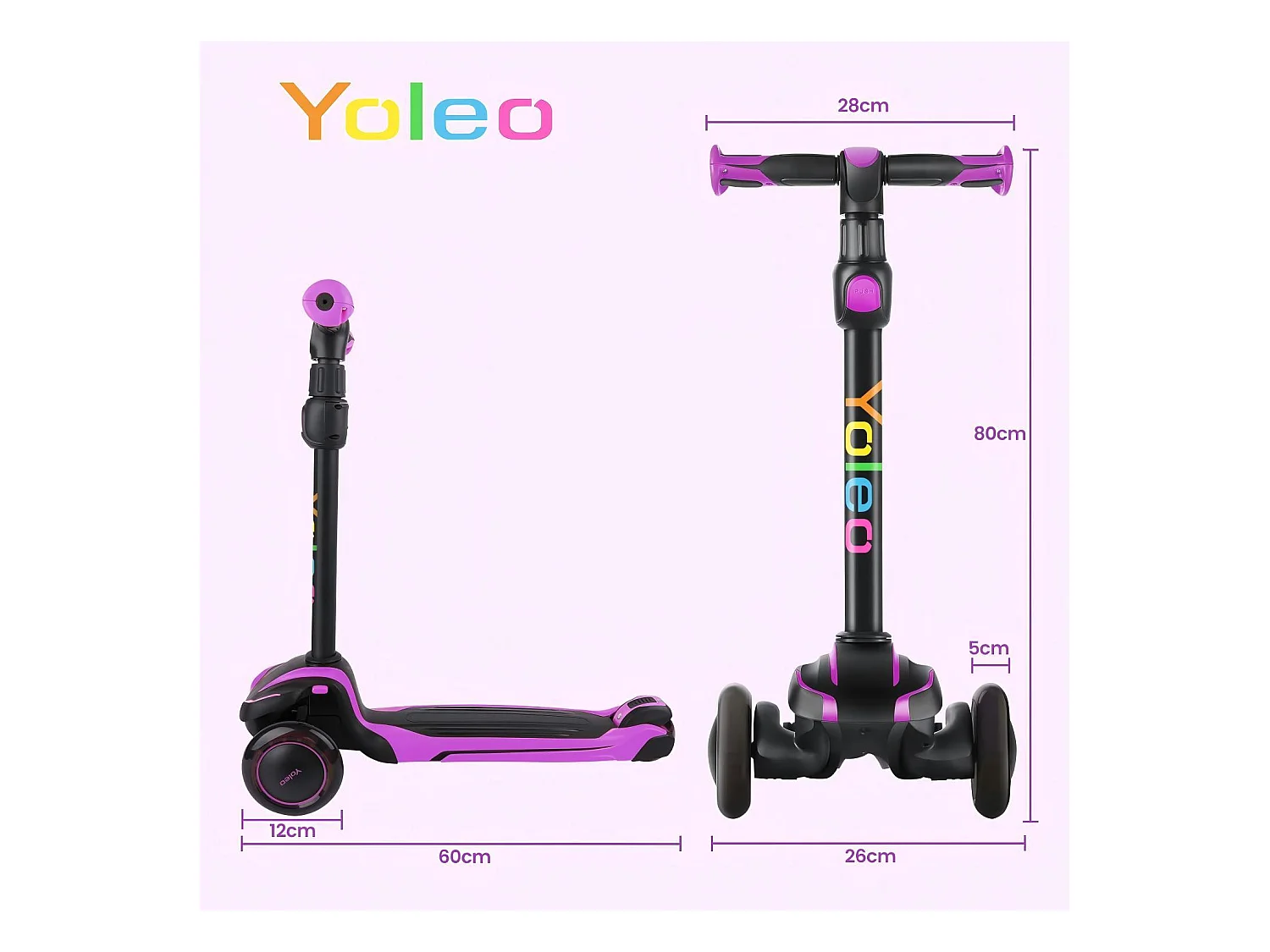Trottinette pour enfants avec roues lumineuses LED, trottinette tricycle, réglable en hauteur, pour 3 à 12 ans, Charge Max. 50kg
