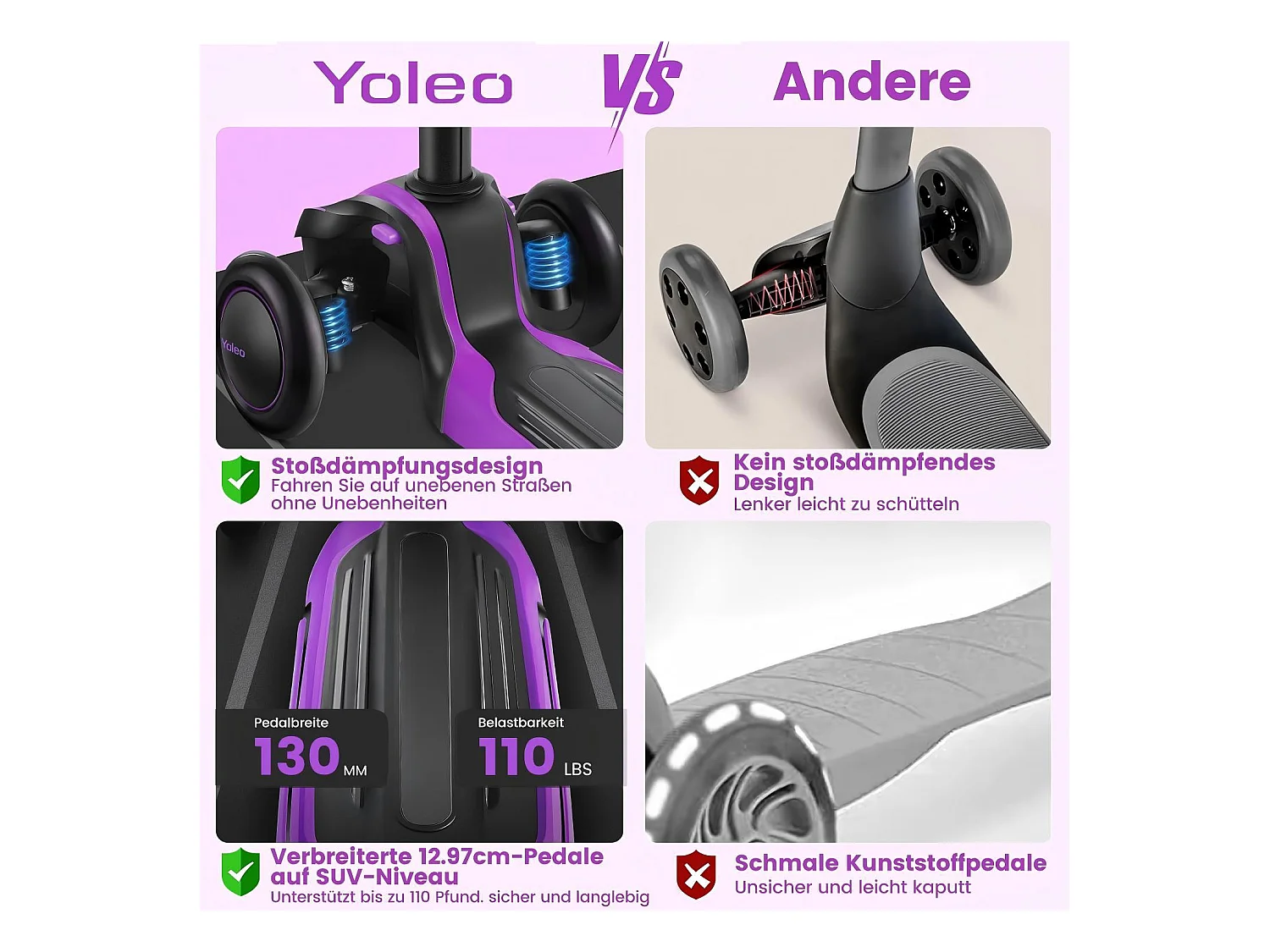 Trottinette pour enfants de 3 à 12 ans, Trottinette pliable avec roue lumineuse LED, 4 hauteurs réglables, frein à friction arrière