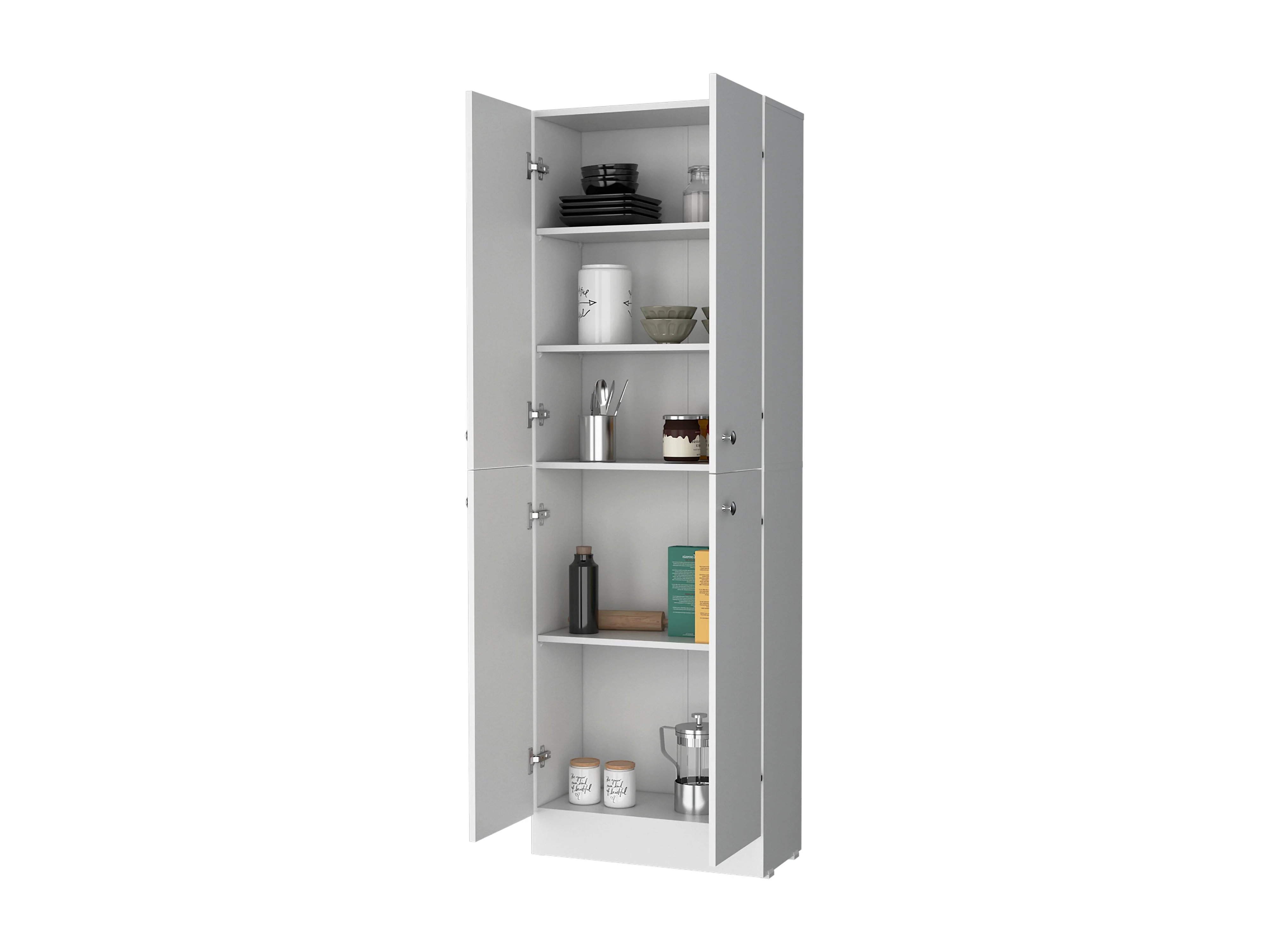 TUHOME Armoire de Rangement Cameron avec 4 Portes et 5 Étagères Cachées, Blanc