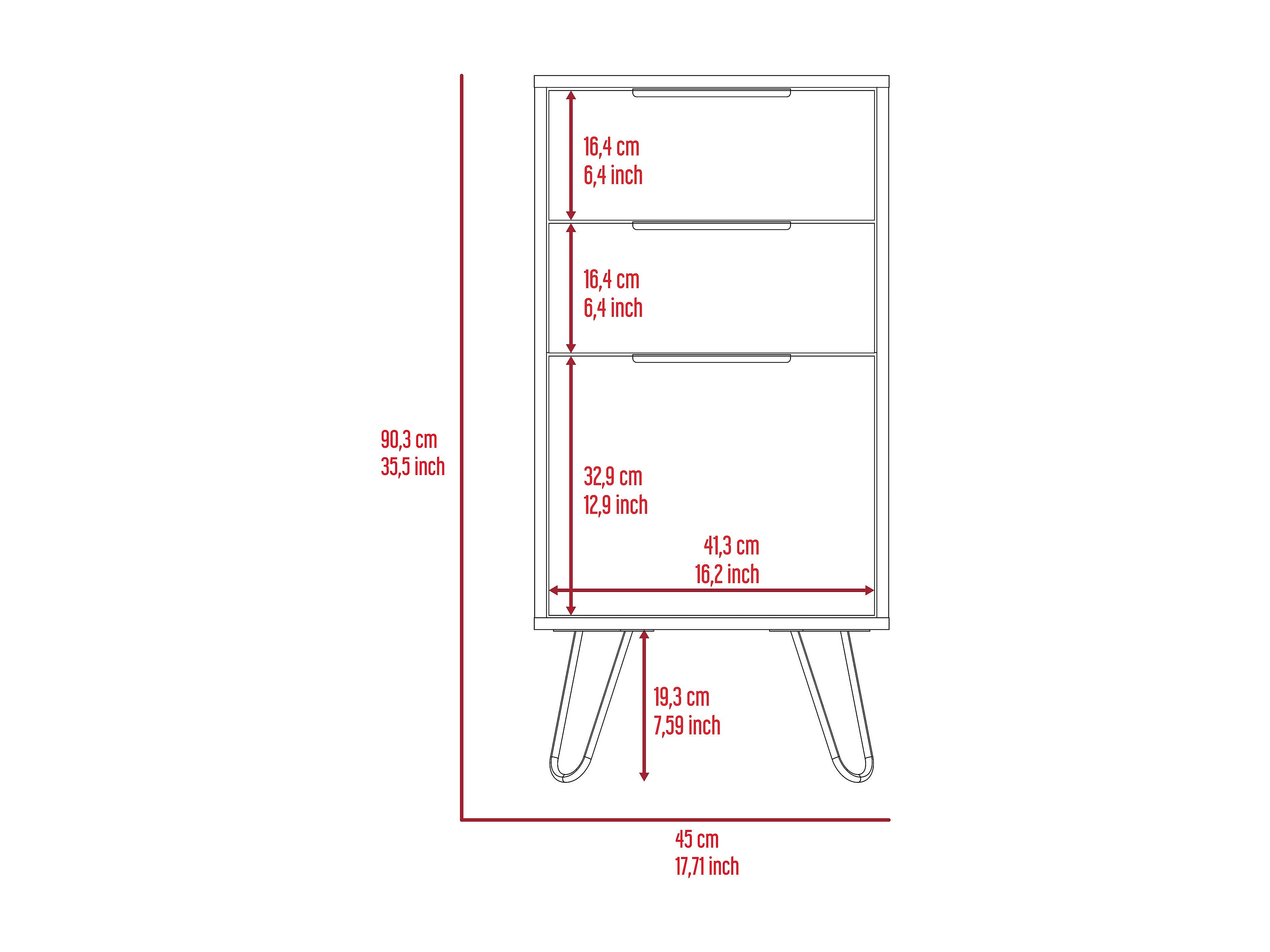 TUHOME Commode London, Trois Tiroirs, Surface Supérieure, Pieds en Épingle