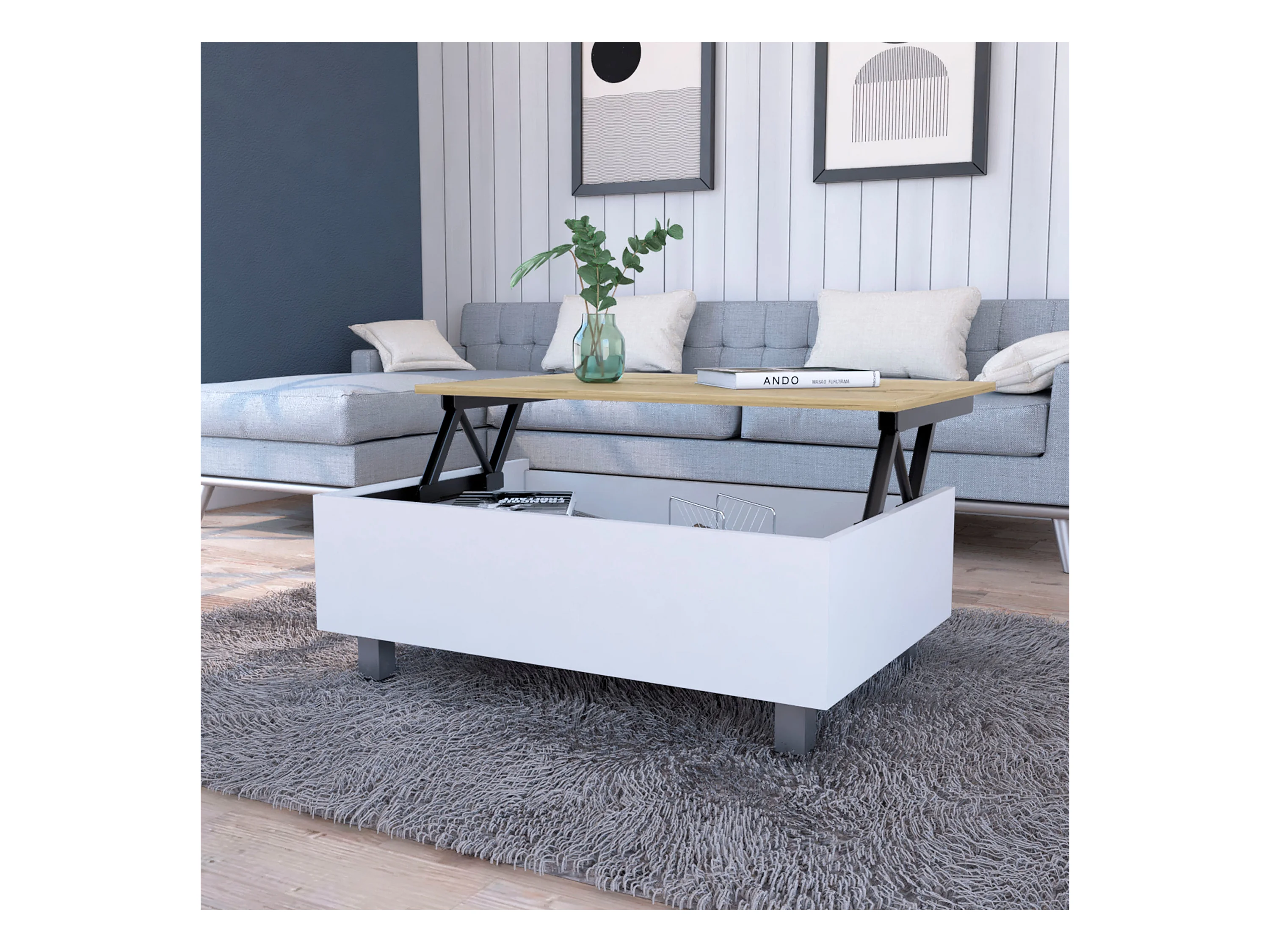 TUHOME Table Basse Relevable Boston, Blanc / Chêne Clair