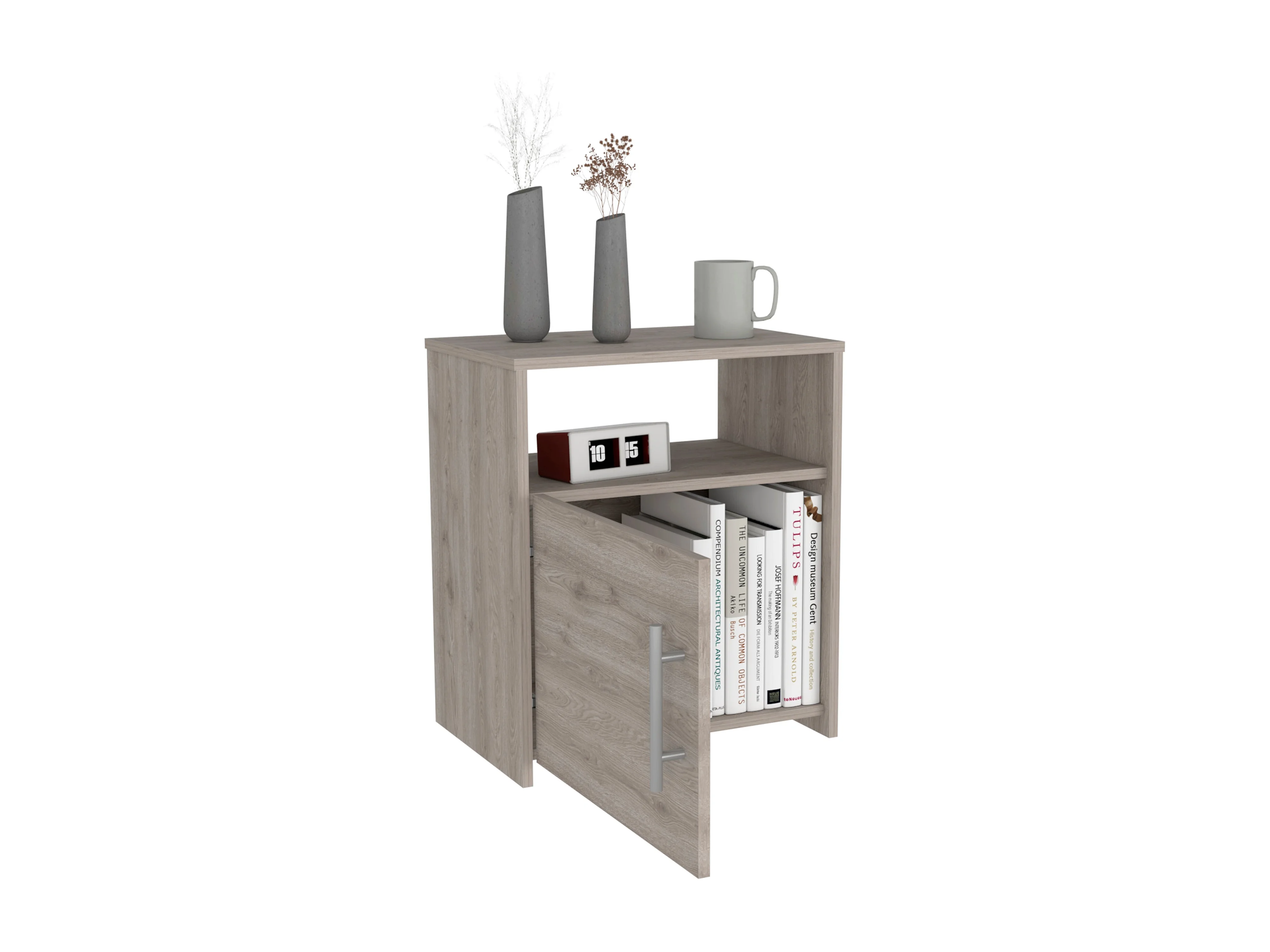 TUHOME Table de Nuit Bristol, Un Compartiment avec Porte, Surface Supérieure, Gris Clair