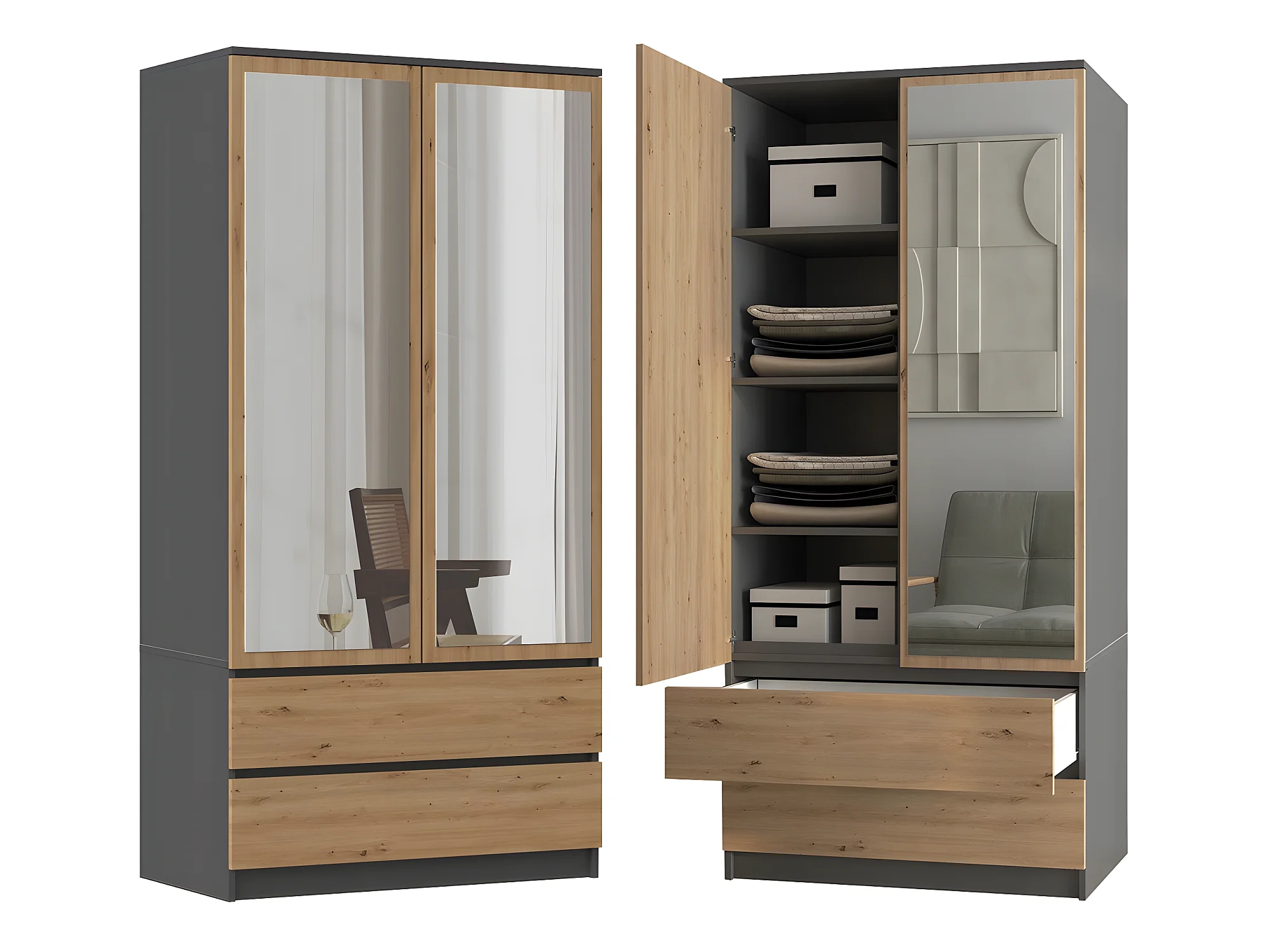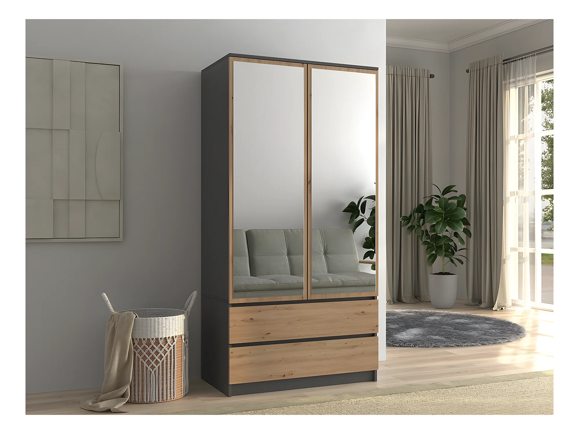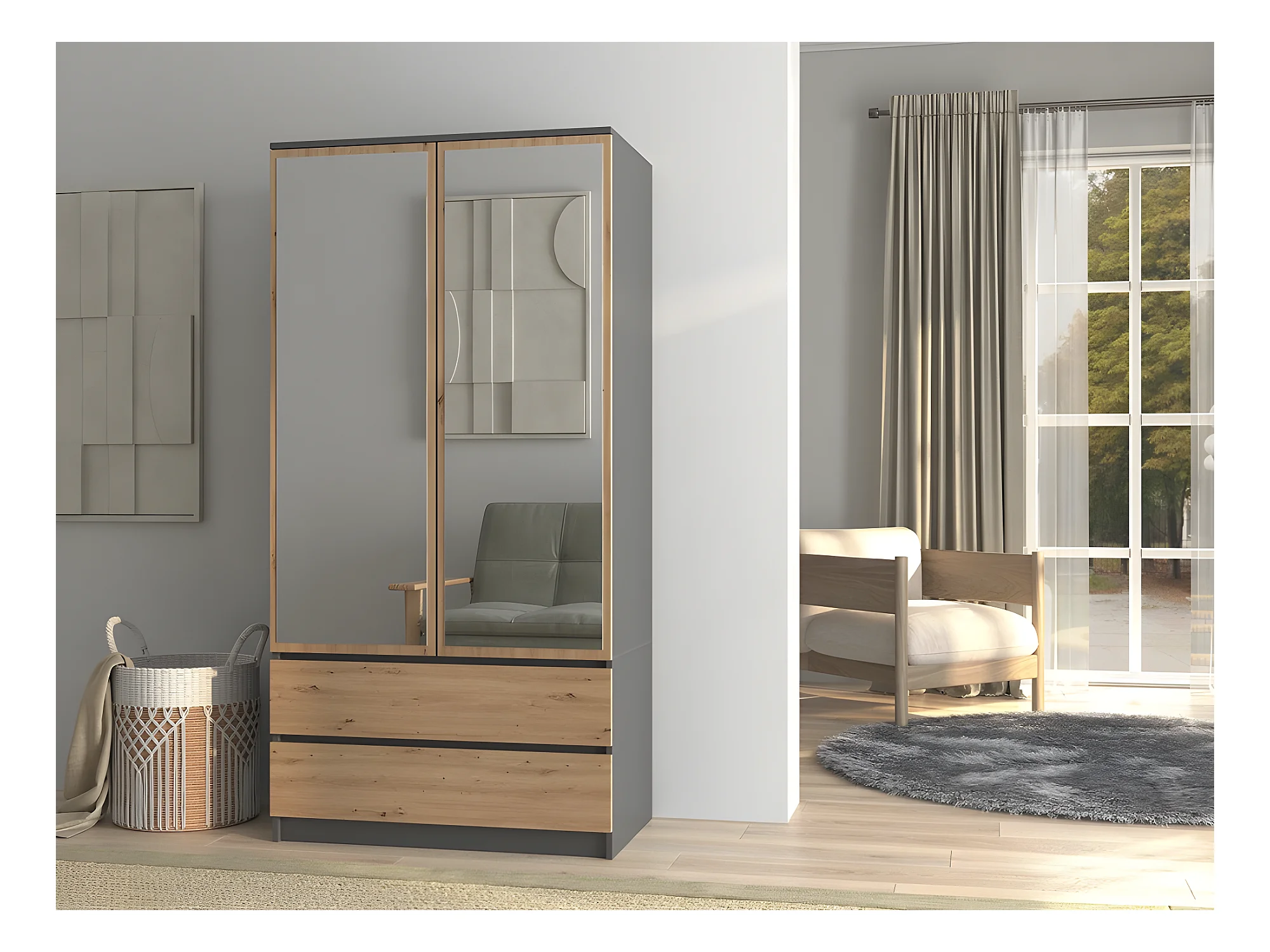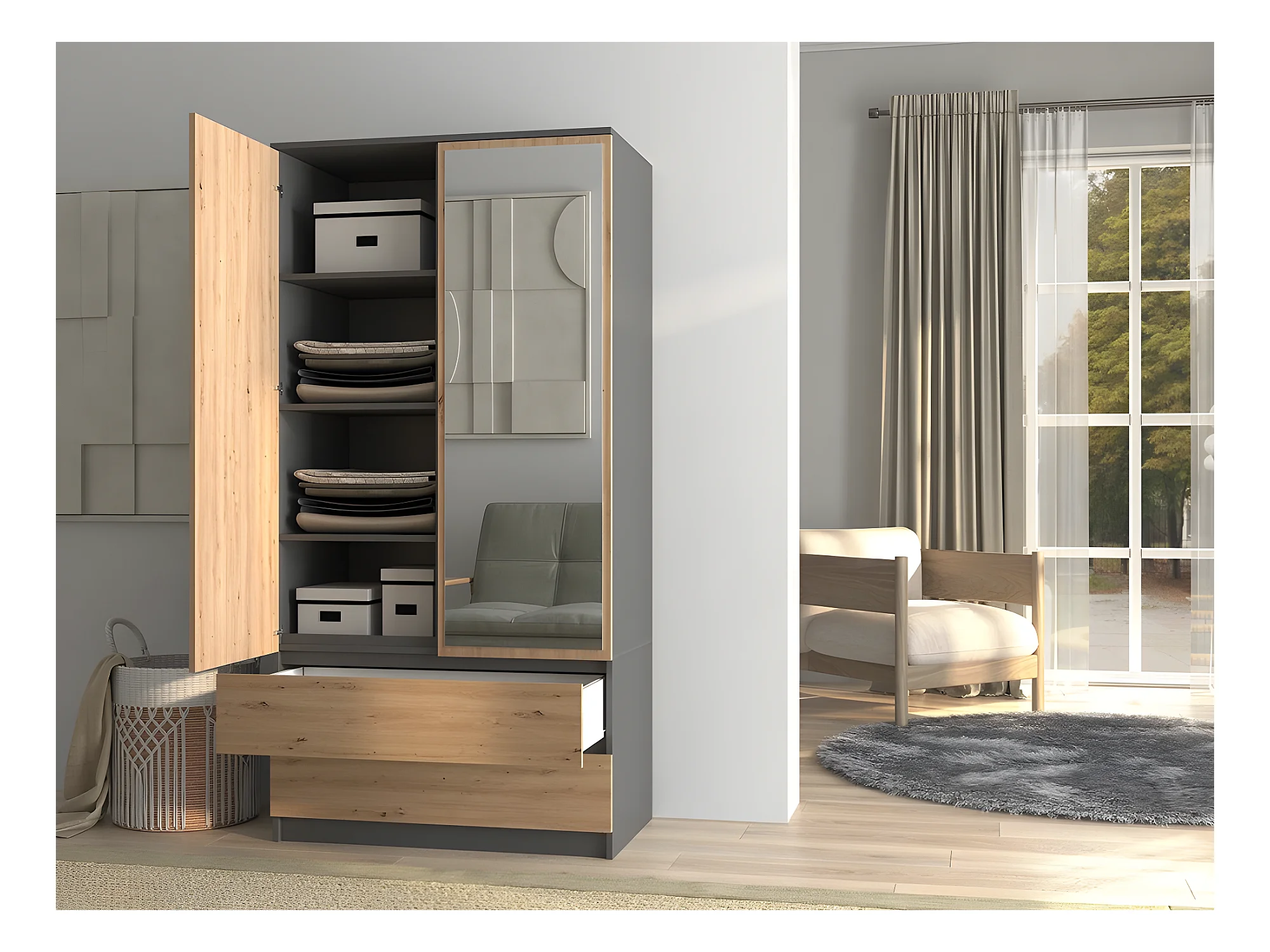 TURIN - Armoire 2 portes avec miroir style moderne chambre à coucher - 90x50x180 - 2 tiroirs
