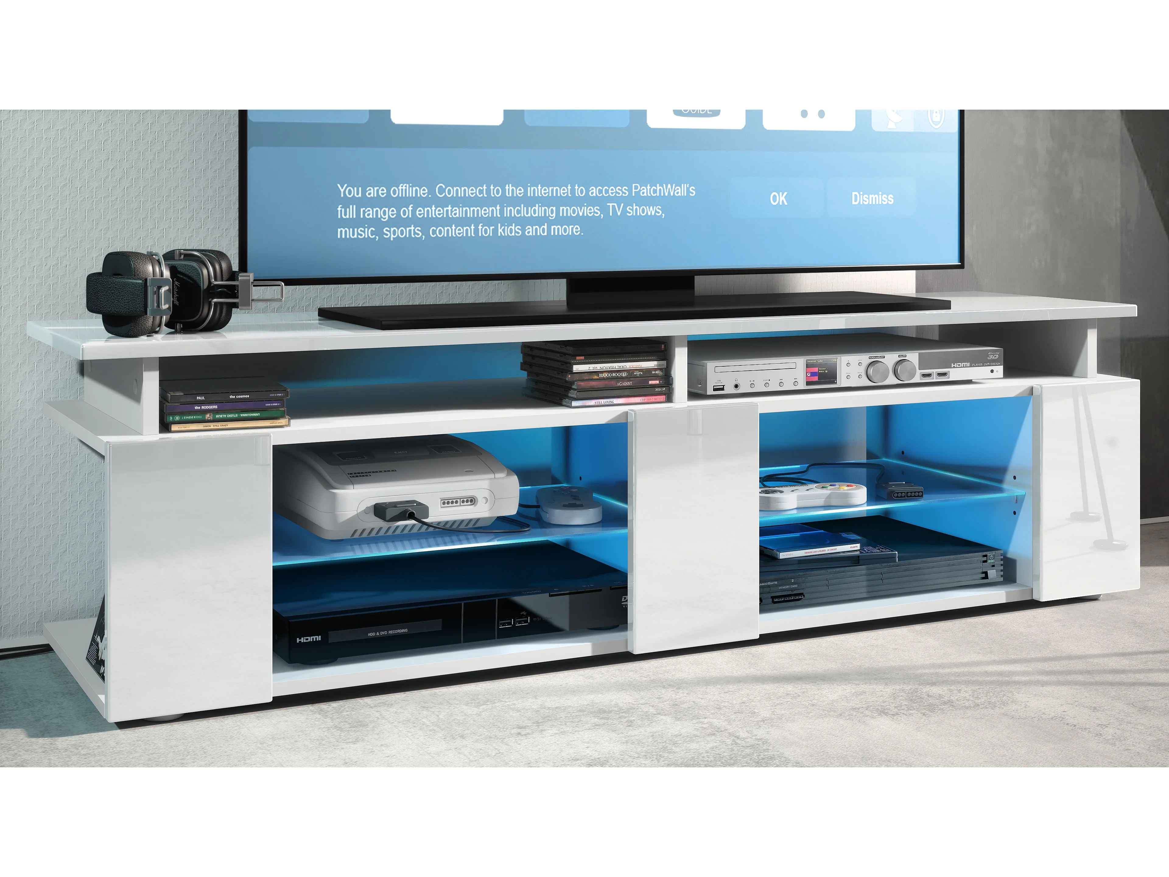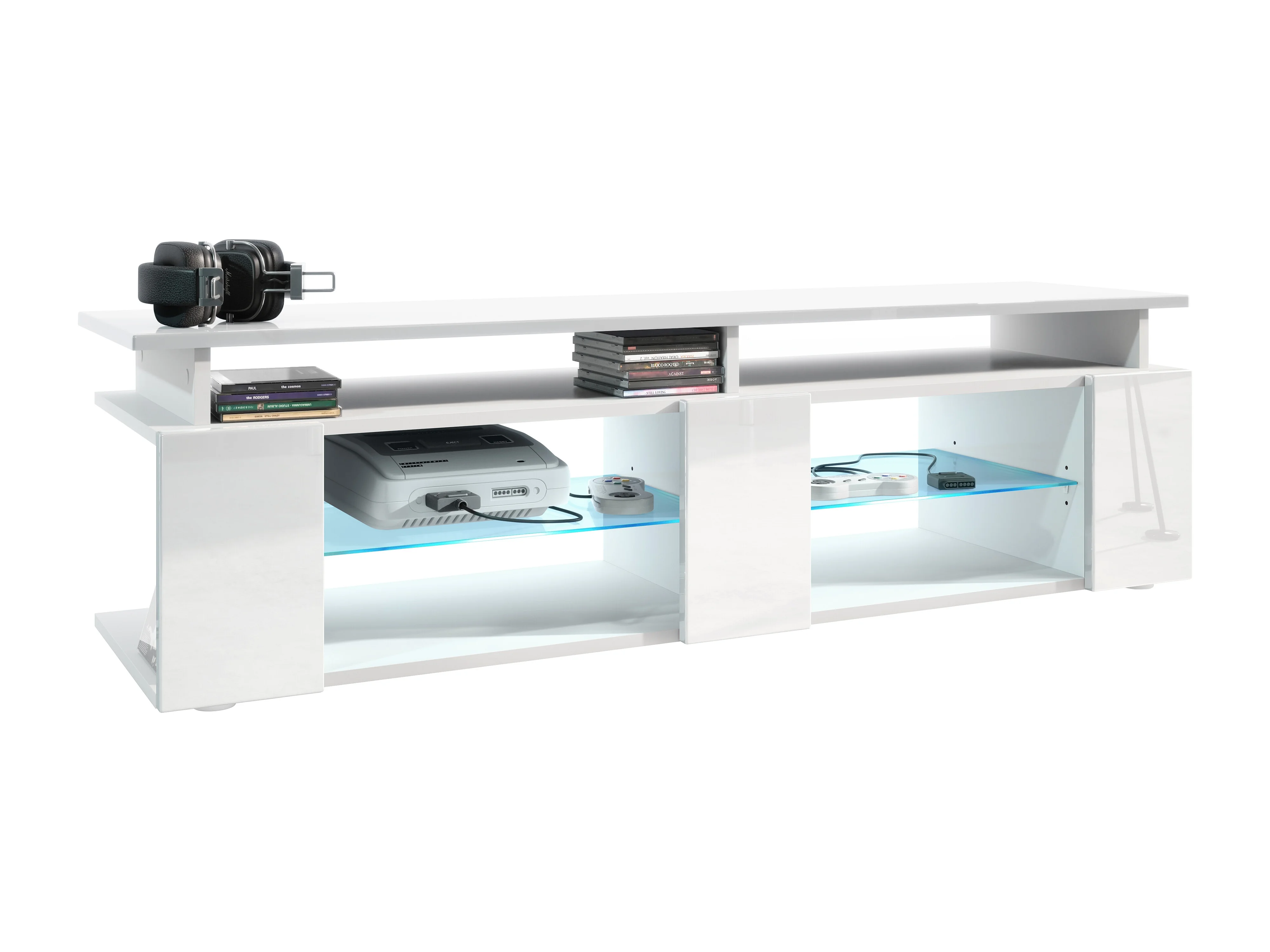 TV Board Movie V2 Game On Lowboard 138,5 x 39 x 39 cm , caisson en blanc mat, façades en blanc haute brillance