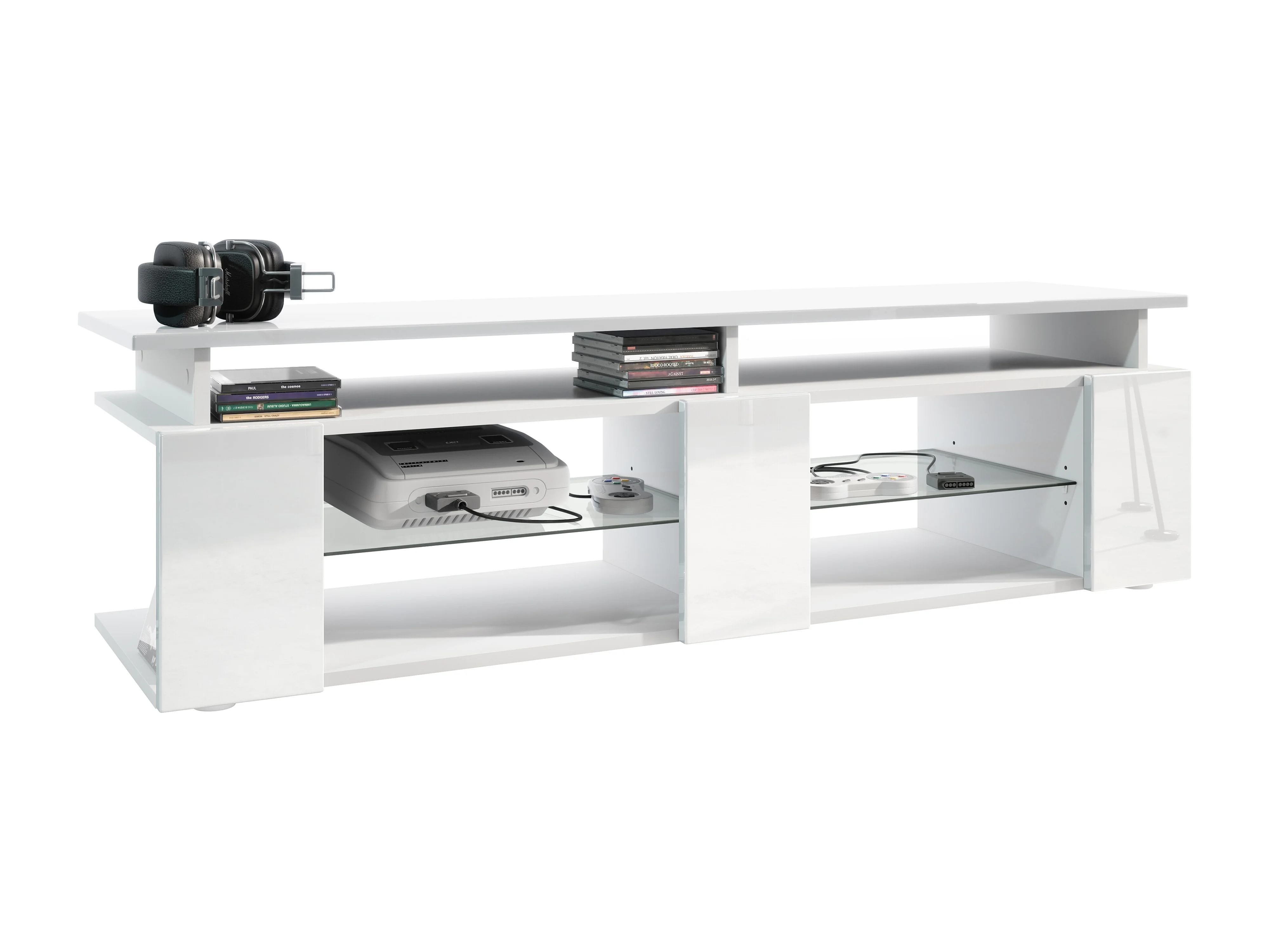 TV Board Movie V2 Game On Lowboard 138,5 x 39 x 39 cm , caisson en blanc mat, façades en blanc haute brillance