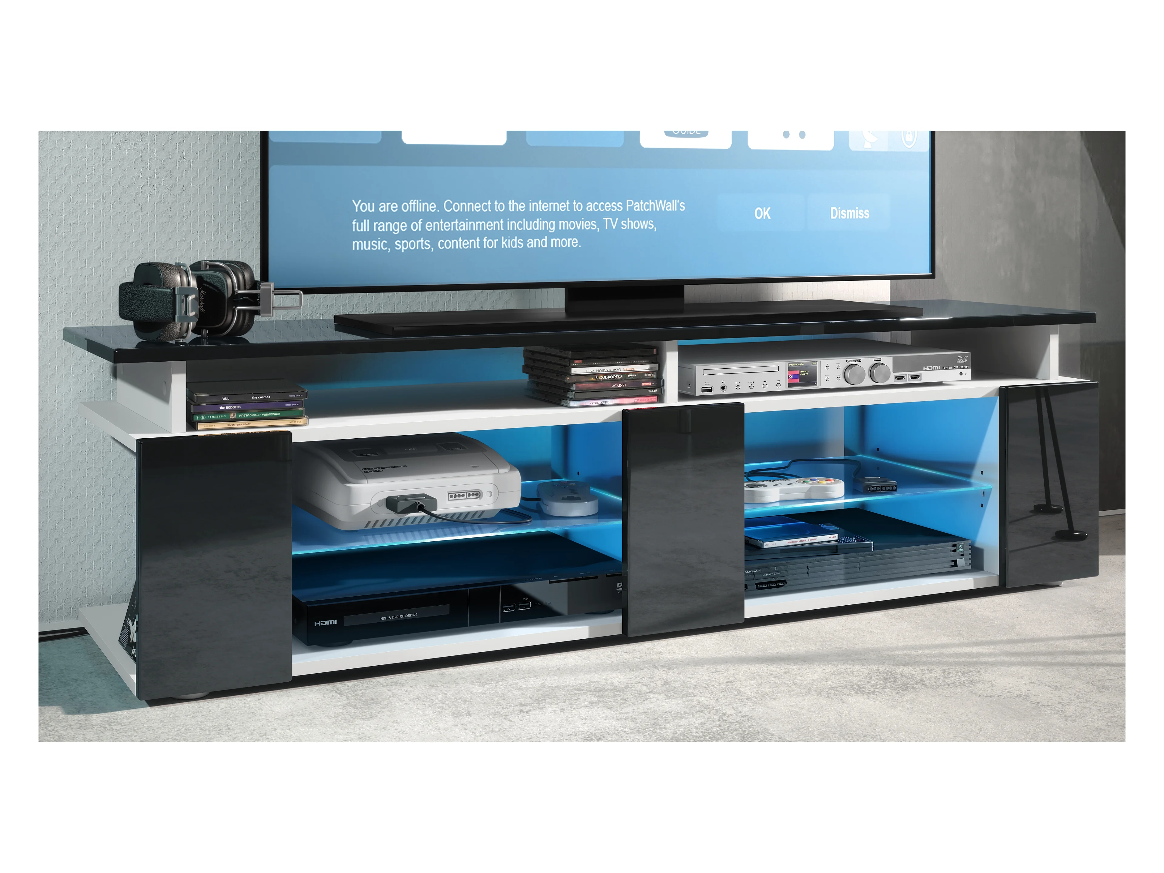 TV Board Movie V2 Game On Lowboard 138,5 x 39 x 39 cm , caisson en blanc mat, façades en noir haute brillance