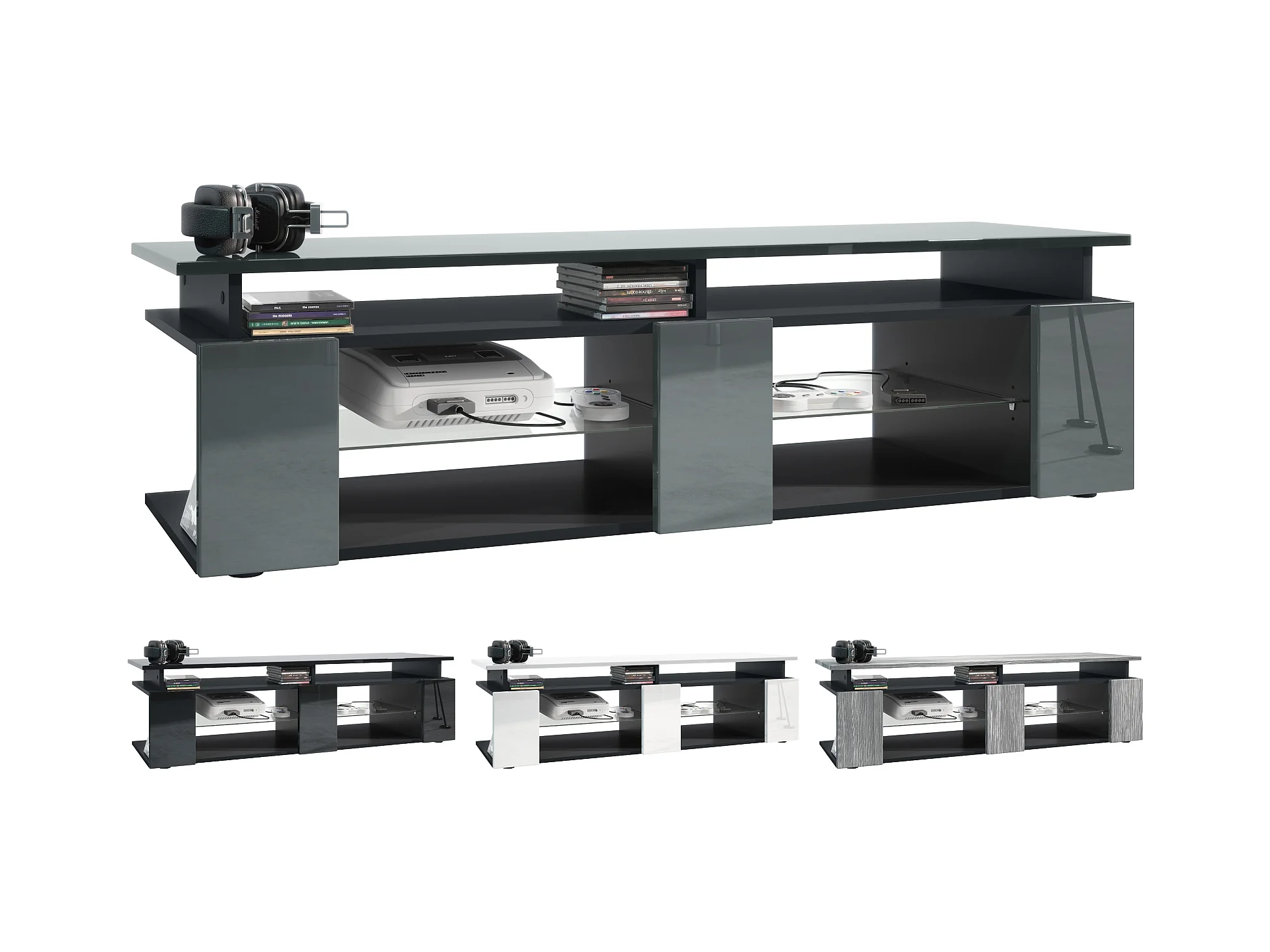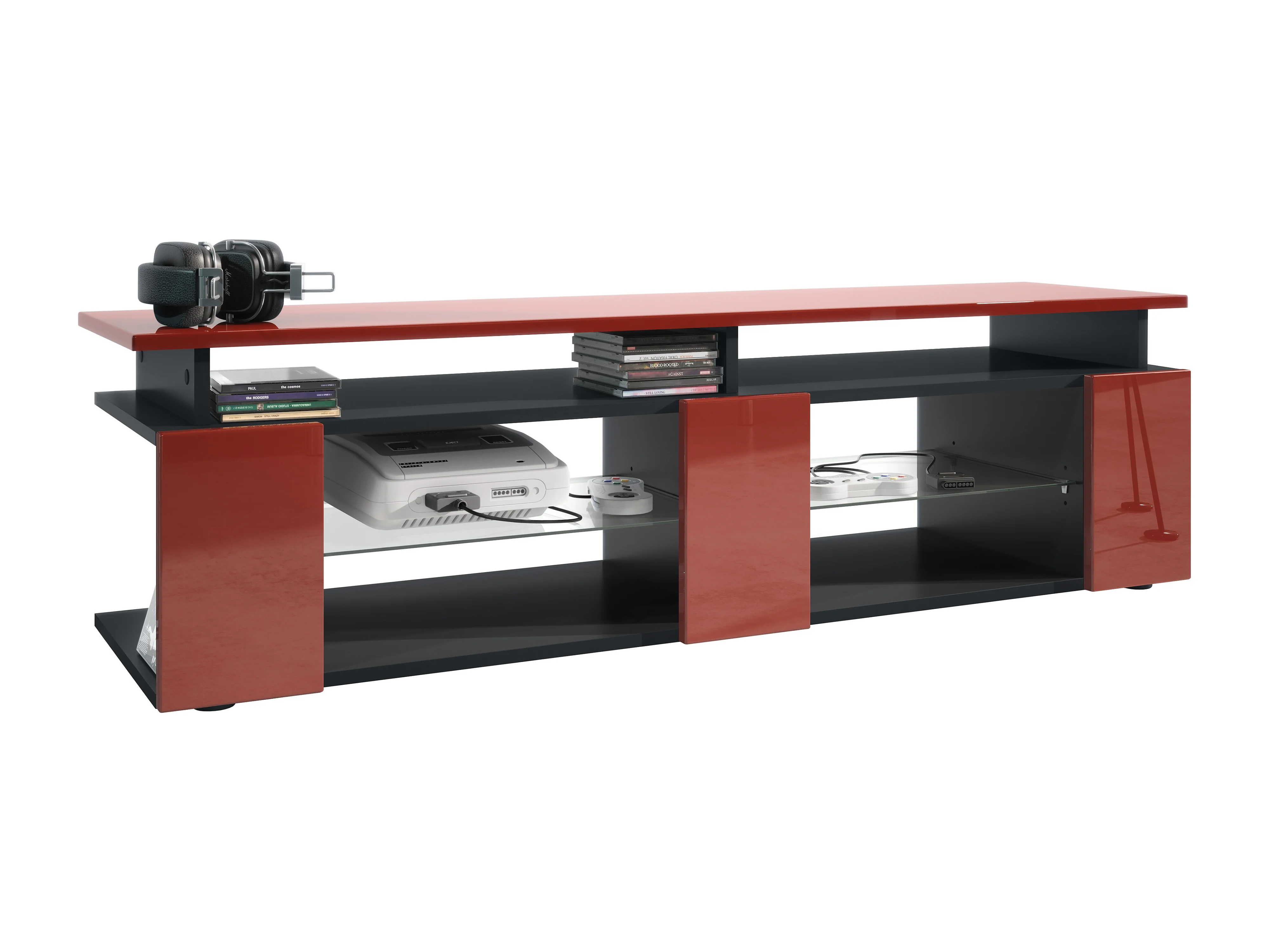 TV Board Movie V2 Game On Lowboard 138,5 x 39 x 39 cm , caisson en noir mat, façades en bordeaux haute brillance