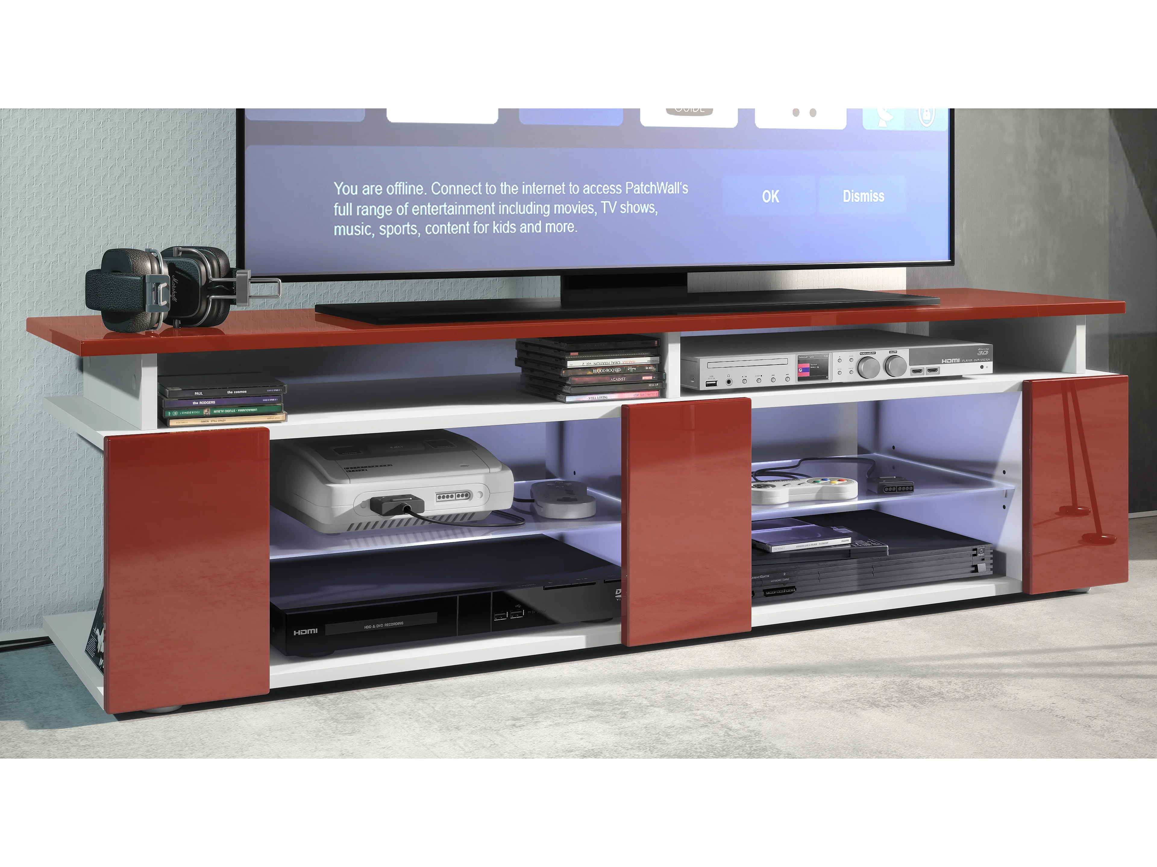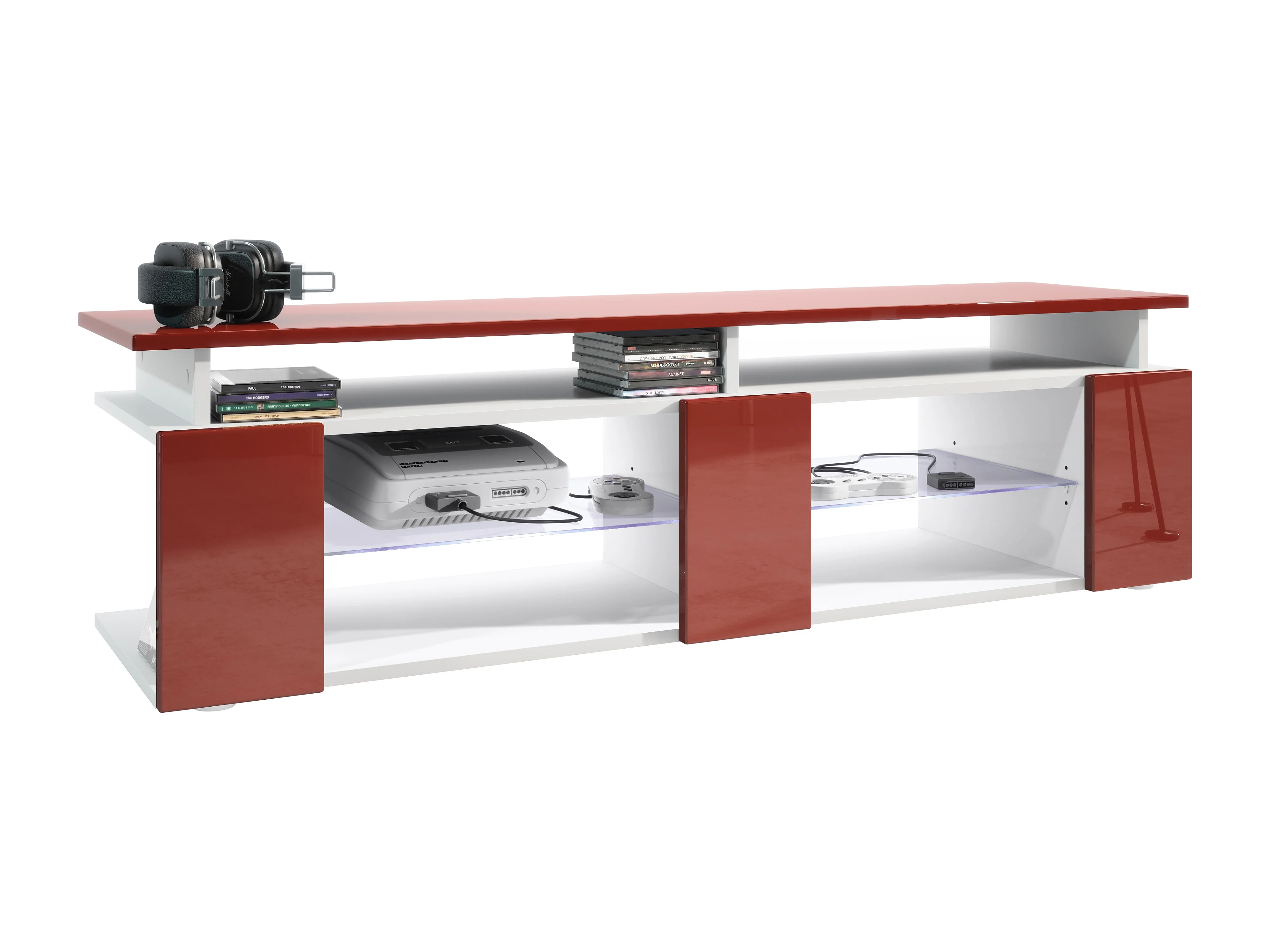 TV Board Movie V2 Game On Lowboard 138,5 x 39 x 39 cm éclairage LED inclus Blanc, caisson en blanc mat, façades en bordeaux haute brillance