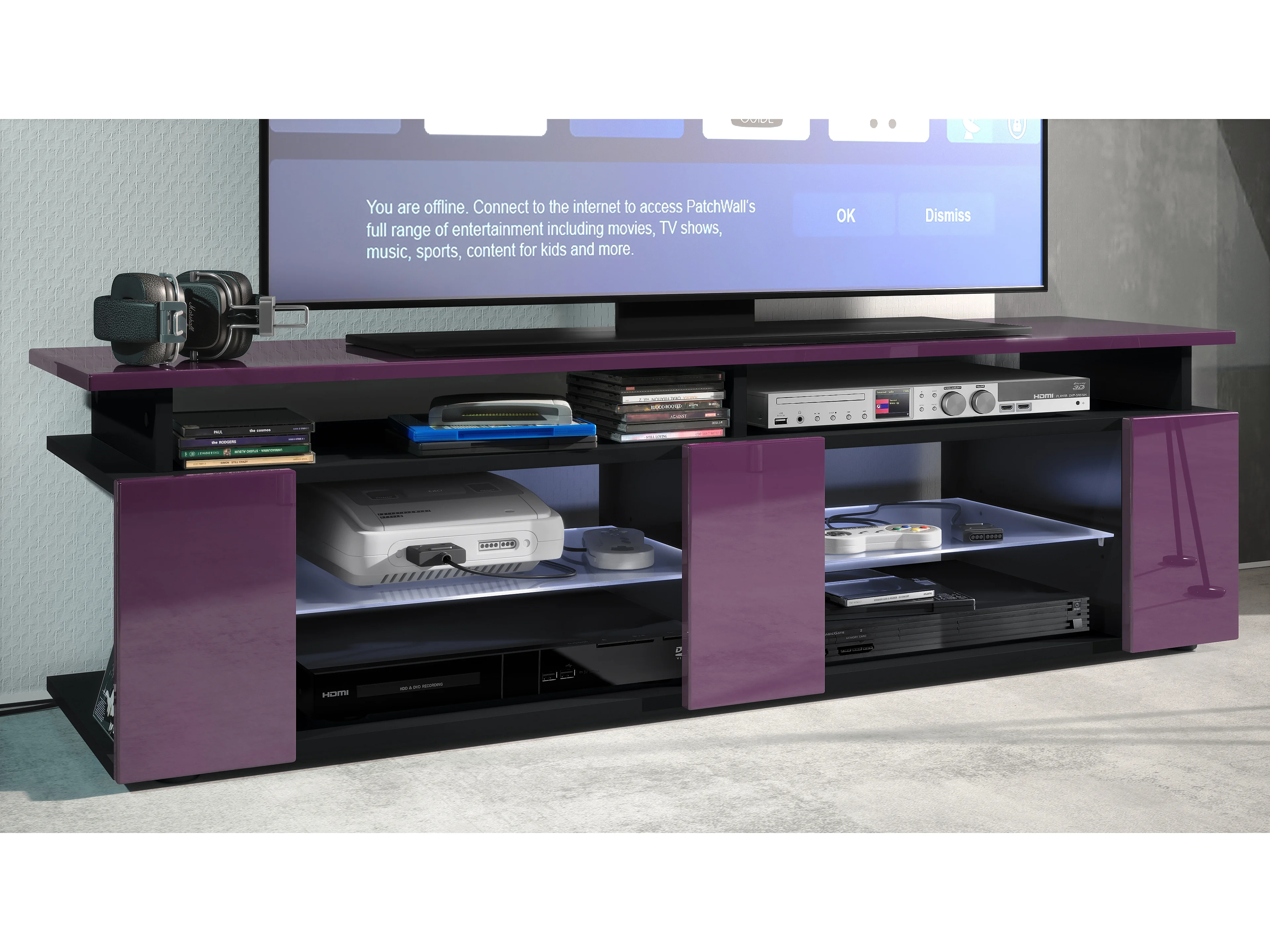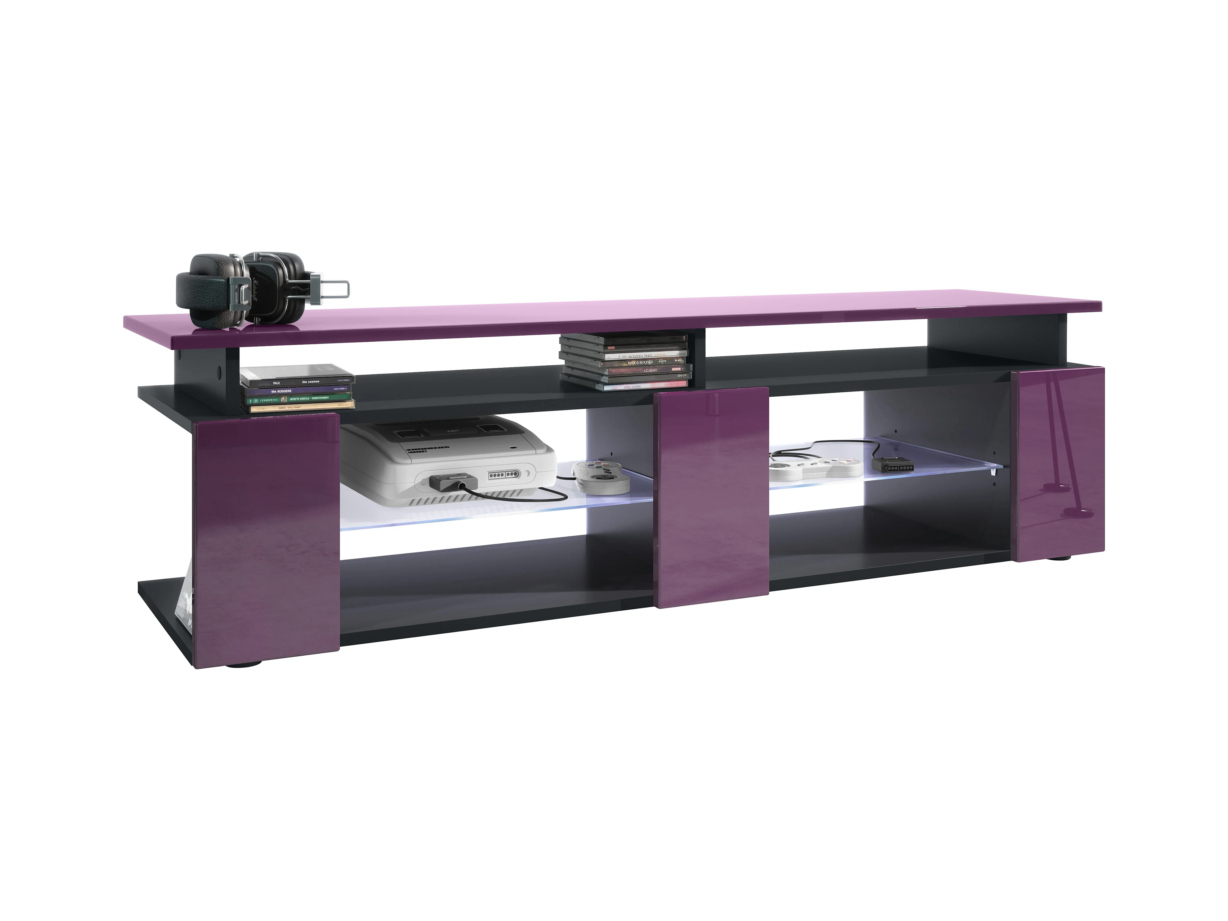 TV Board Movie V2 Game On Lowboard 138,5 x 39 x 39 cm éclairage LED inclus Blanc, caisson en noir mat, façades en mûre haute brillance