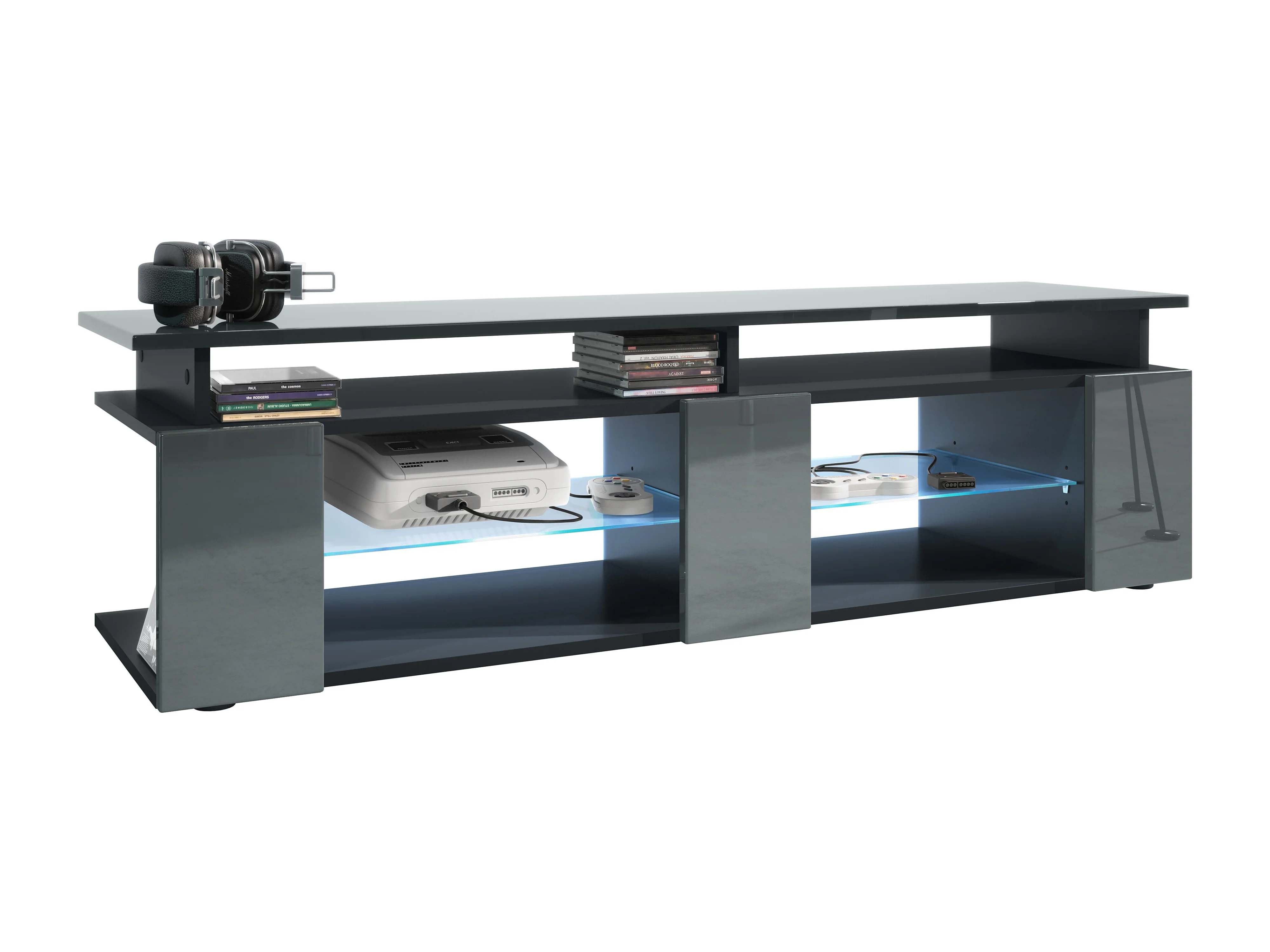TV Board Movie V2 Game On Lowboard 138,5 x 39 x 39 cm éclairage LED inclus Bleu, caisson en noir mat, façades en gris haute brillance