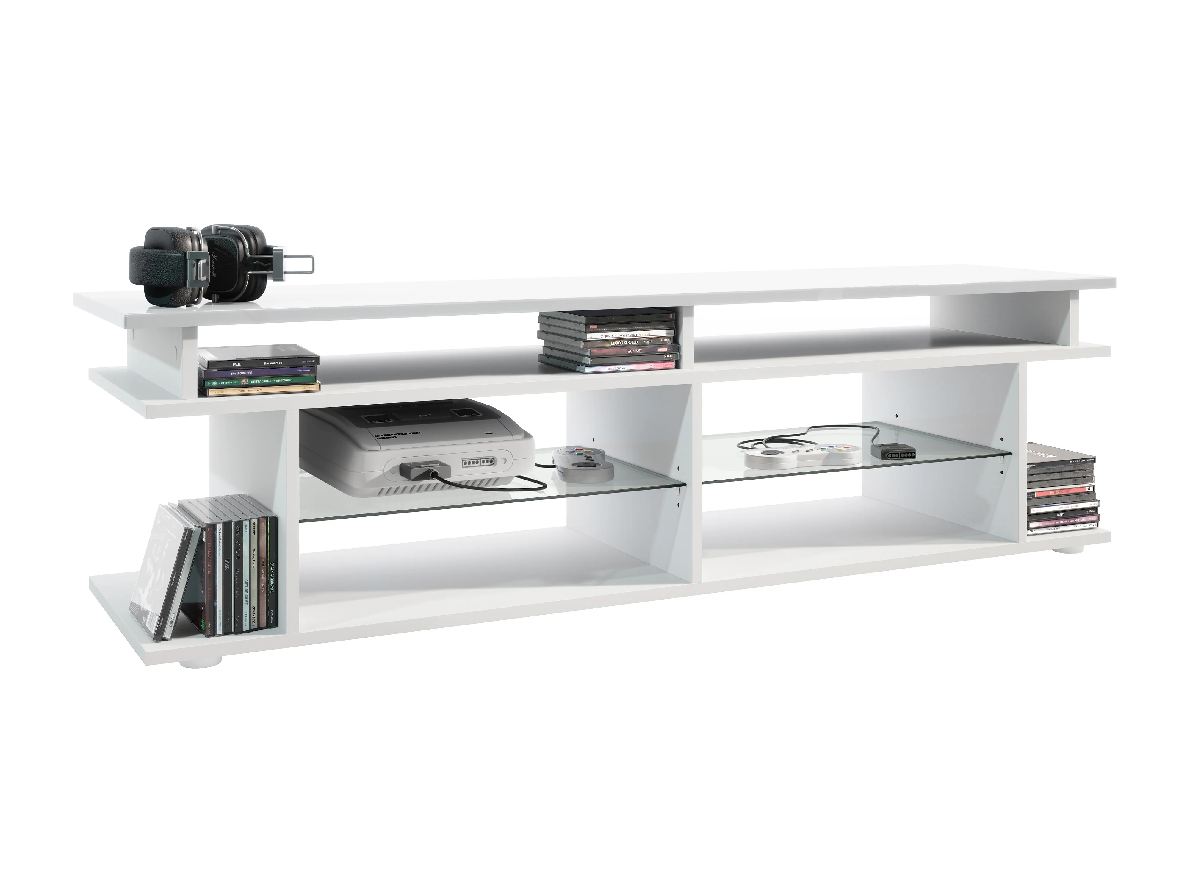 TV Board Movie V3 Game On 138,5 x 39 x 37,5 cm , caisson en blanc mat, élément supérieur en blanc haute brillance