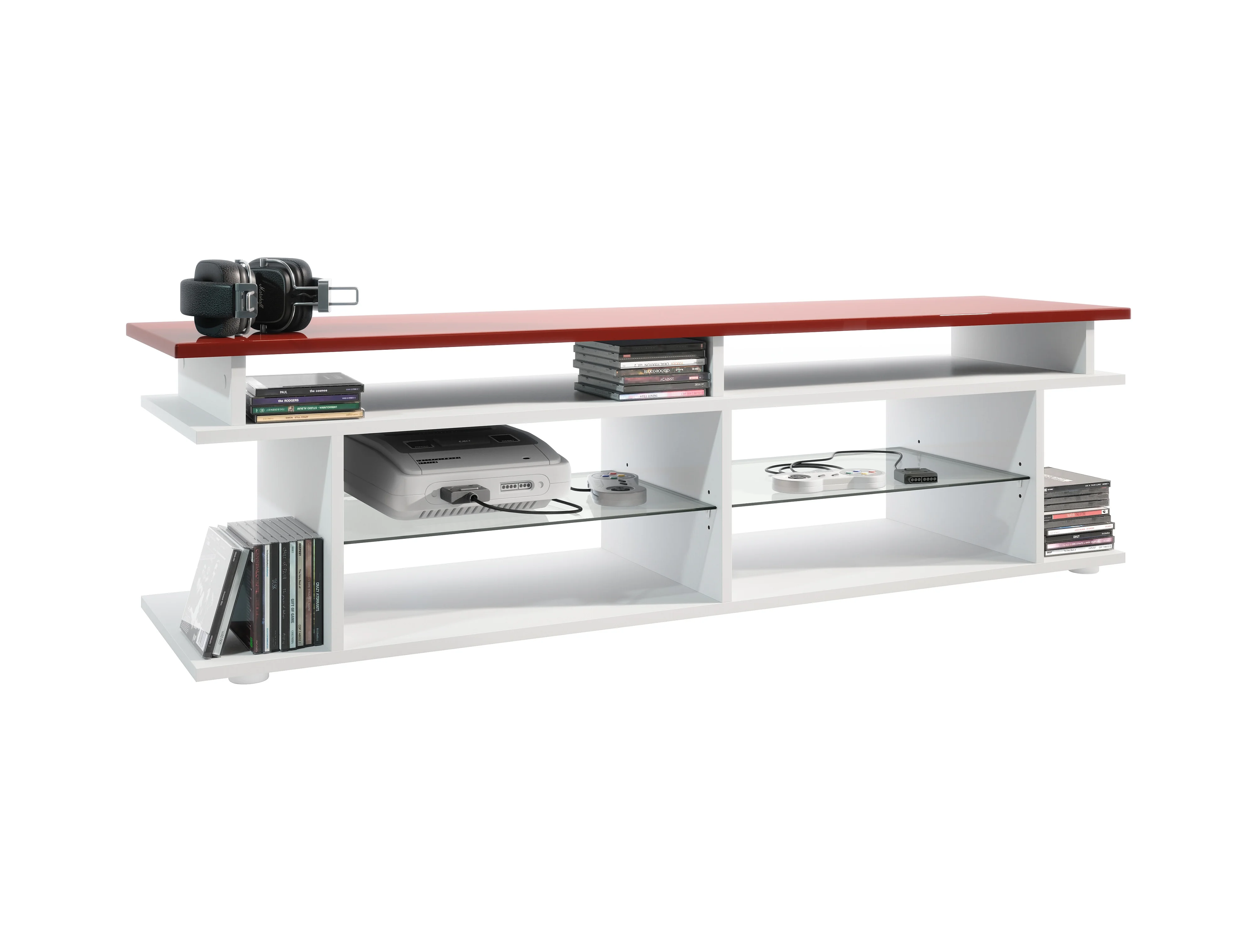 TV Board Movie V3 Game On 138,5 x 39 x 37,5 cm , caisson en blanc mat, élément supérieur en bordeaux haute brillance