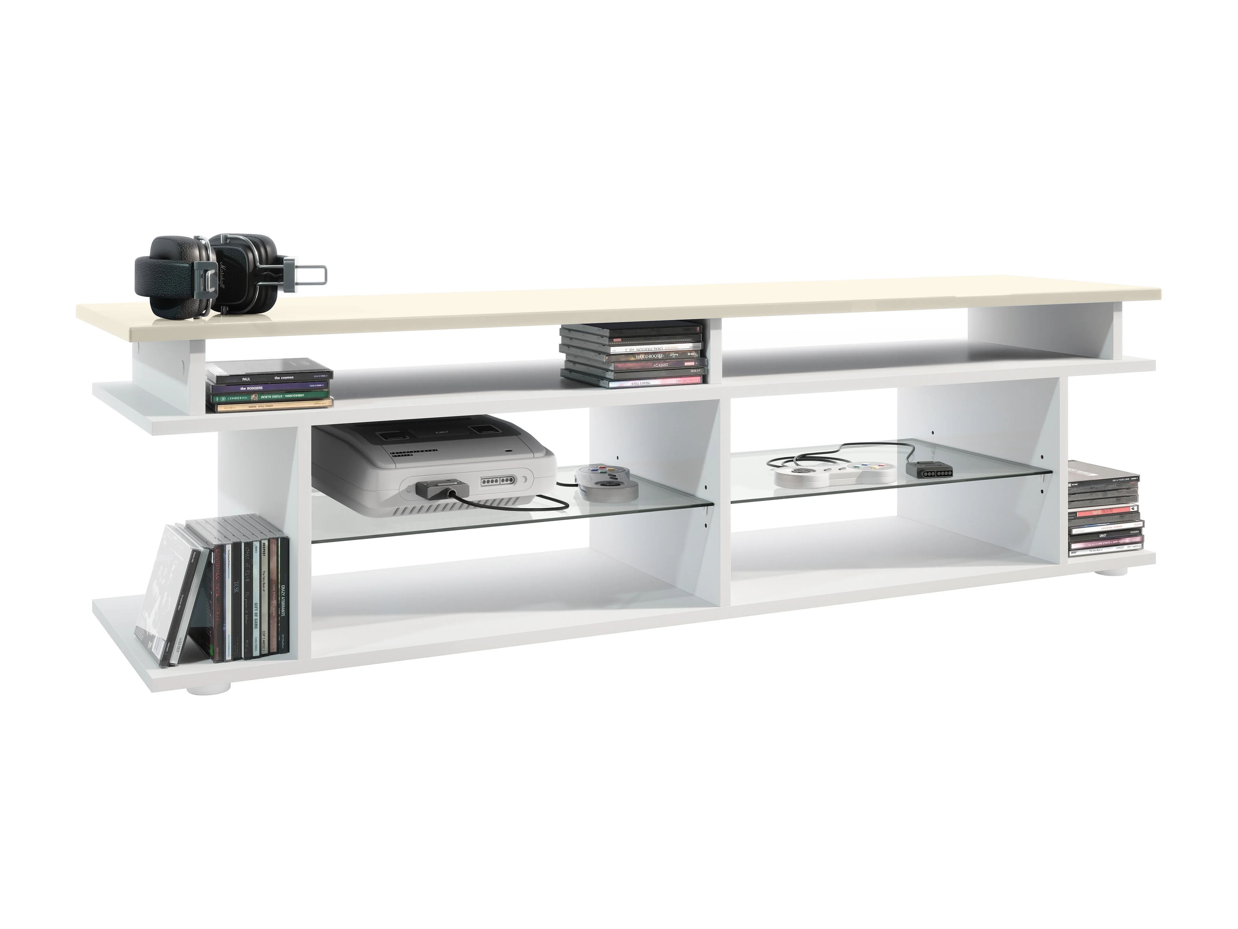 TV Board Movie V3 Game On 138,5 x 39 x 37,5 cm , caisson en blanc mat, élément supérieur en crème haute brillance