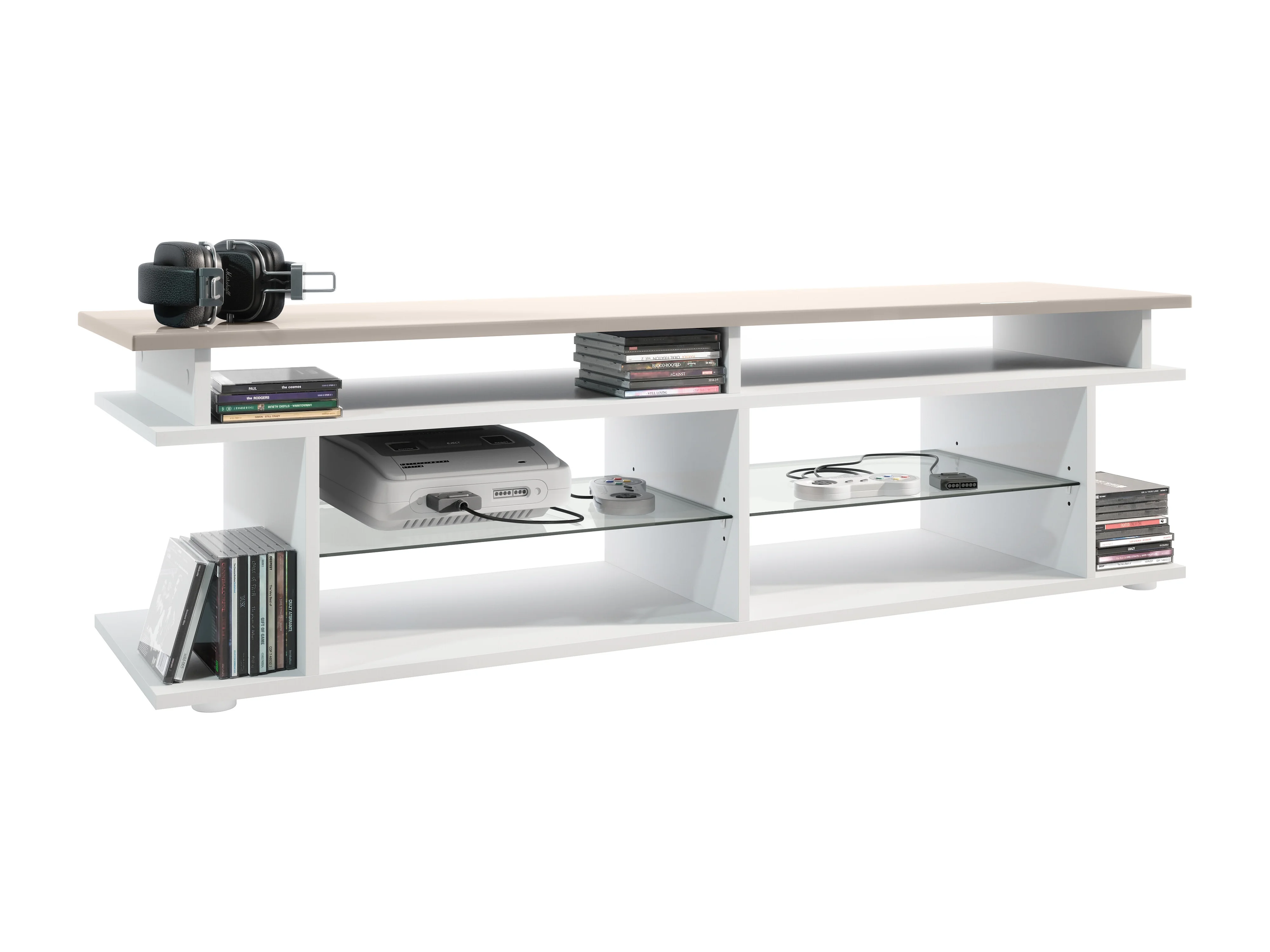 TV Board Movie V3 Game On 138,5 x 39 x 37,5 cm , caisson en blanc mat, élément supérieur en gris sable haute brillance