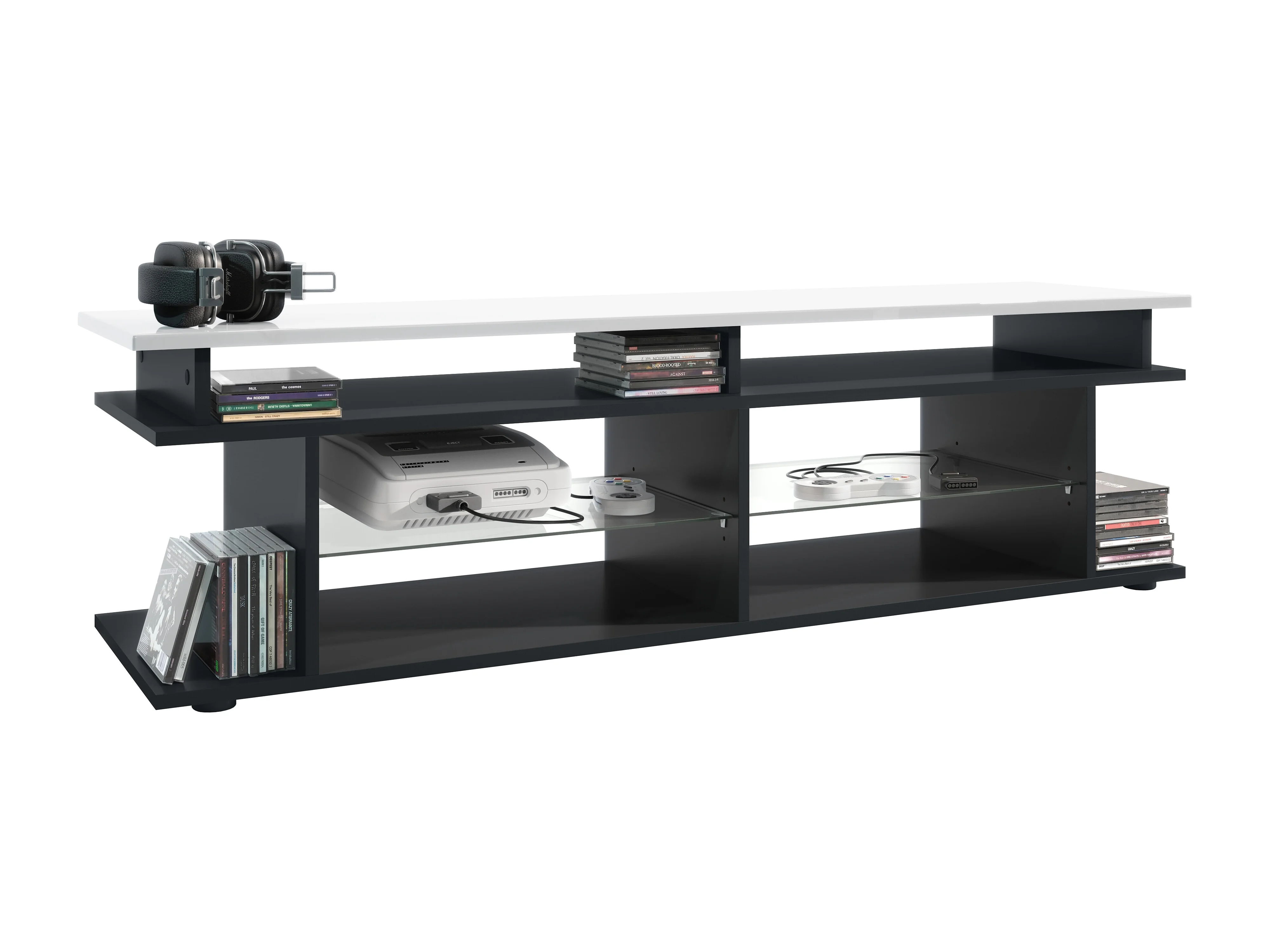 TV Board Movie V3 Game On 138,5 x 39 x 37,5 cm , caisson en noir mat, élément supérieur en blanc haute brillance