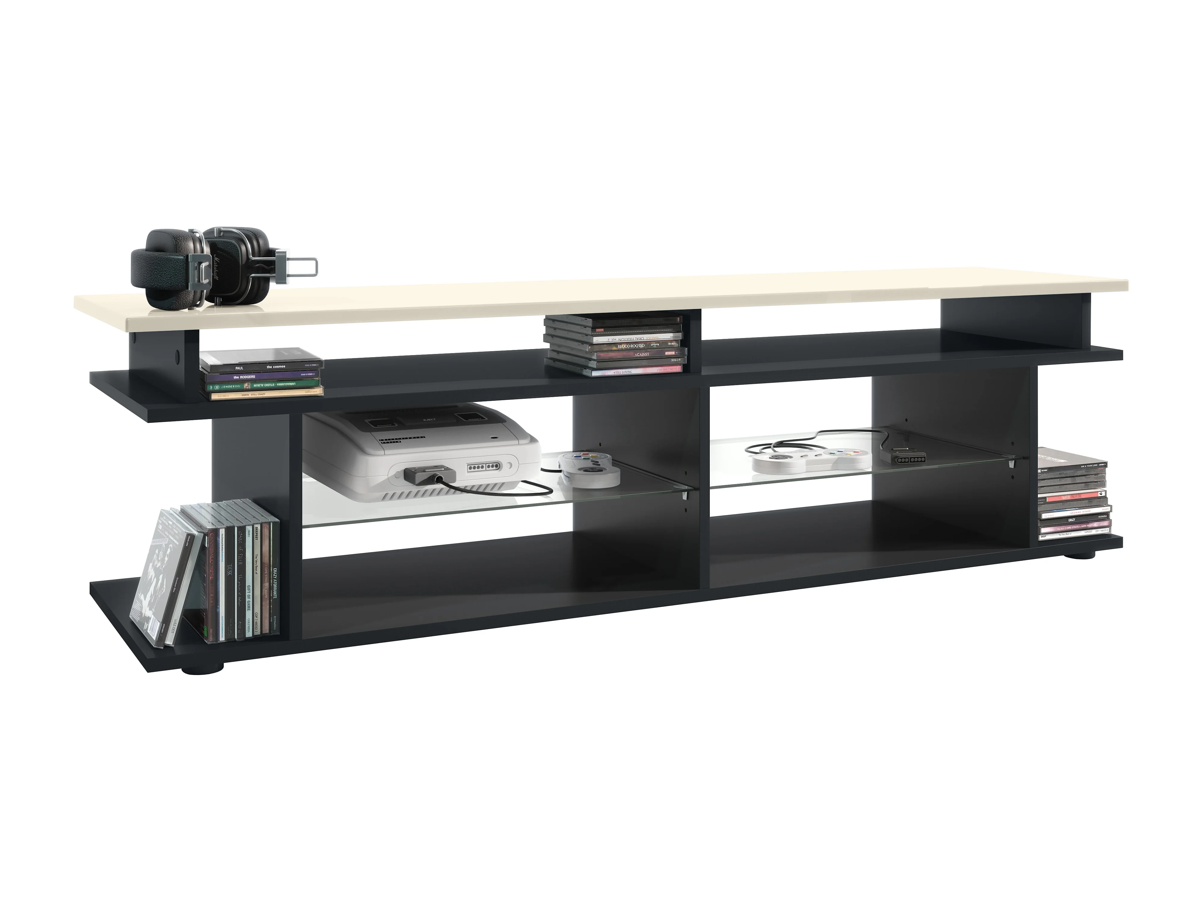 TV Board Movie V3 Game On 138,5 x 39 x 37,5 cm , caisson en noir mat, élément supérieur en crème haute brillance