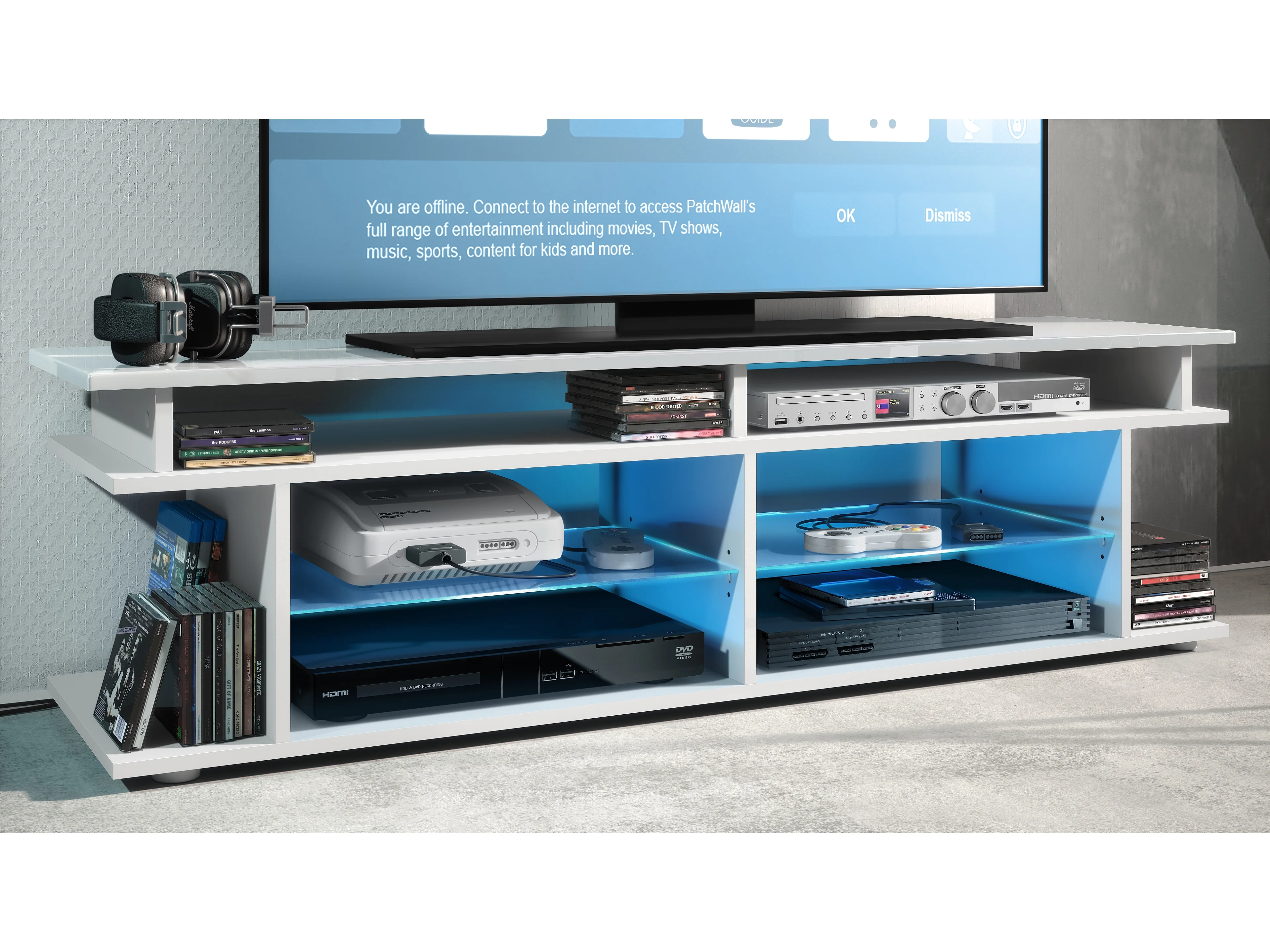 TV Board Movie V3 Game On 138,5 x 39 x 37,5 cm éclairage LED inclus Blanc, caisson en blanc mat, élément supérieur en blanc haute brillance